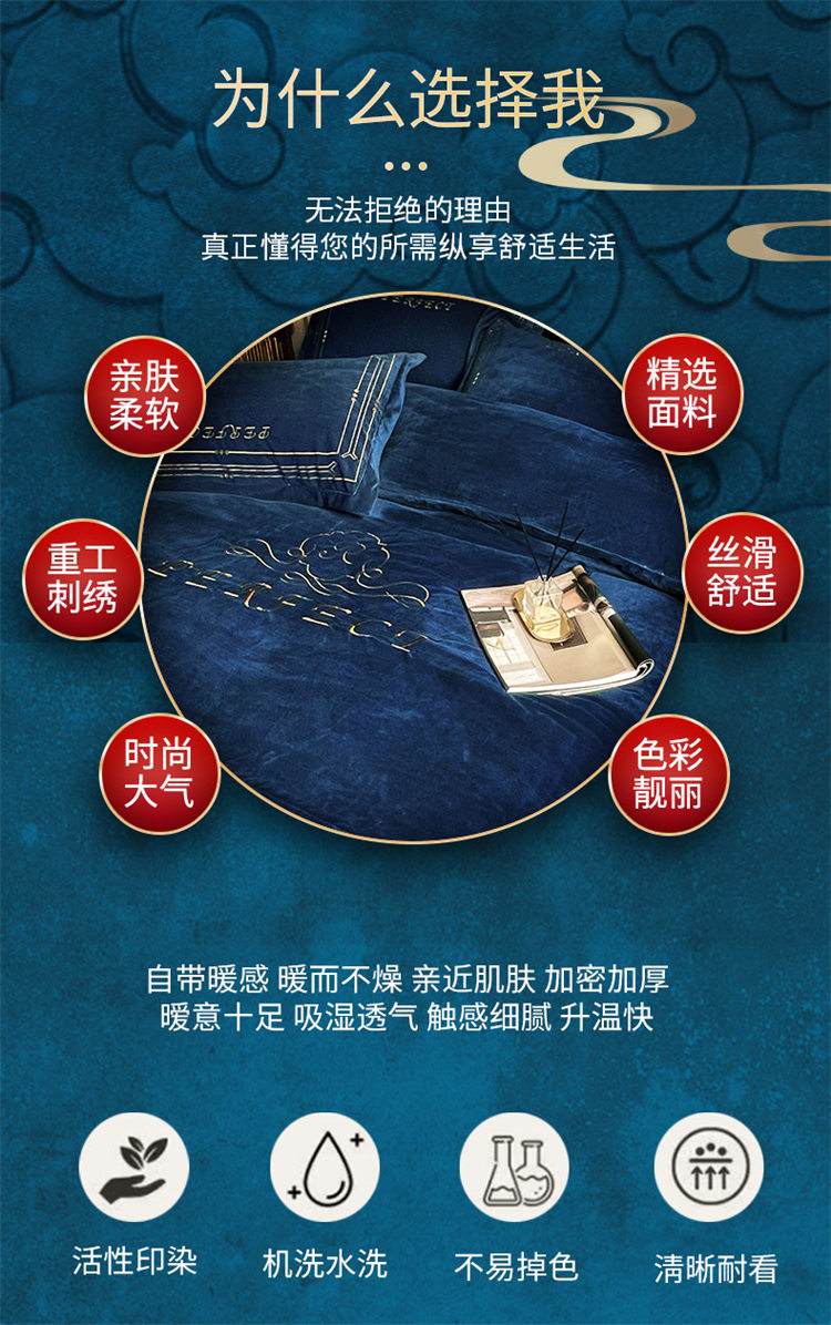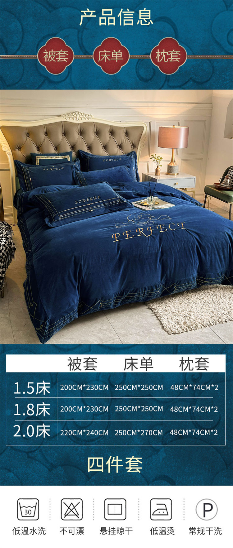 商品名称:铠畅 2021新款巴黎世家宝宝绒刺绣四件套 黎世家藏蓝