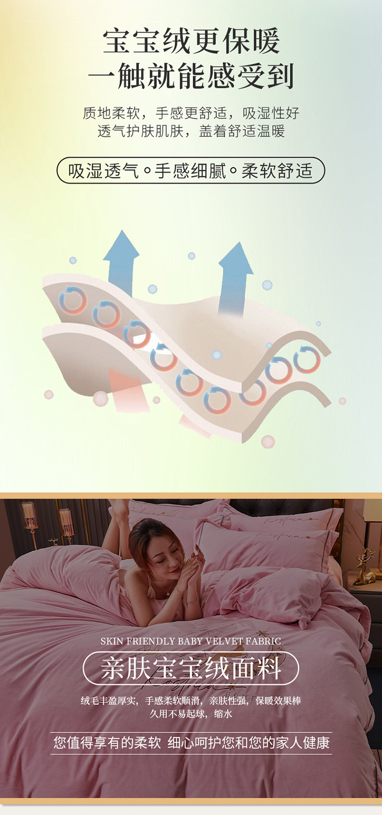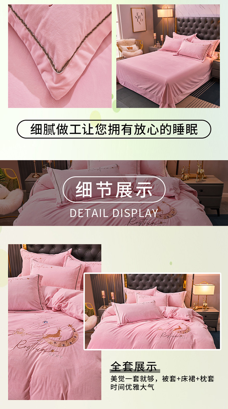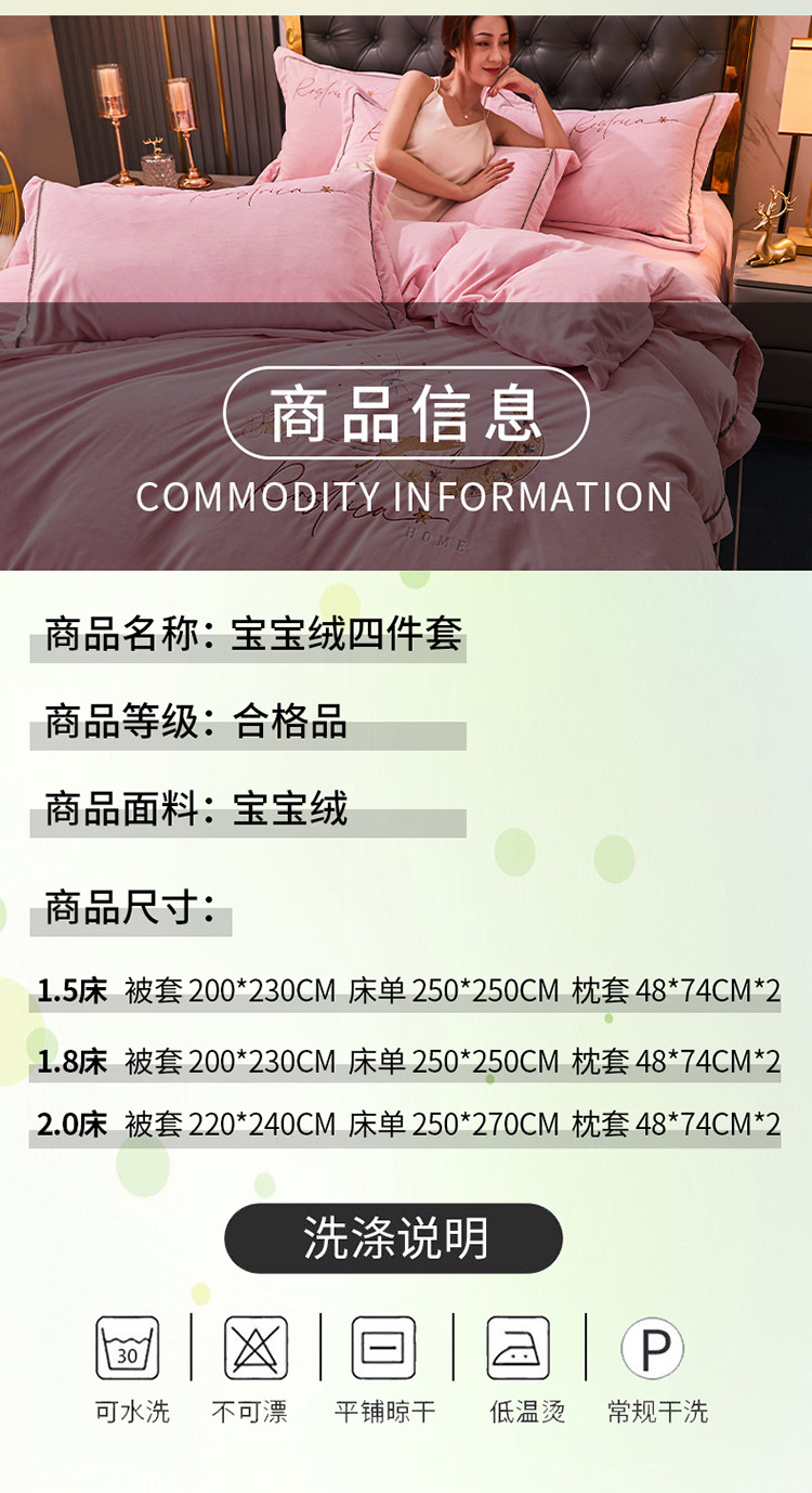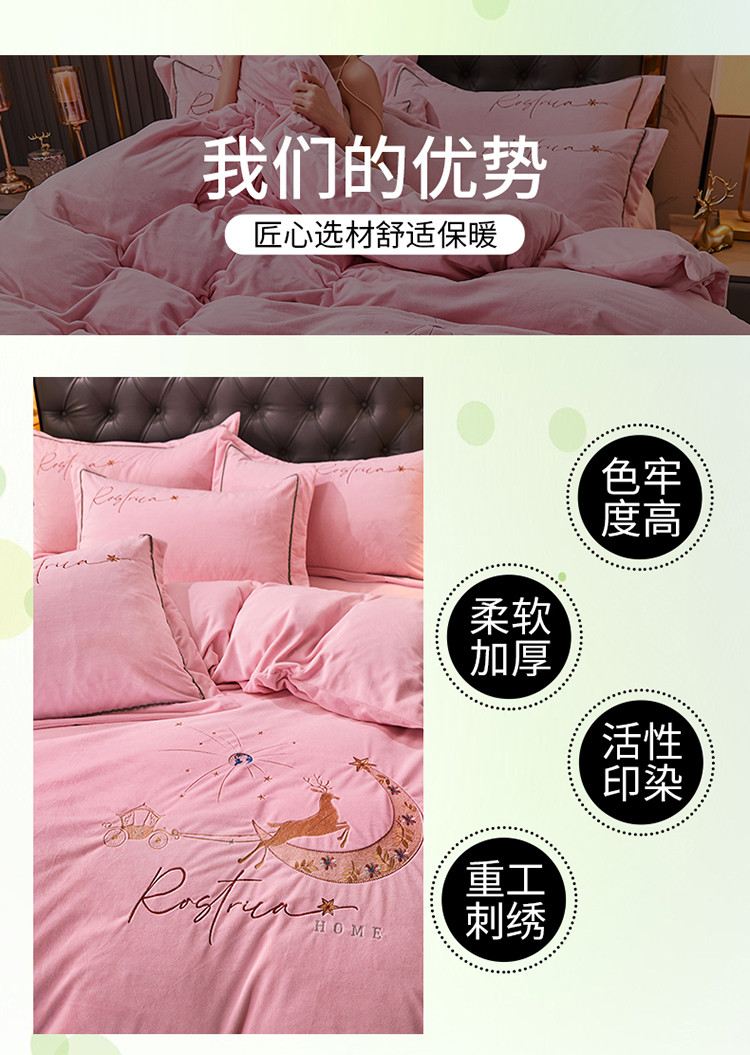 商品名称:铠畅 2021新款典雅宝宝绒刺绣四件套 典雅-粉色