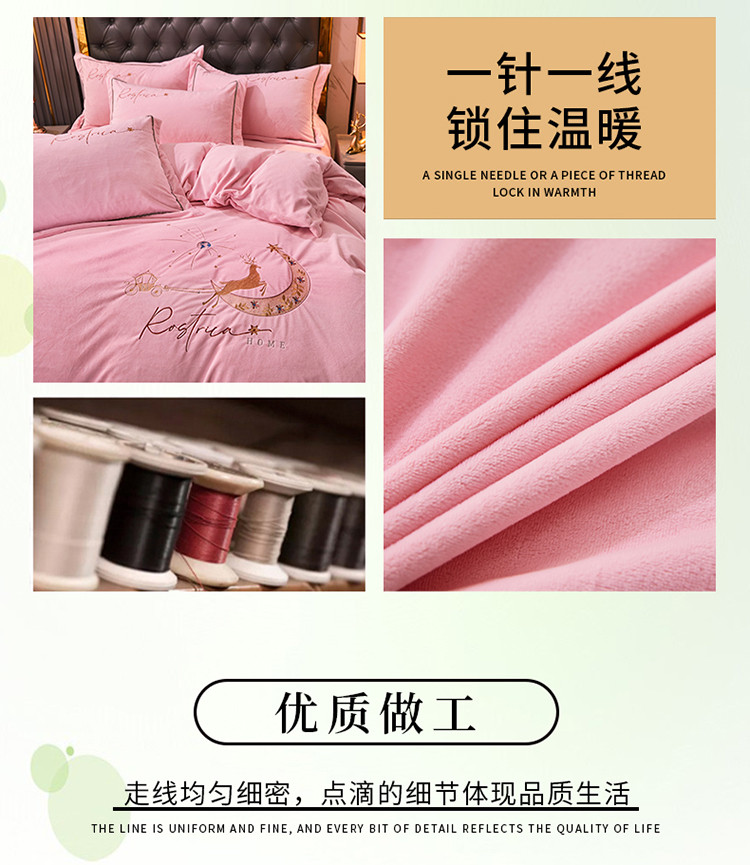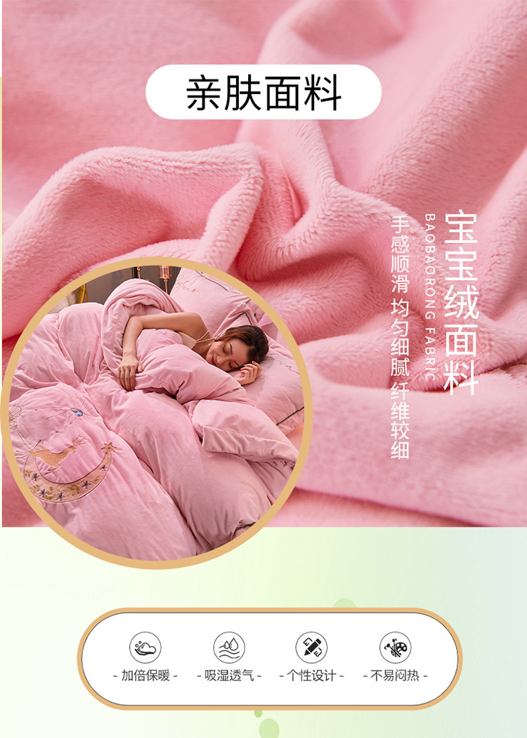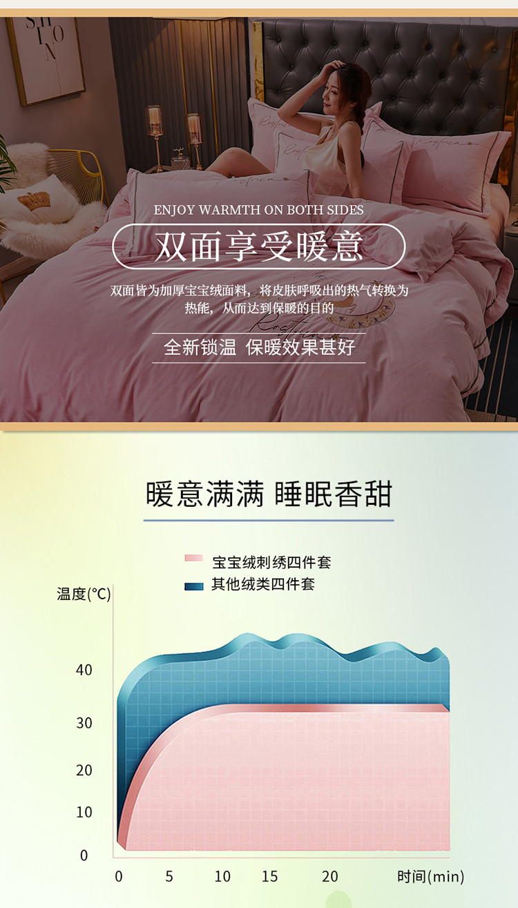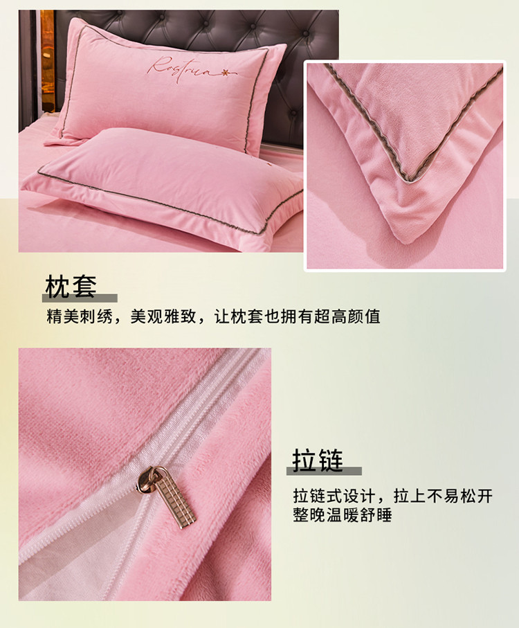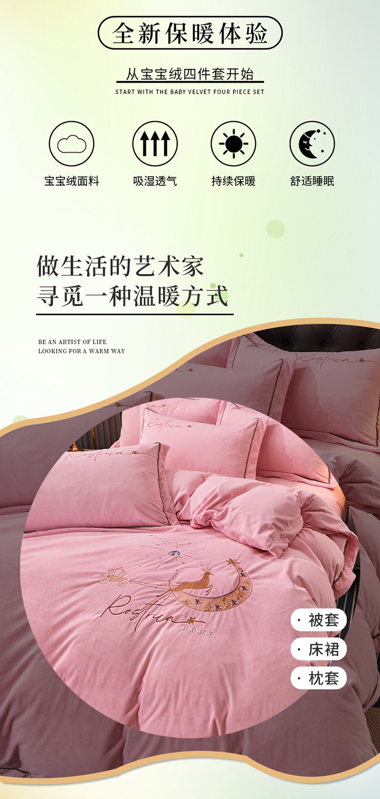 商品名称:铠畅 2021新款典雅宝宝绒刺绣四件套 典雅-粉色