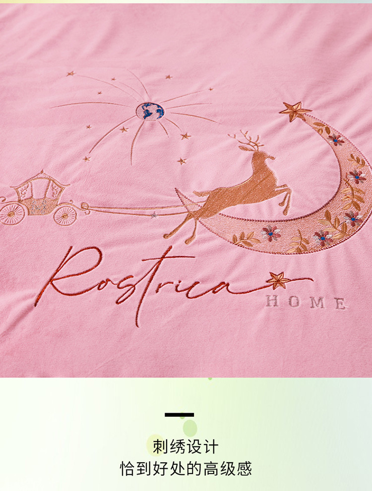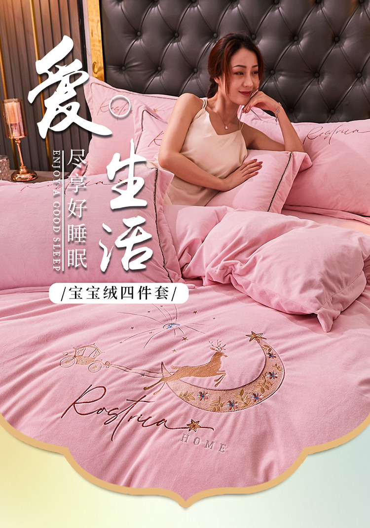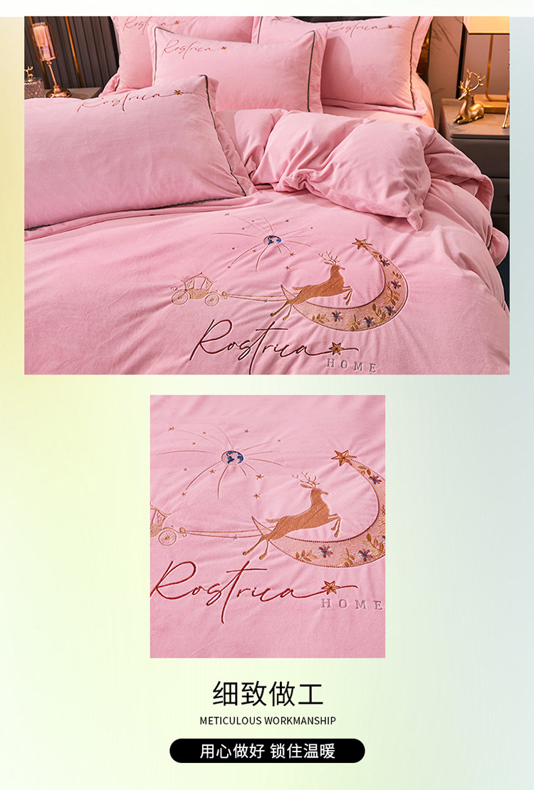 铠畅 2021新款典雅宝宝绒刺绣四件套 典雅-粉色