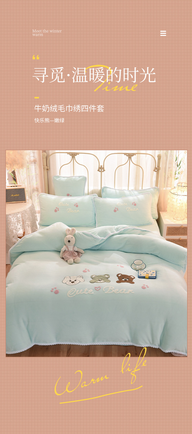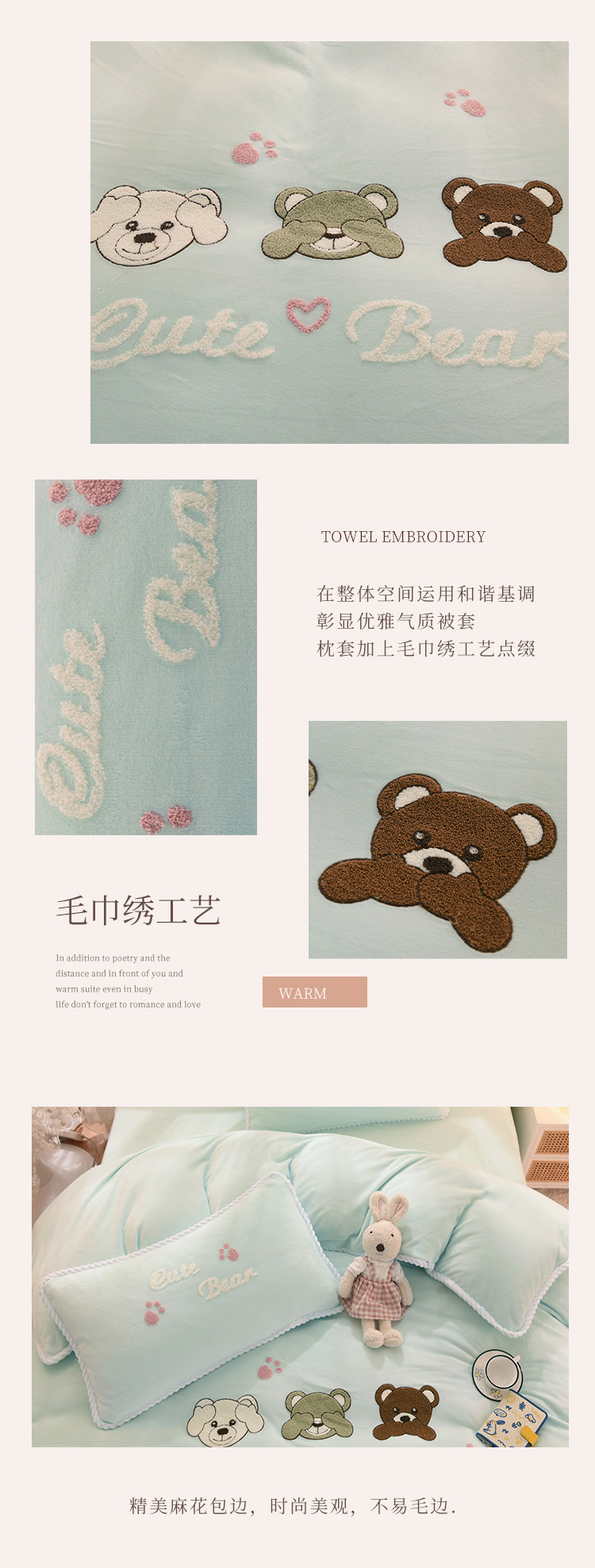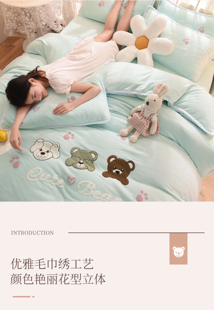 (总)菲儿家纺 2023新款毛巾绣牛奶绒四件套,哇塞小熊-豆绿,哇塞小熊-金桔黄,哇塞小熊-浅粉,哇塞小熊-优雅紫,哇塞小熊-月光蓝,小熊猫-奶黄,小熊猫-少女粉,小熊猫-松石绿,小熊猫-星空蓝,小熊猫-芋泥紫