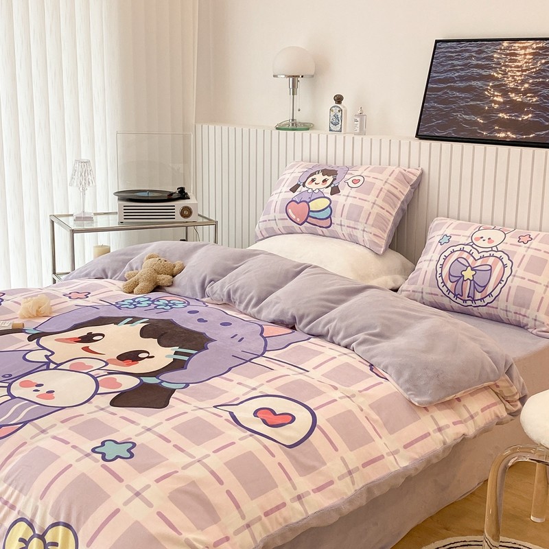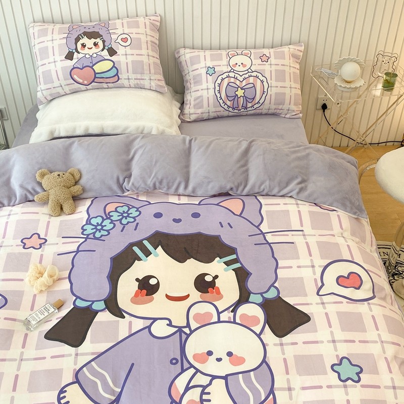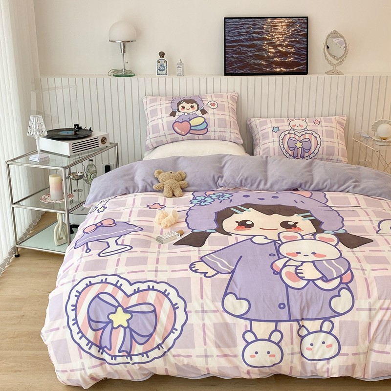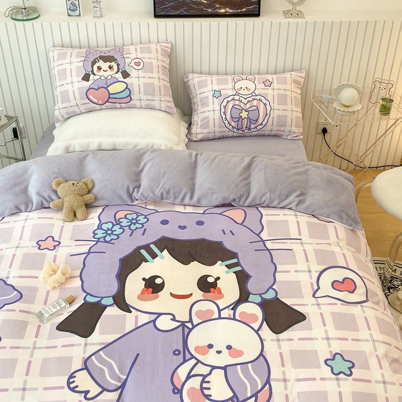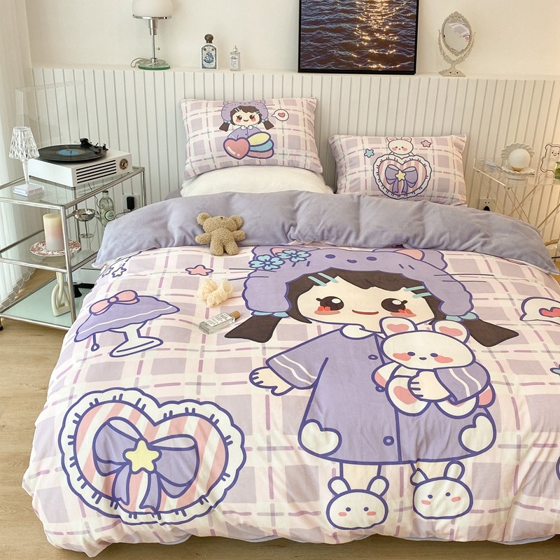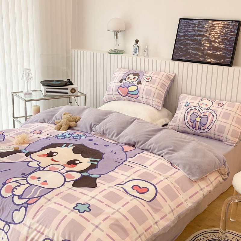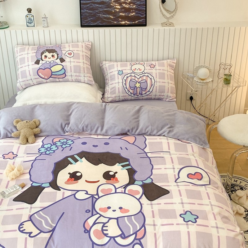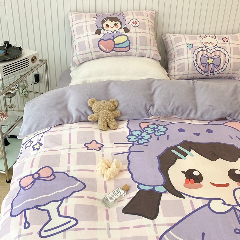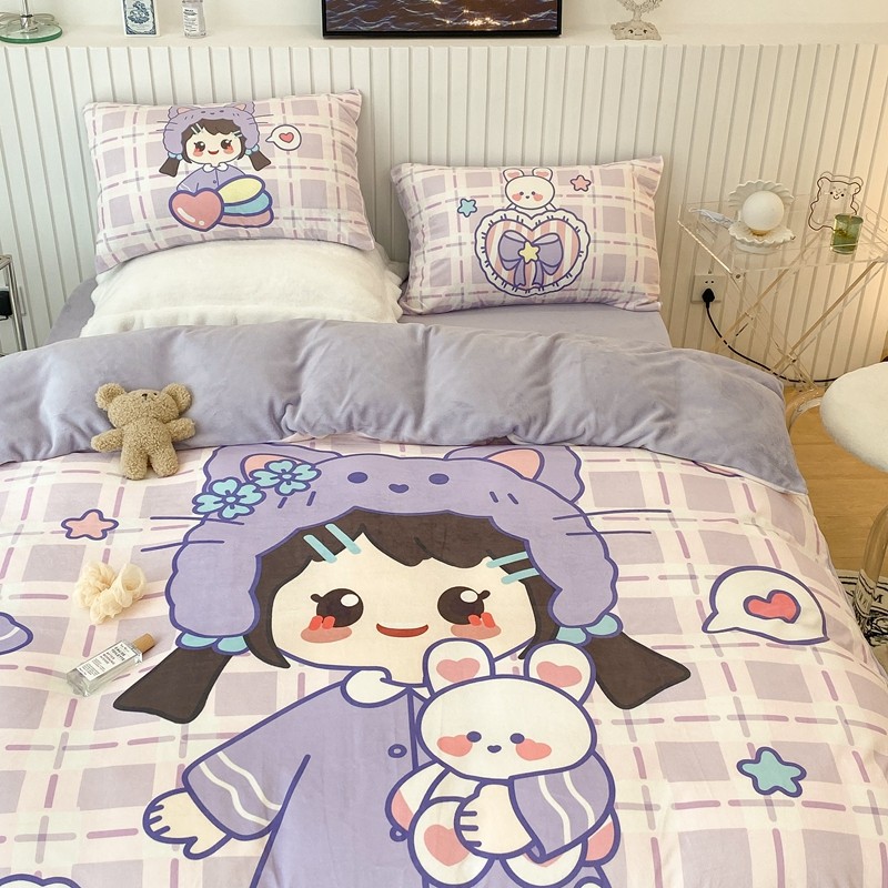 昔可家纺 2021新款大版宝宝牛奶绒四件套 露露女孩