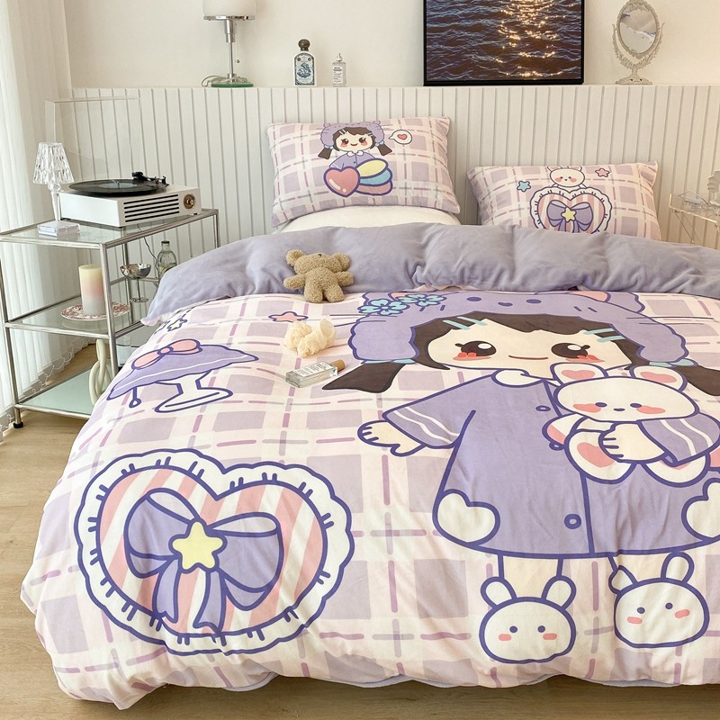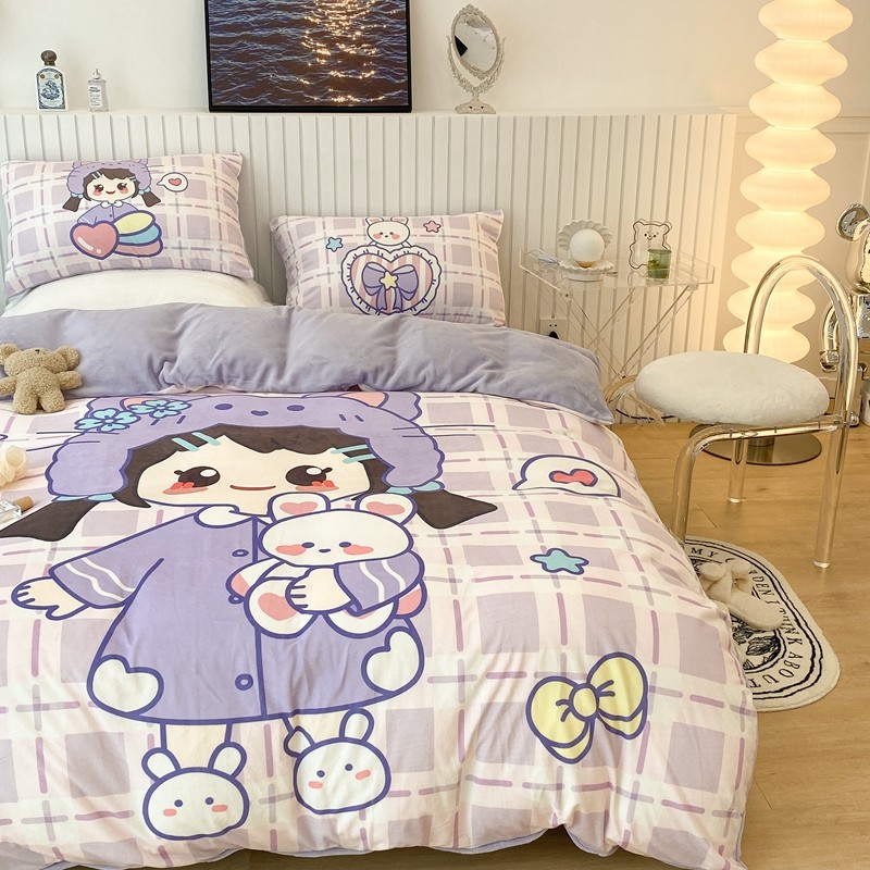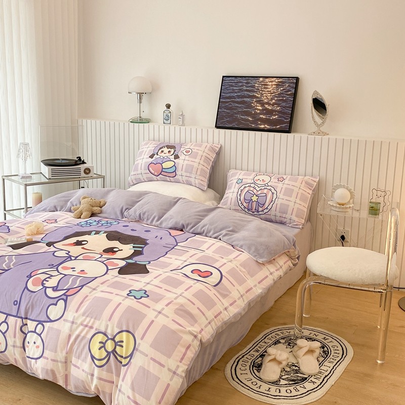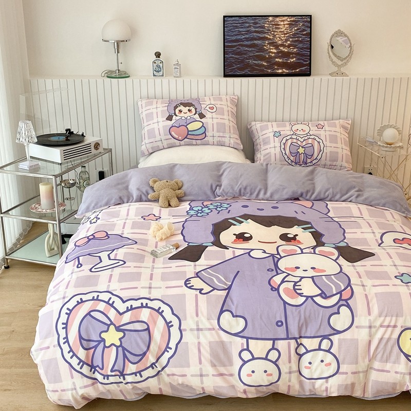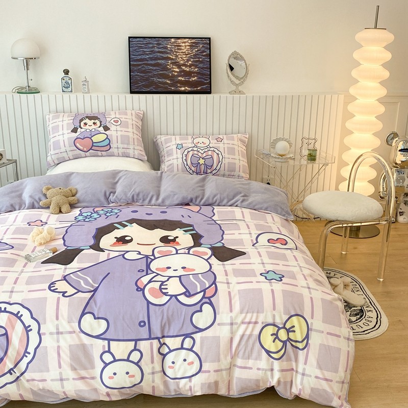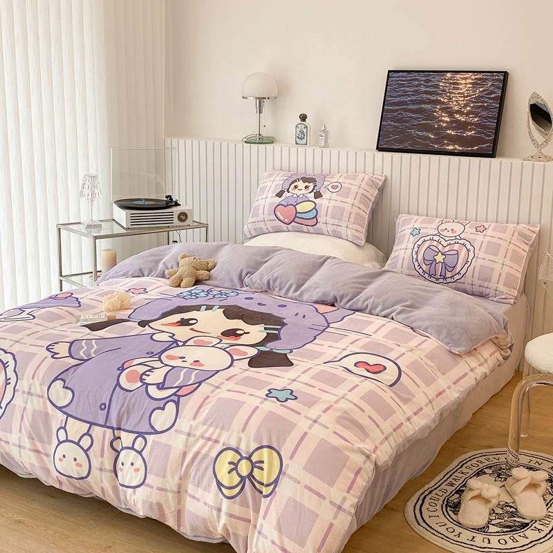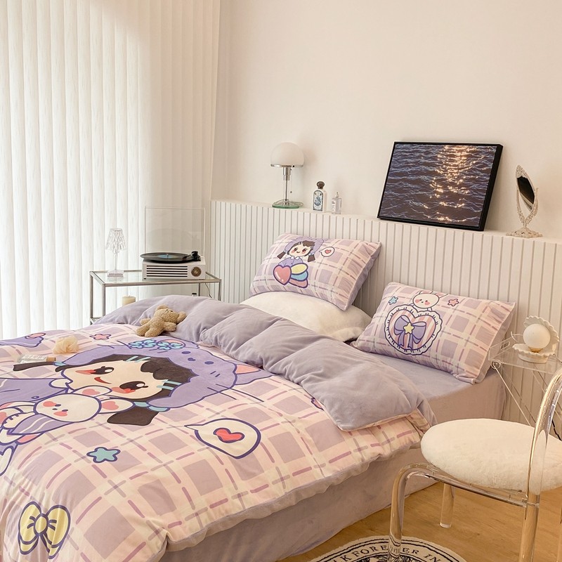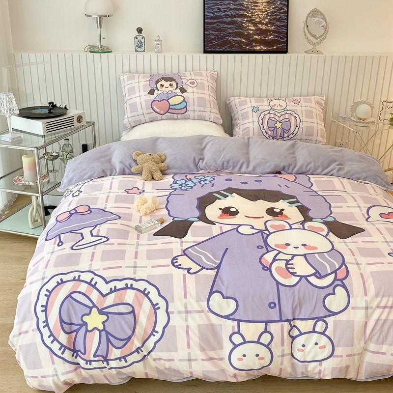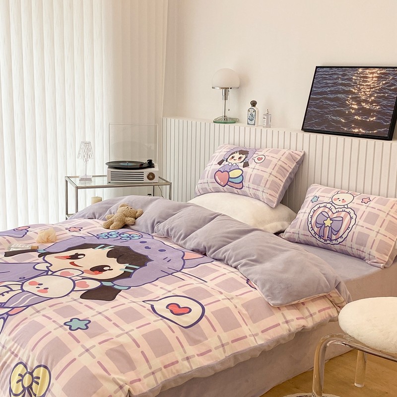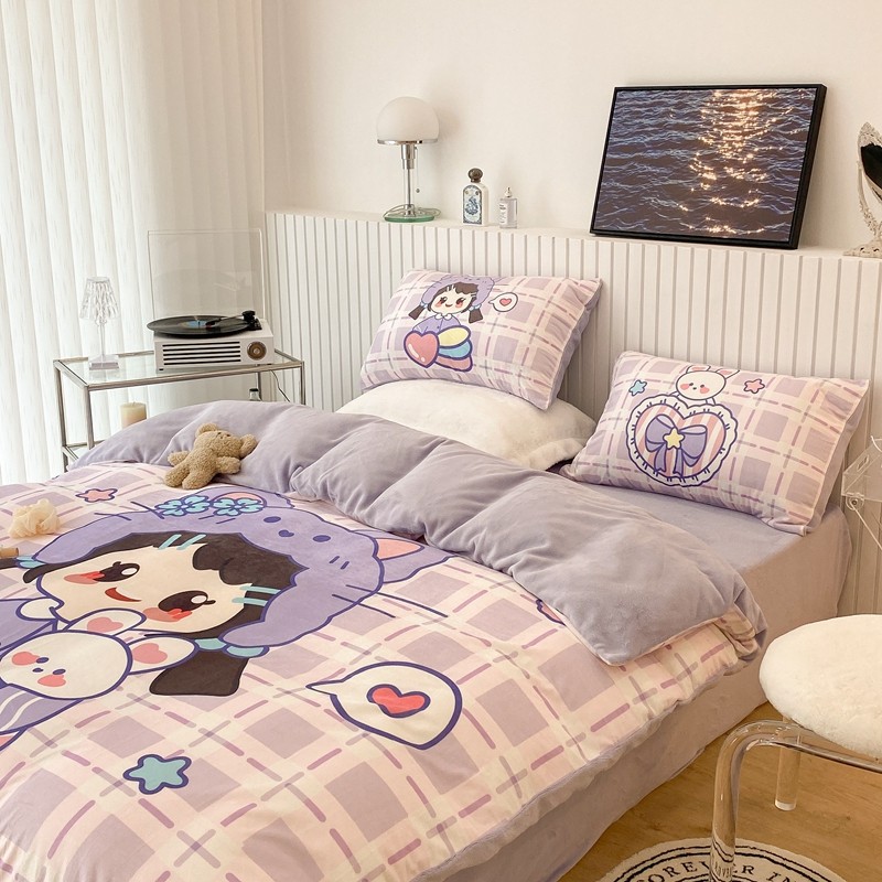 昔可家纺 2021新款大版宝宝牛奶绒四件套 露露女孩