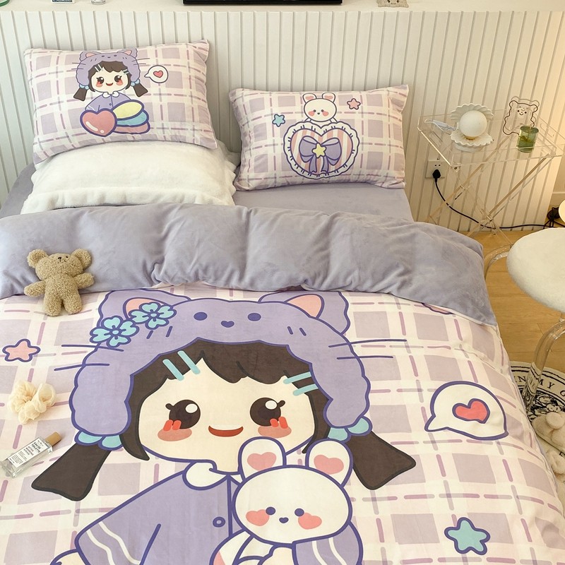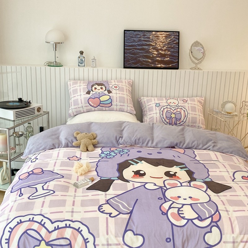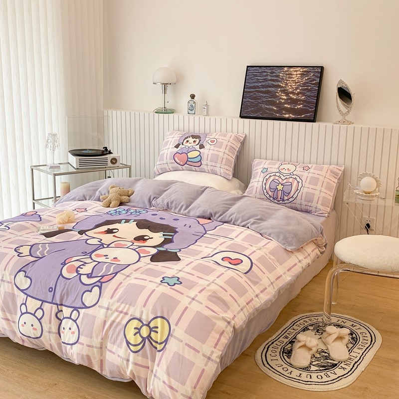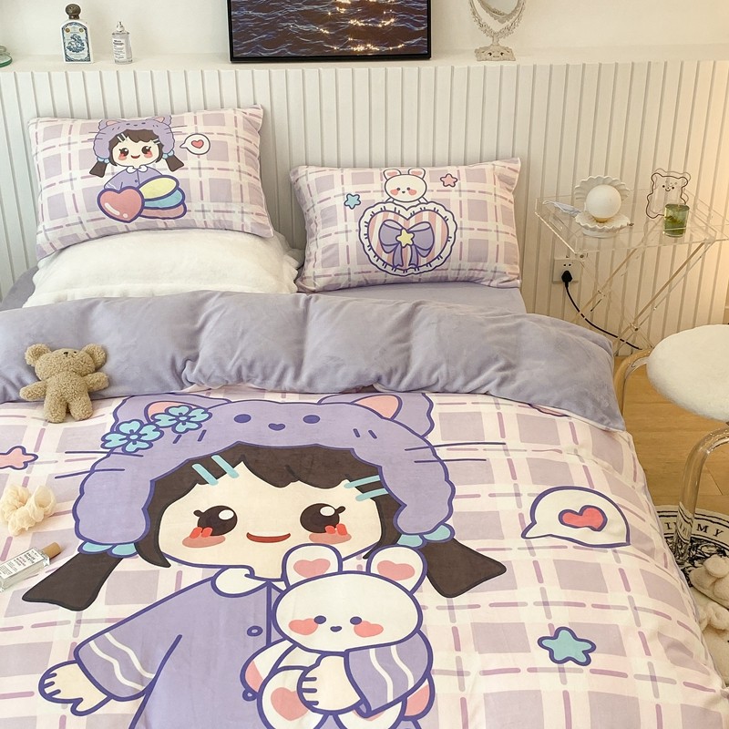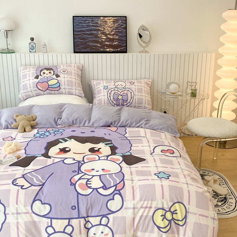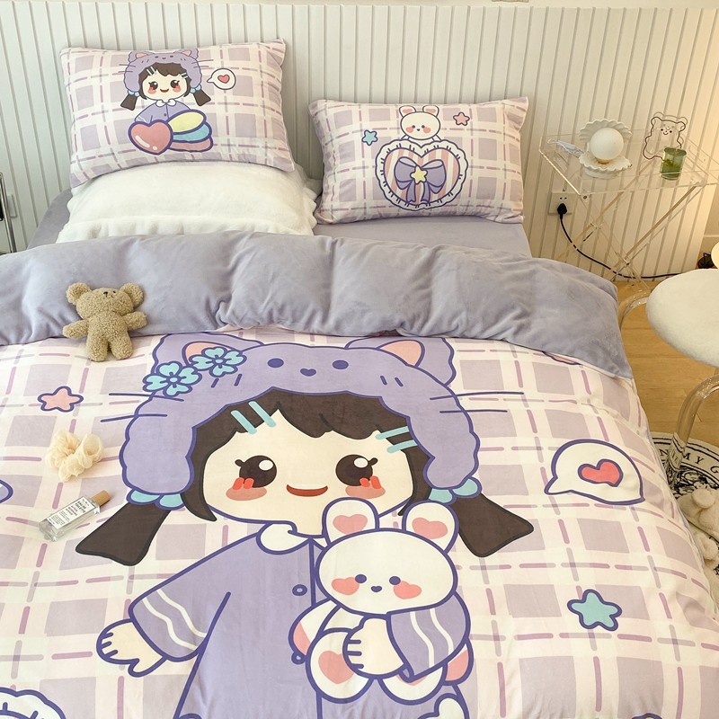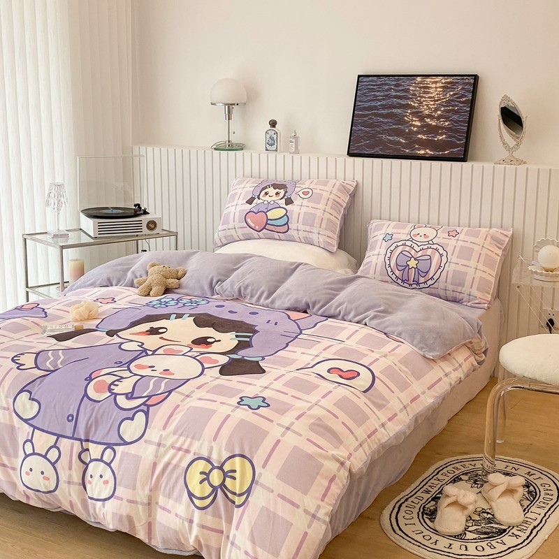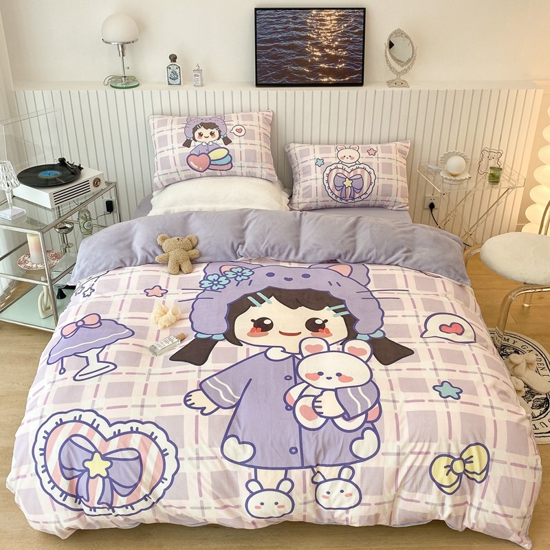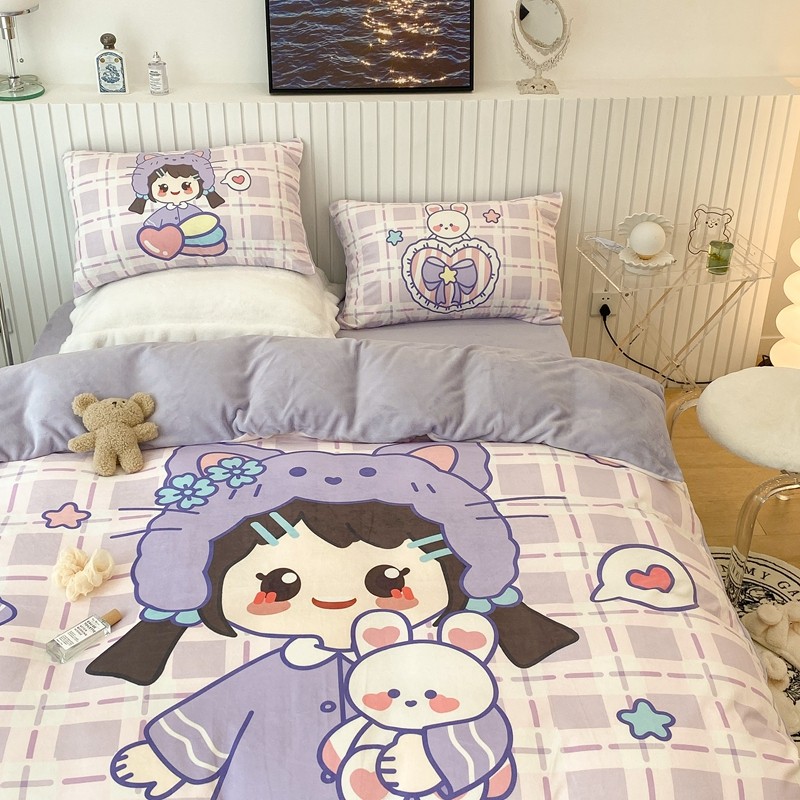 昔可家纺 2021新款大版宝宝牛奶绒四件套 露露女孩