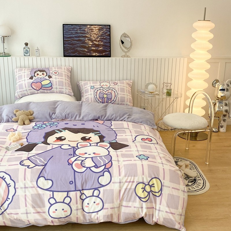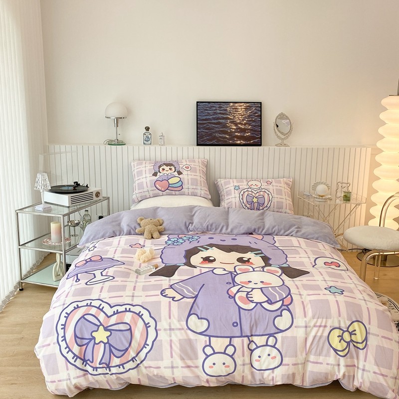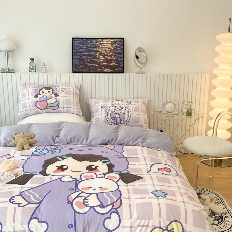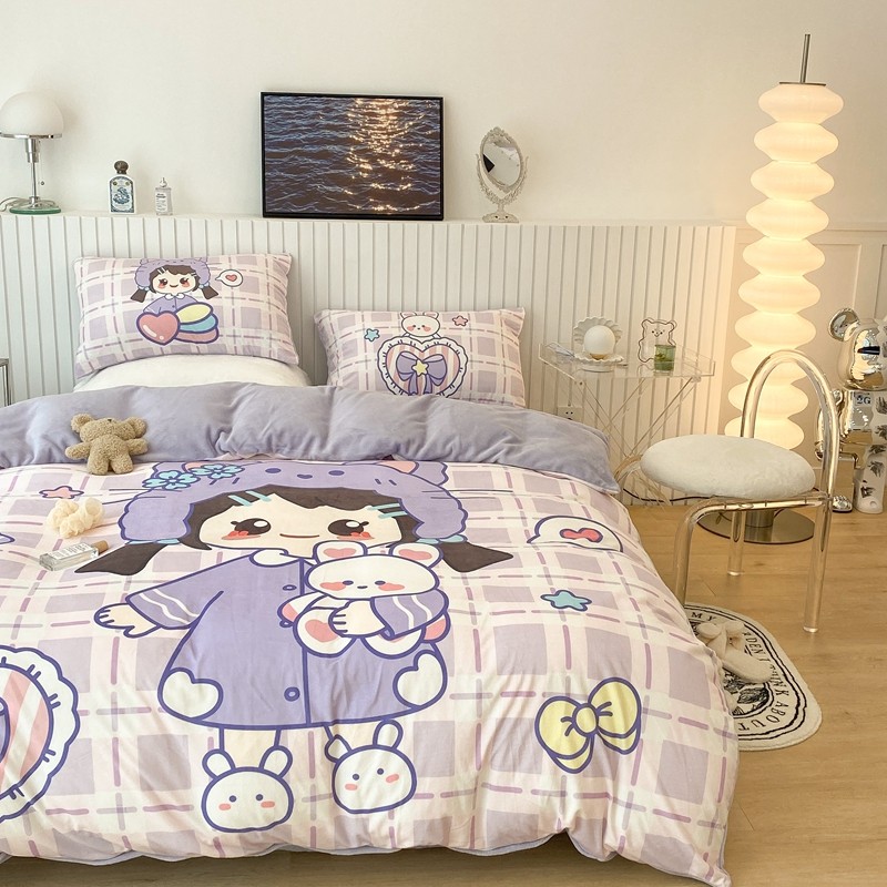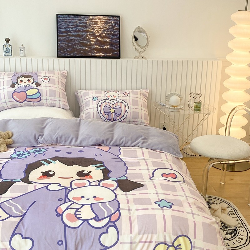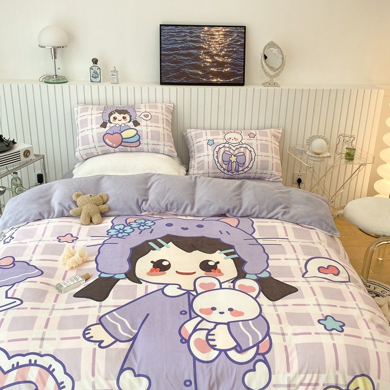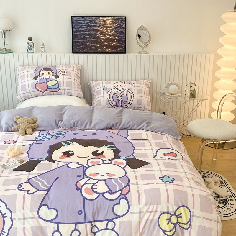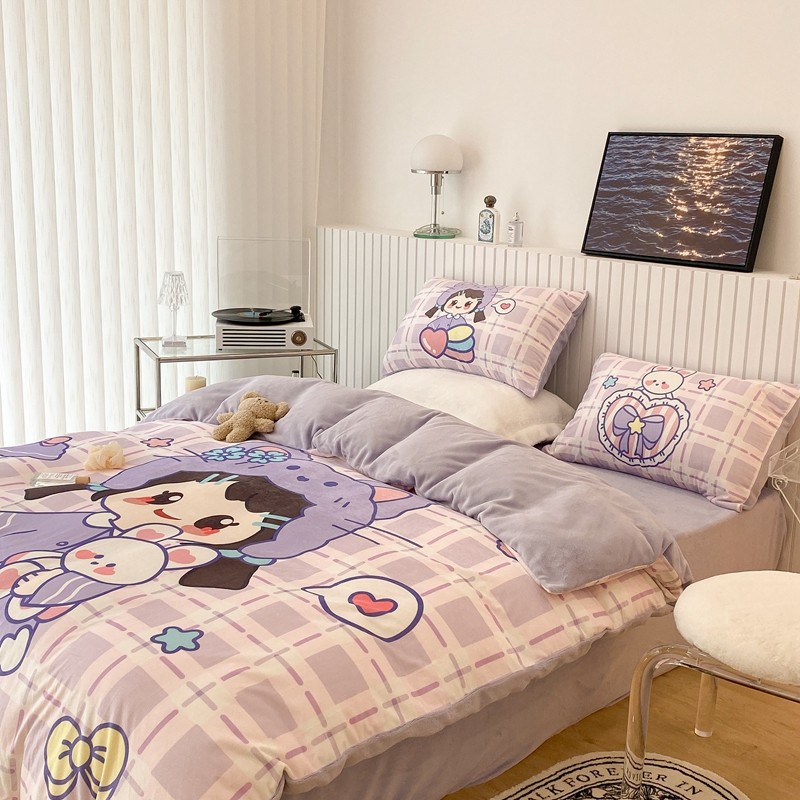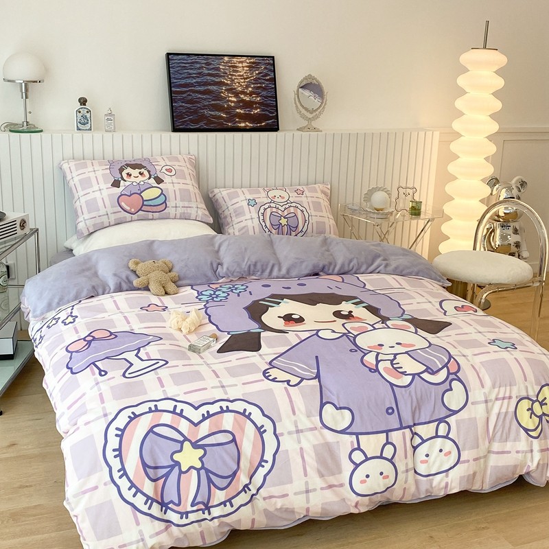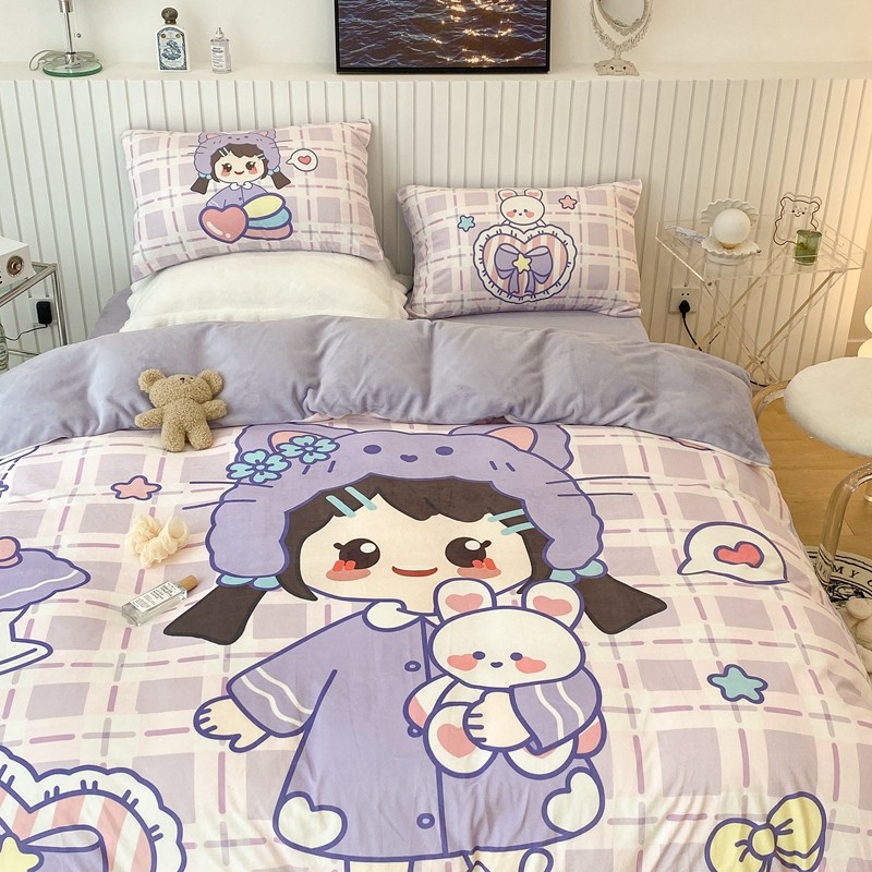 昔可家纺 2021新款大版宝宝牛奶绒四件套 露露女孩