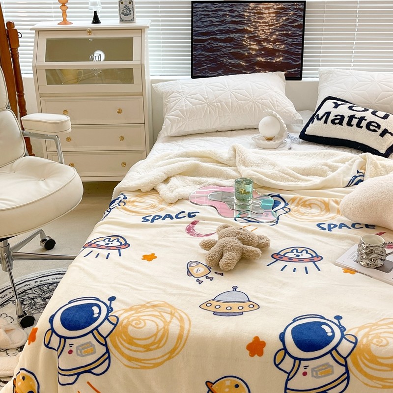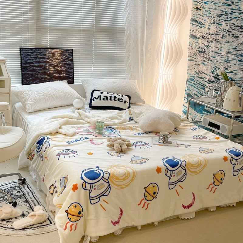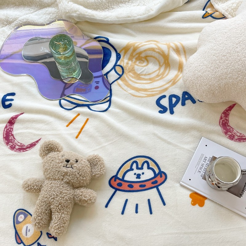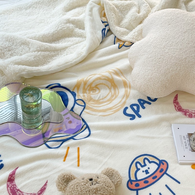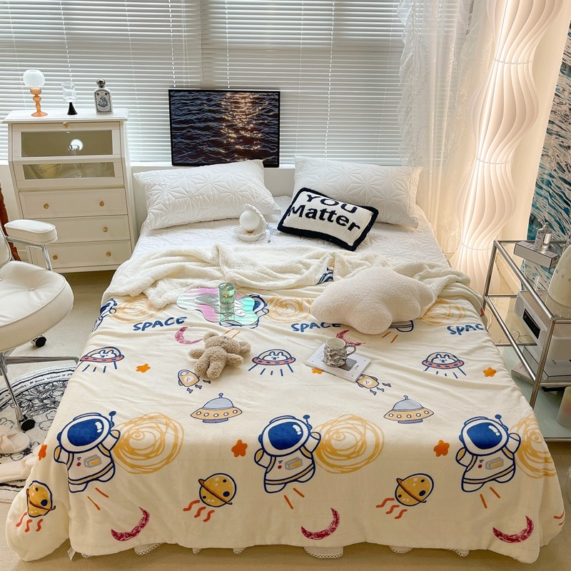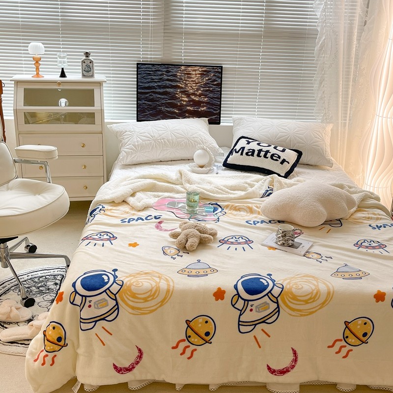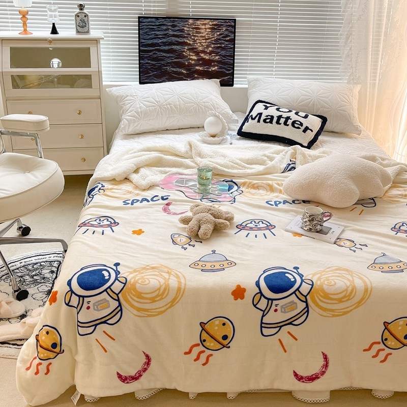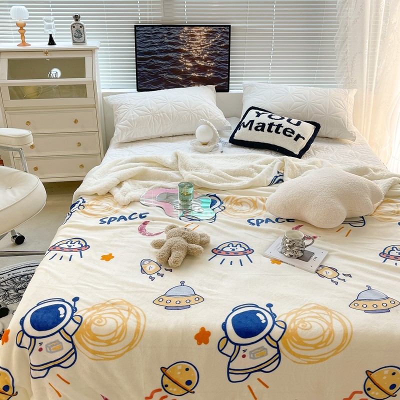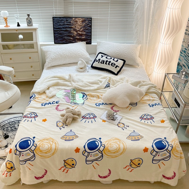 昔可家纺 2021新款牛奶羊羔绒印花毯 太空宇航员