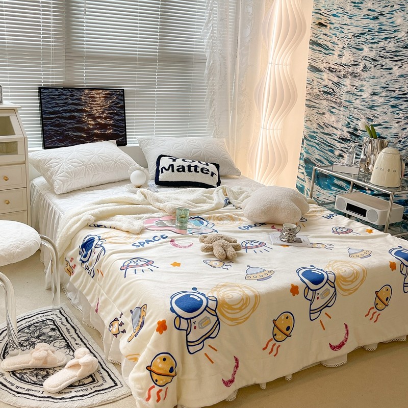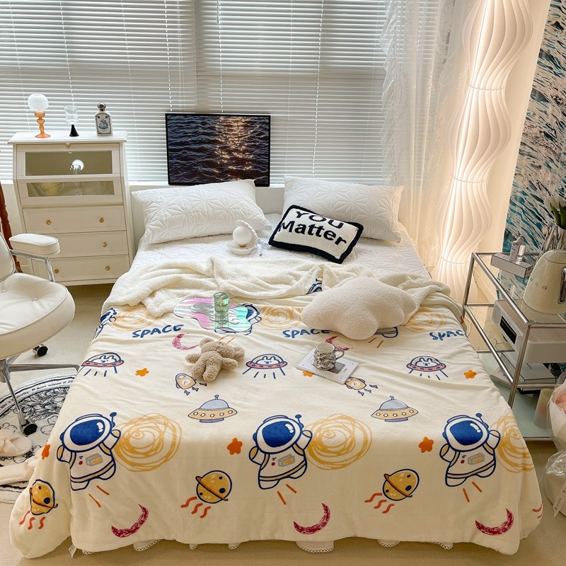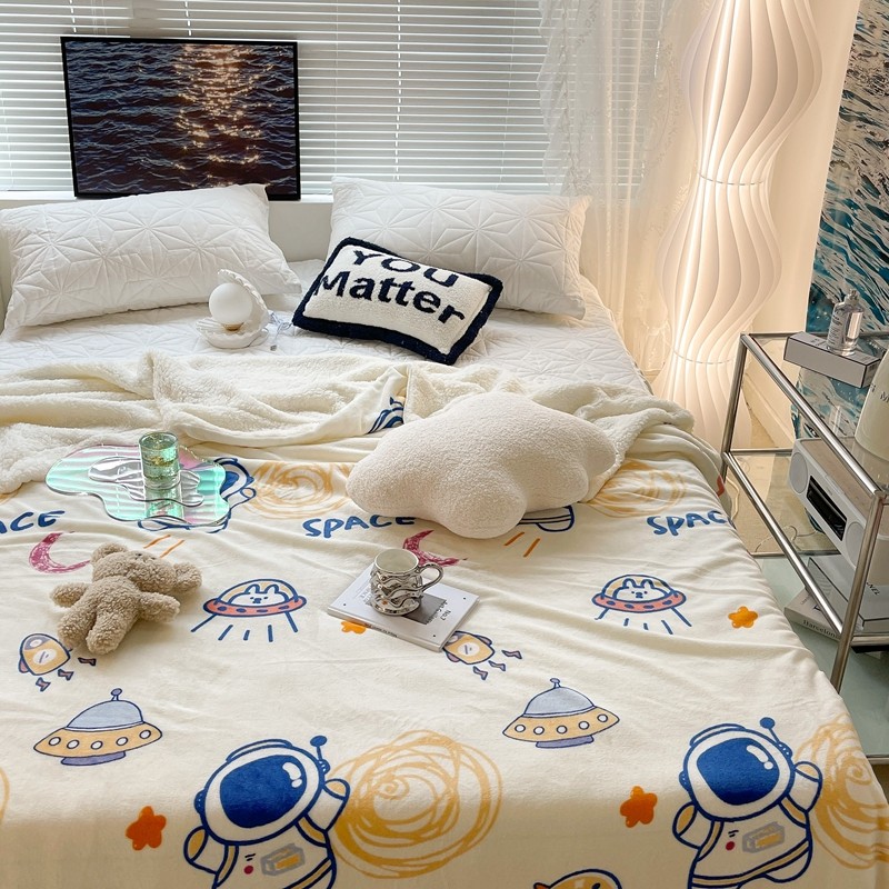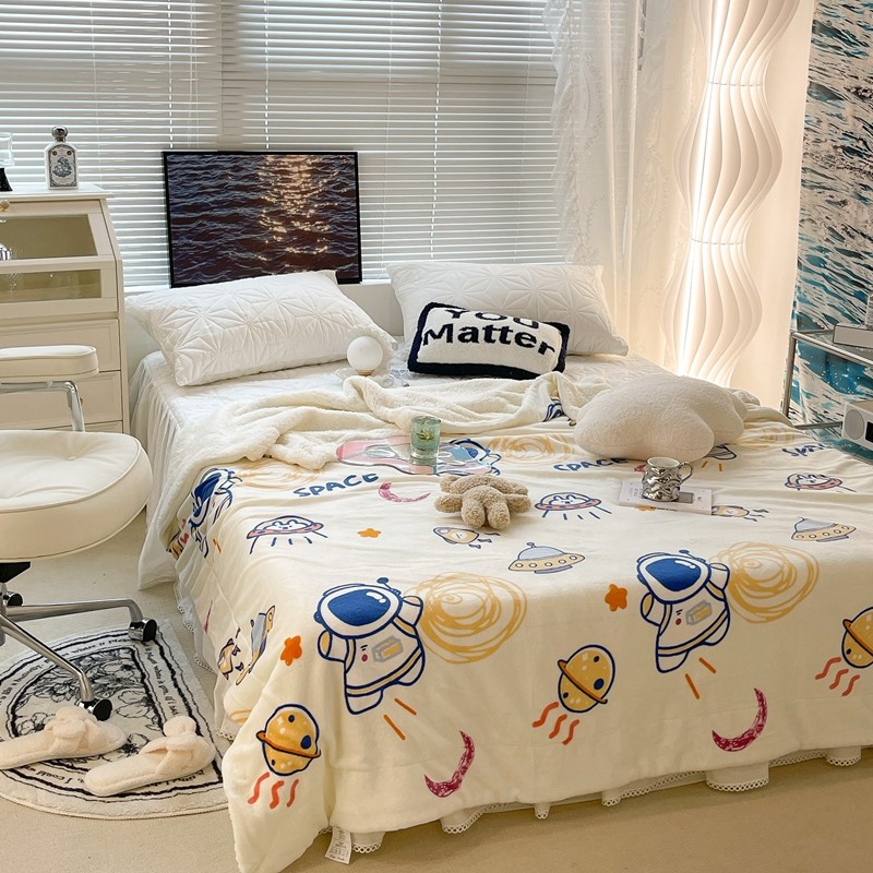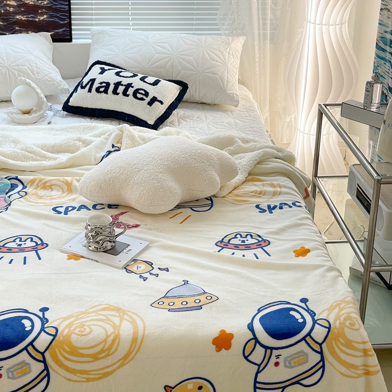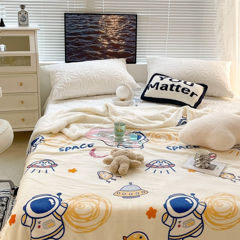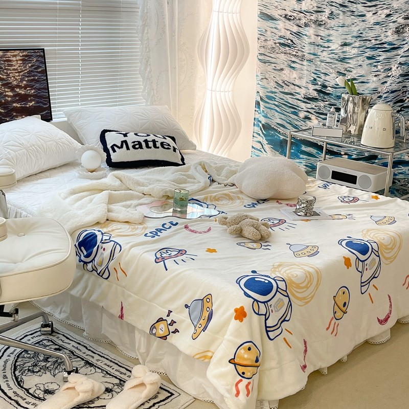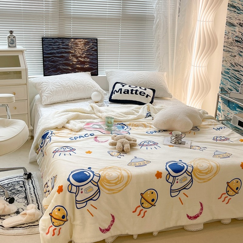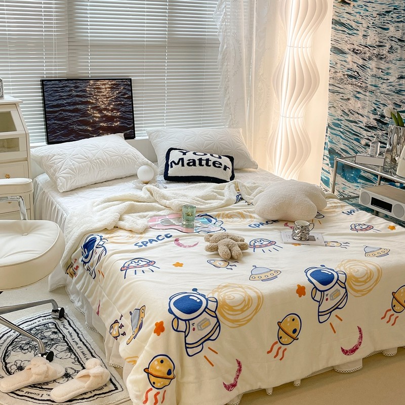 昔可家纺 2021新款牛奶羊羔绒印花毯 太空宇航员