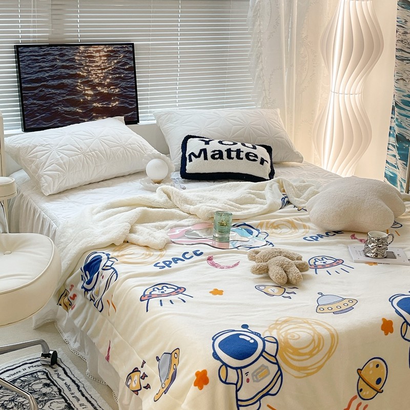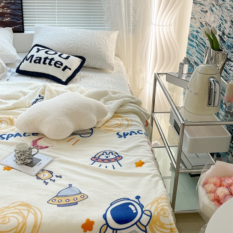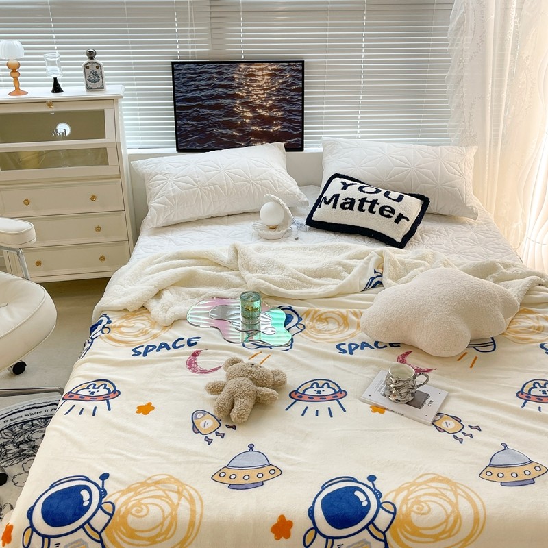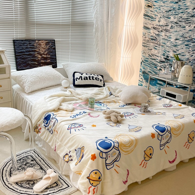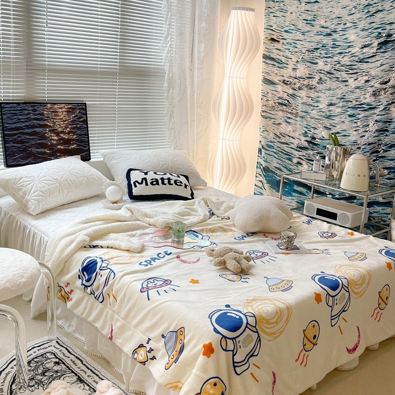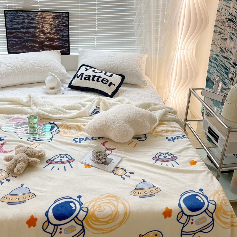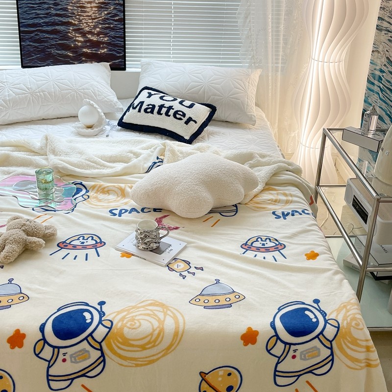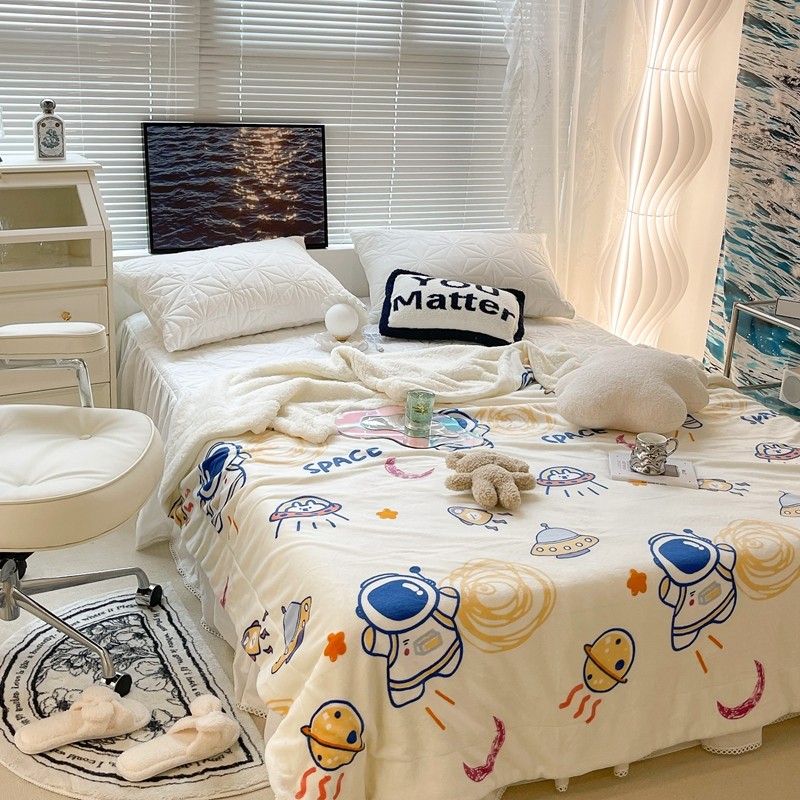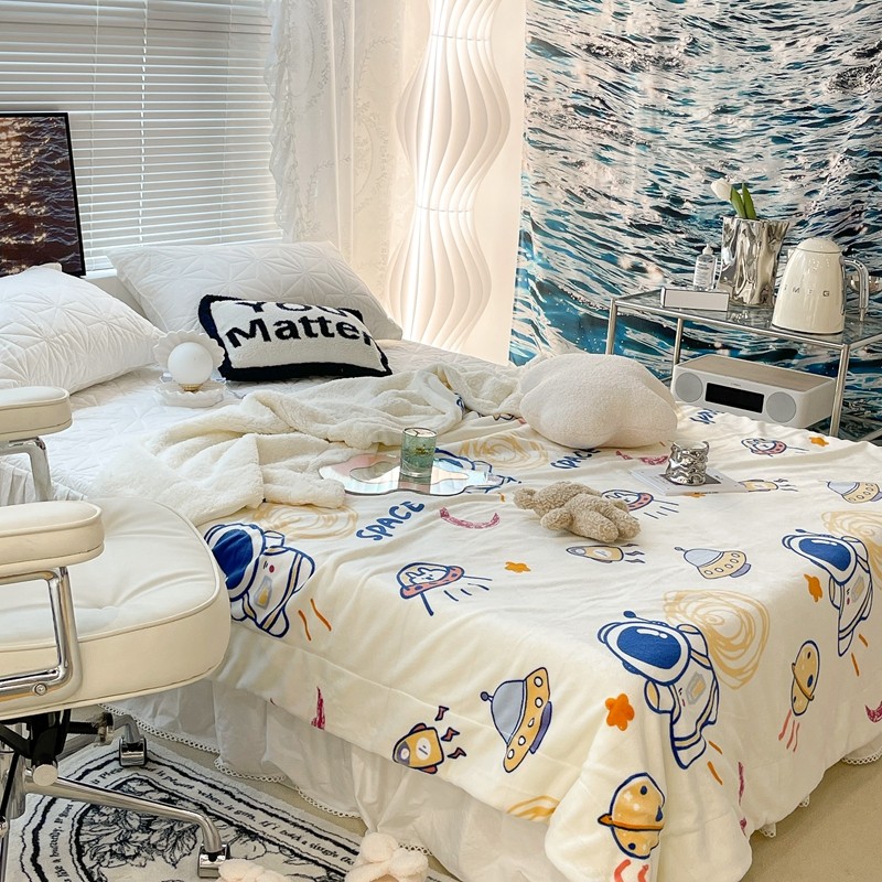 昔可家纺 2021新款牛奶羊羔绒印花毯 太空宇航员
