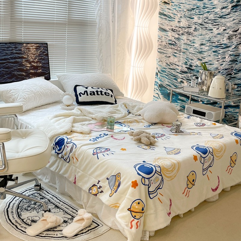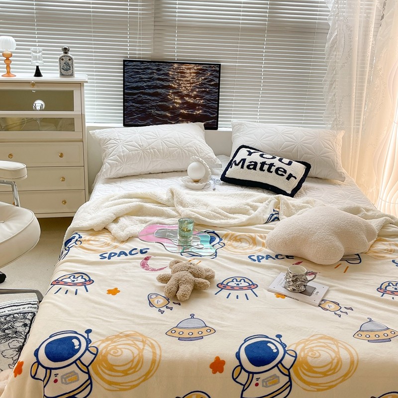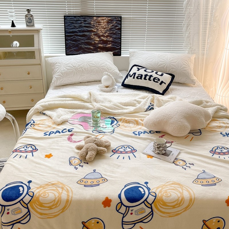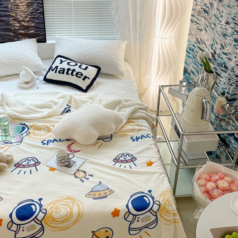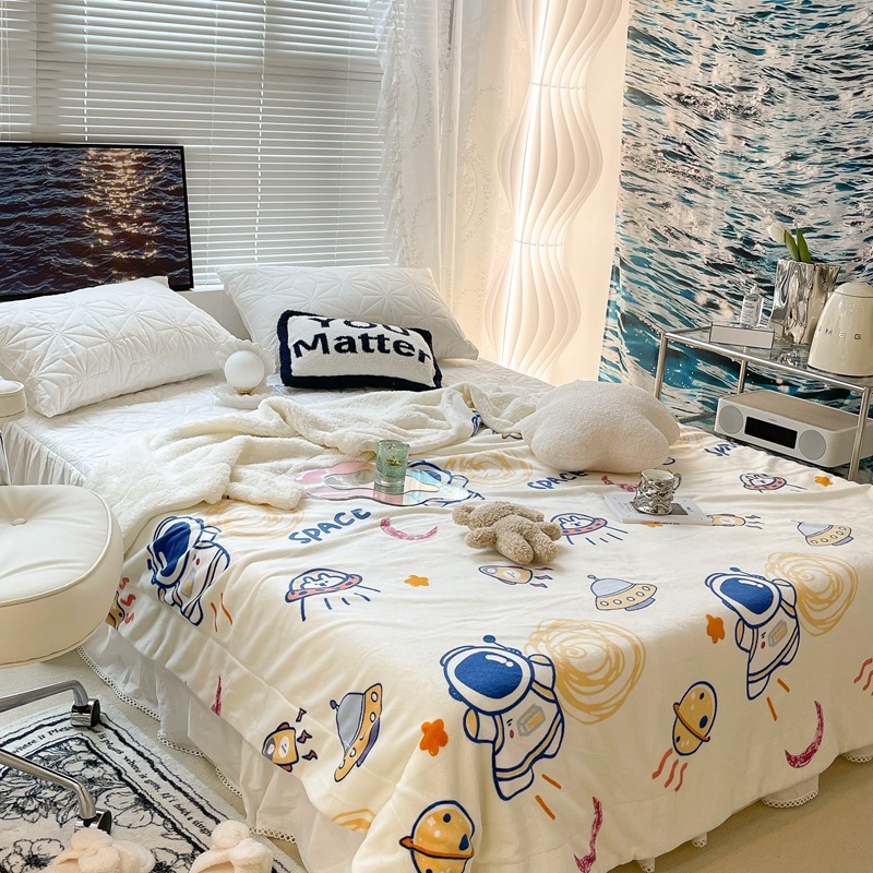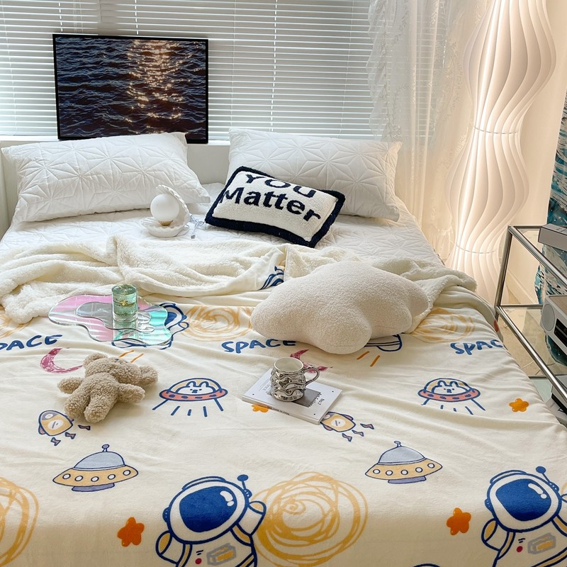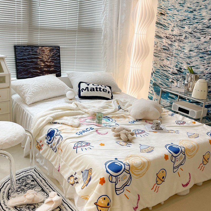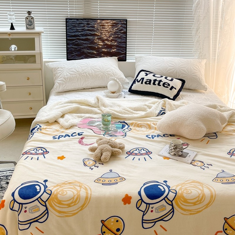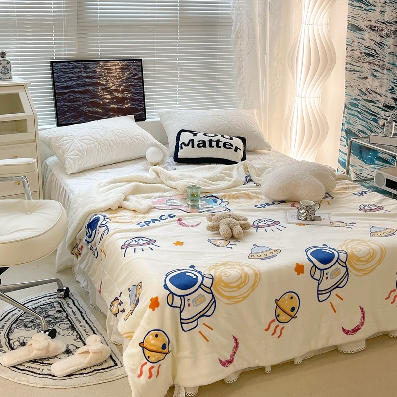 昔可家纺 2021新款牛奶羊羔绒印花毯 太空宇航员