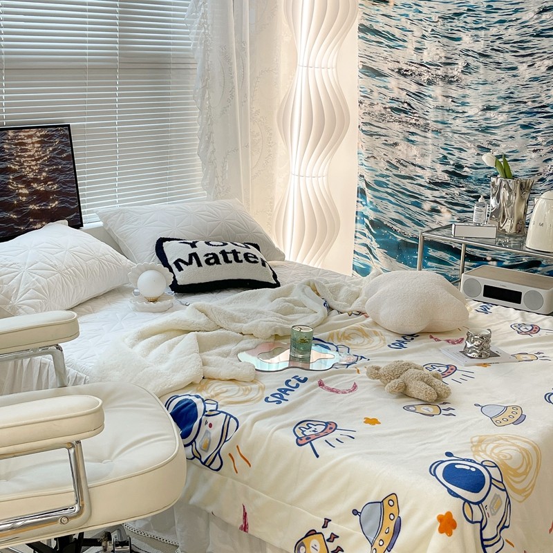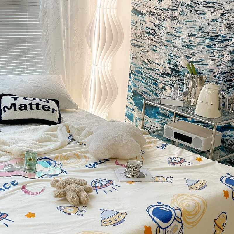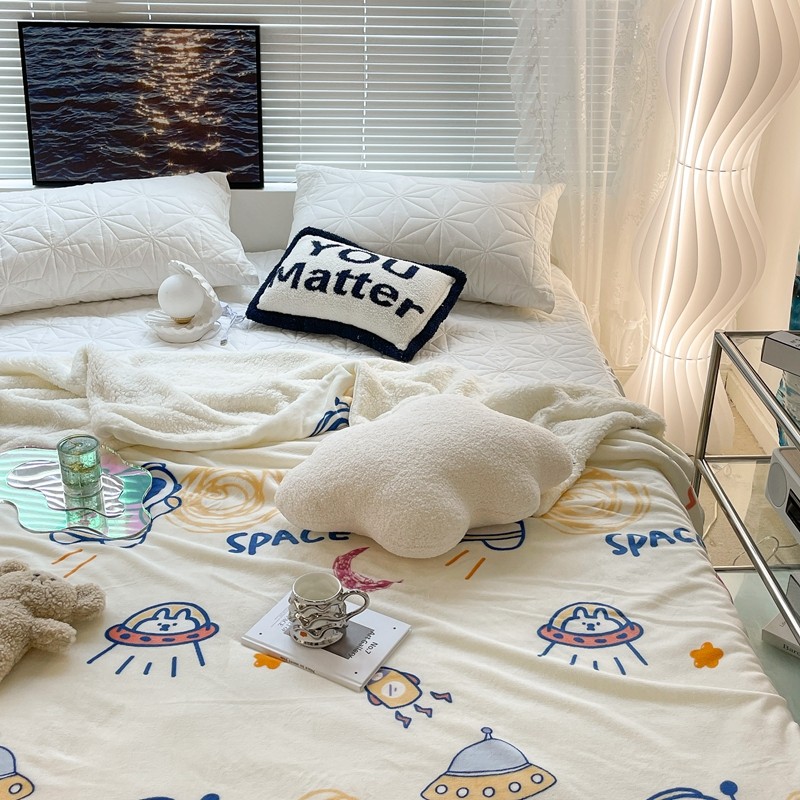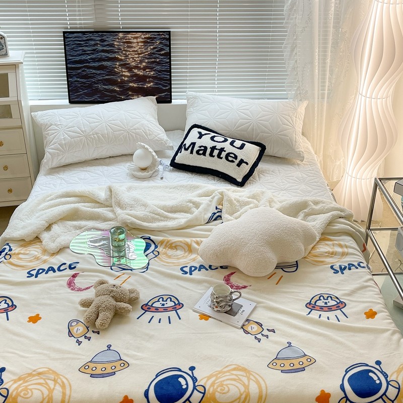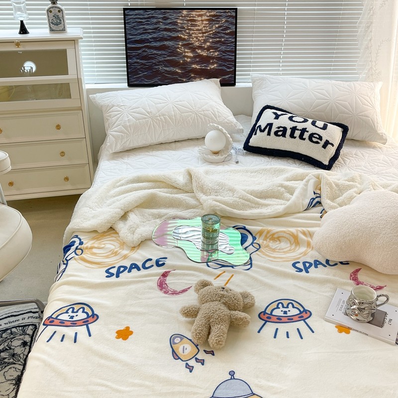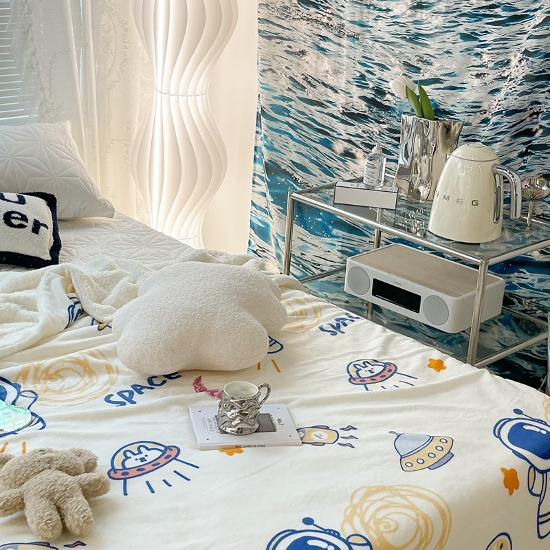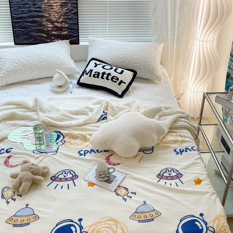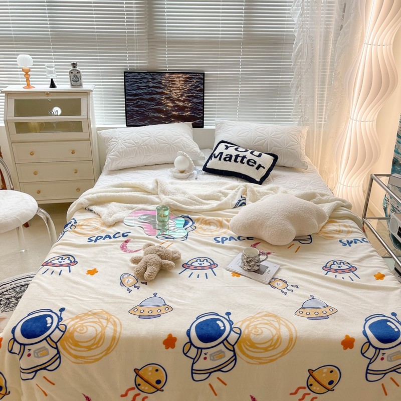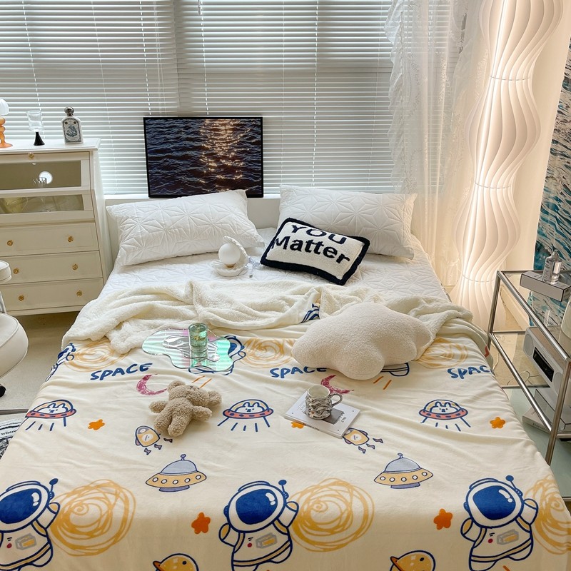 昔可家纺 2021新款牛奶羊羔绒印花毯 太空宇航员