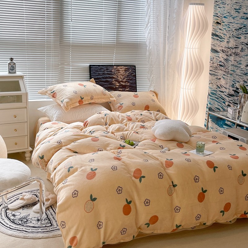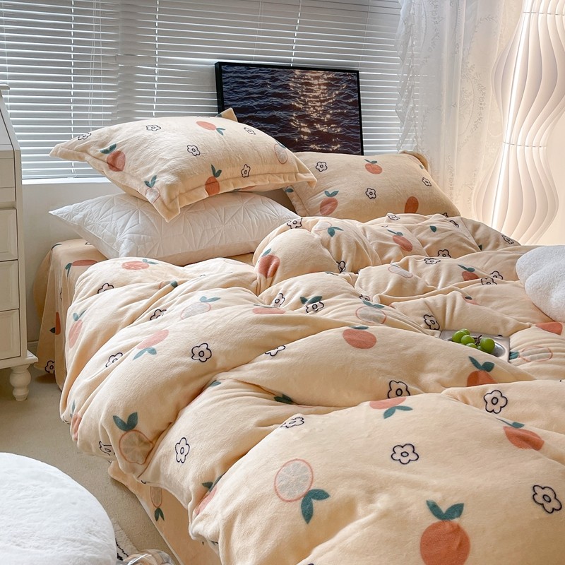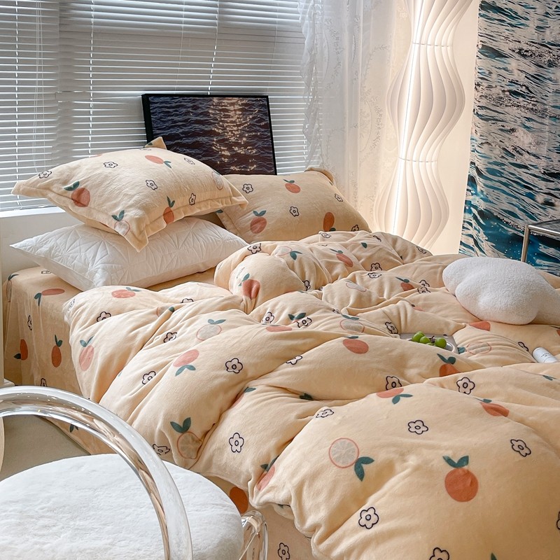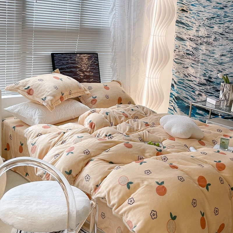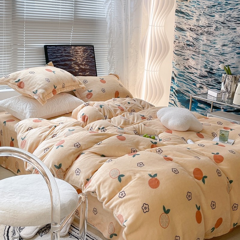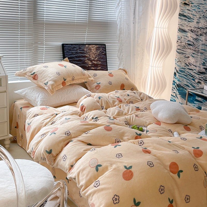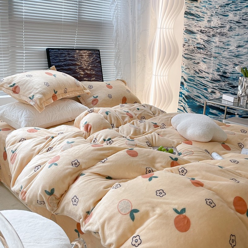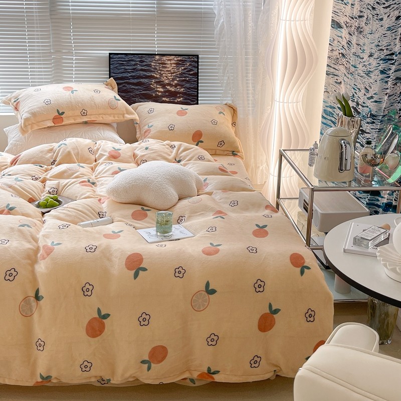 昔可家纺 2021新款牛奶绒四件套-一批 花朵橙