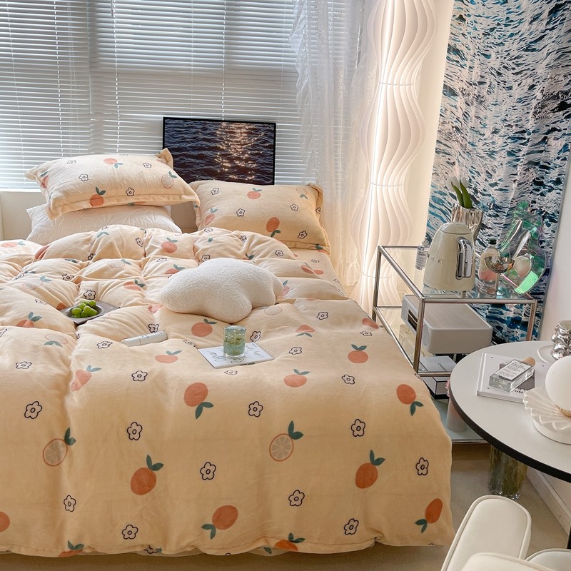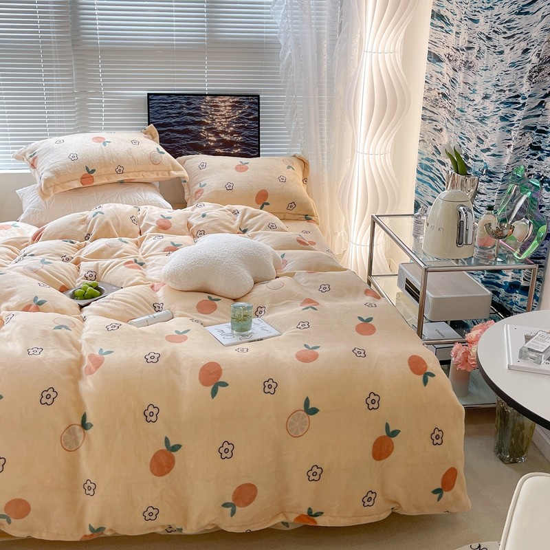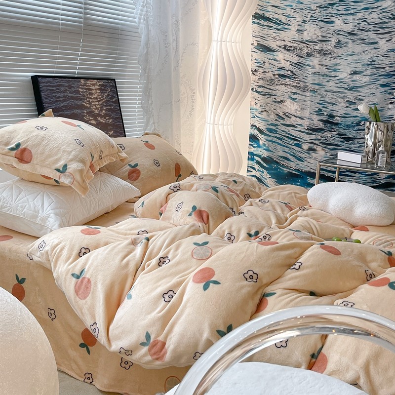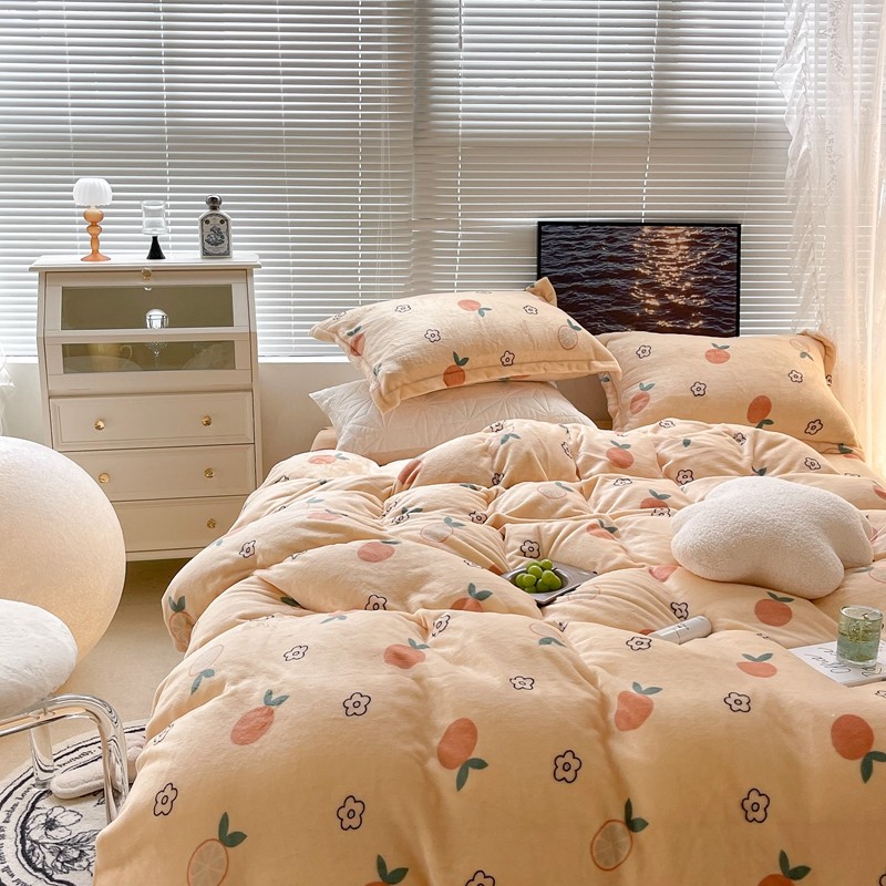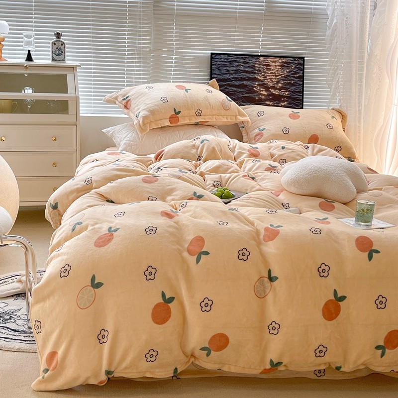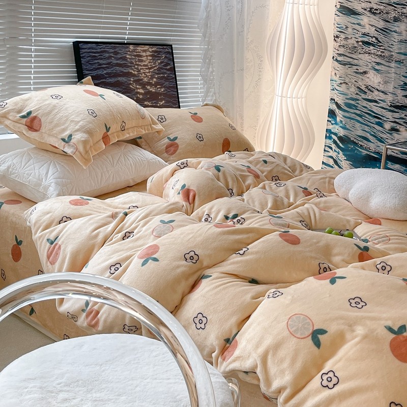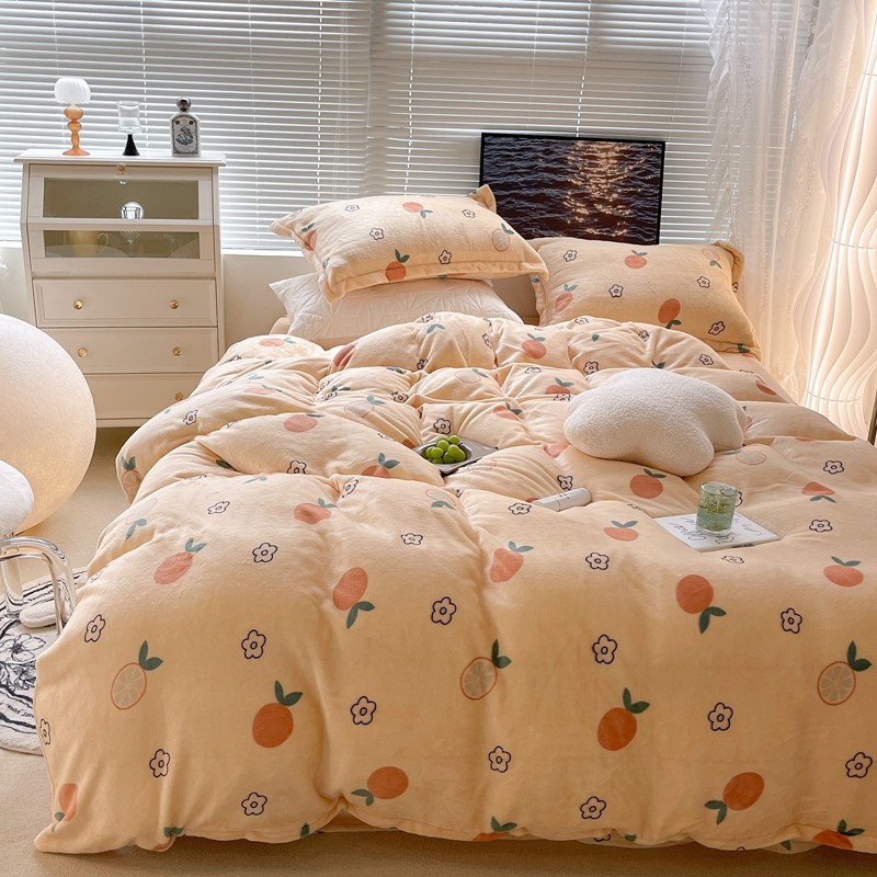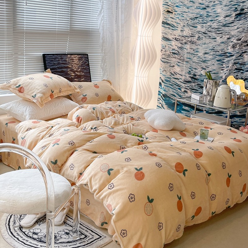 昔可家纺 2021新款牛奶绒四件套-一批 花朵橙