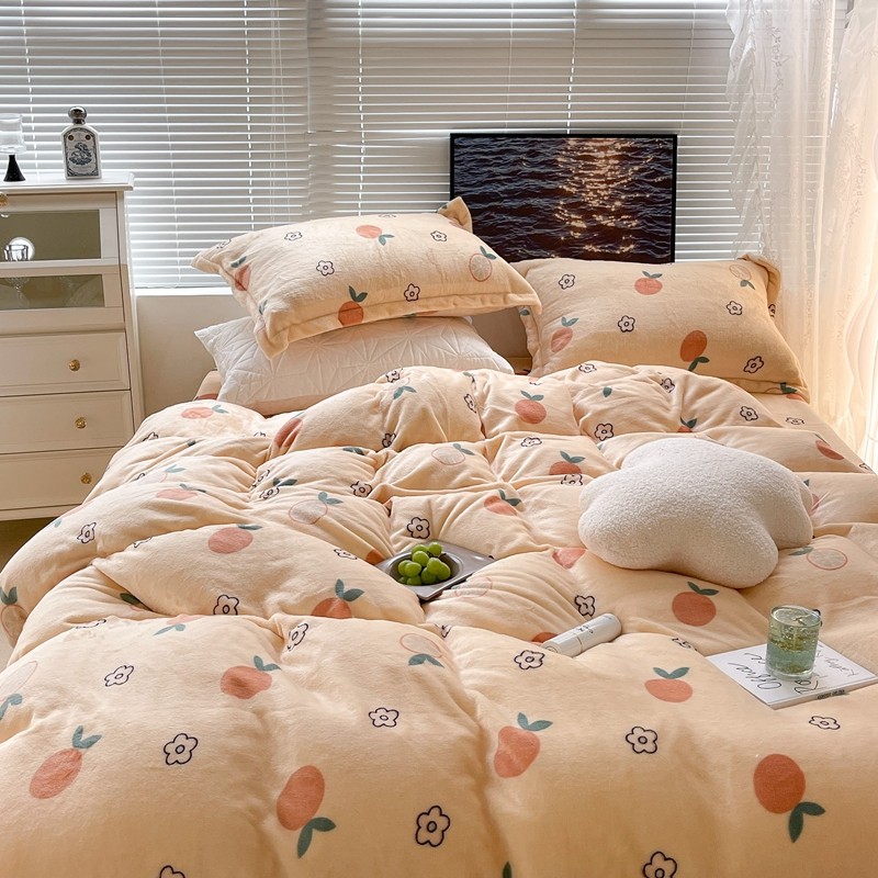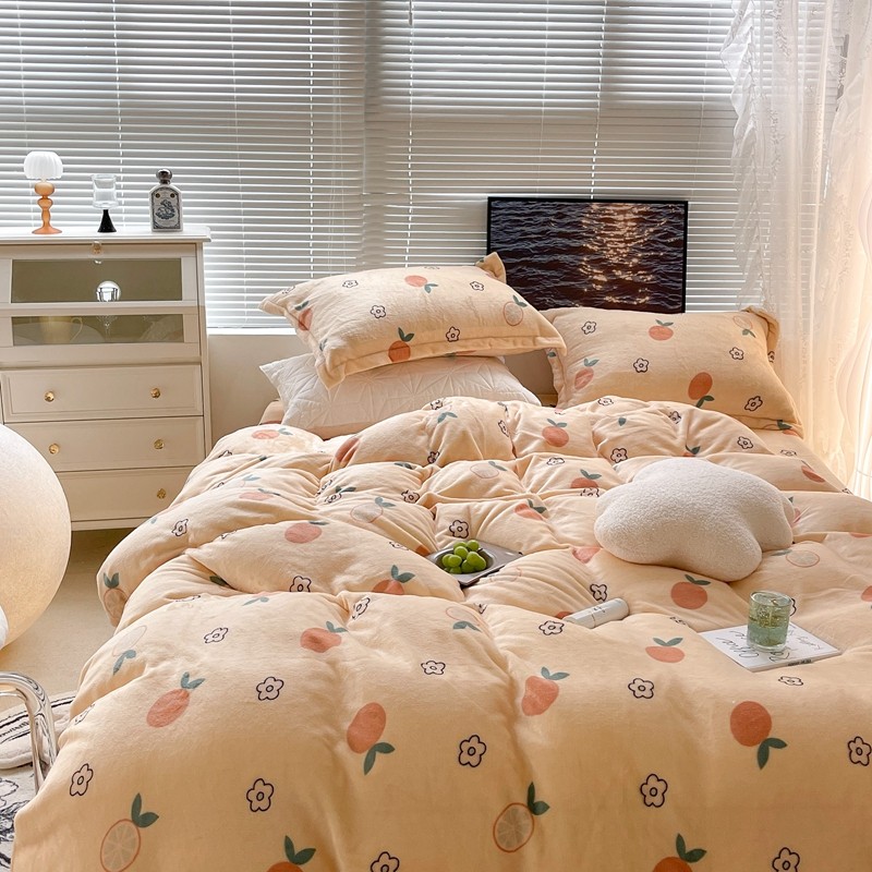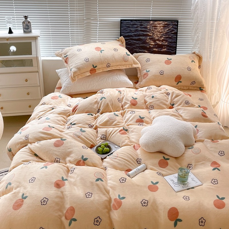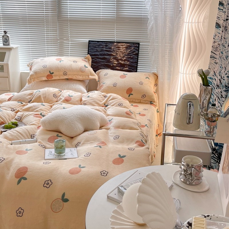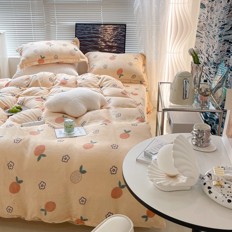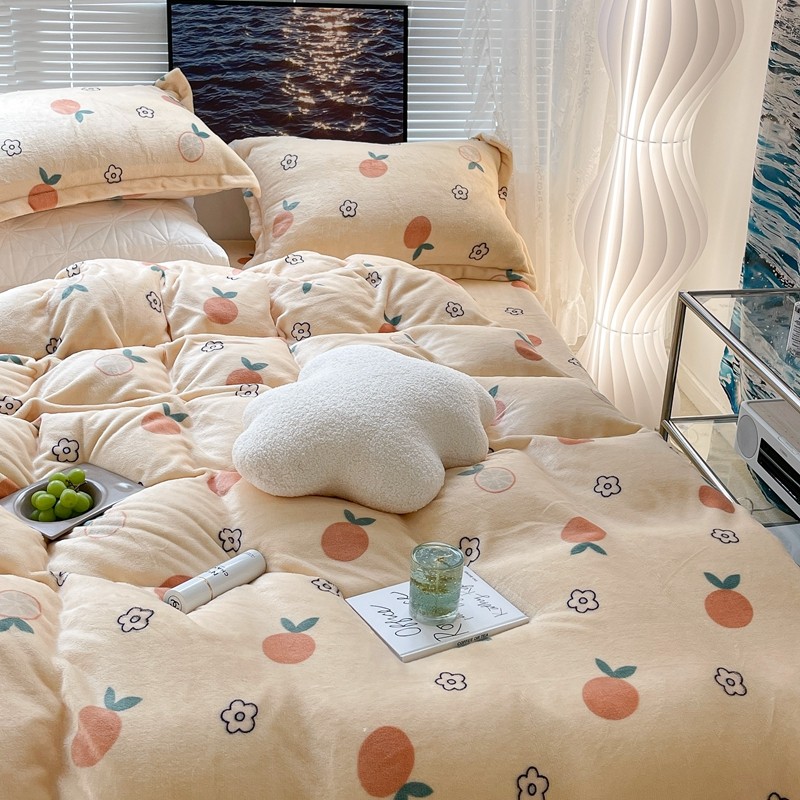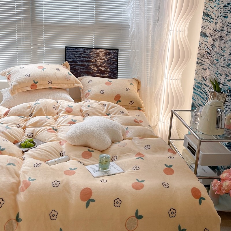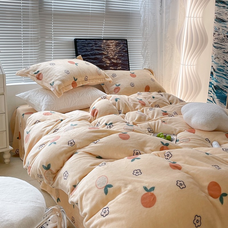 昔可家纺 2021新款牛奶绒四件套-一批 花朵橙