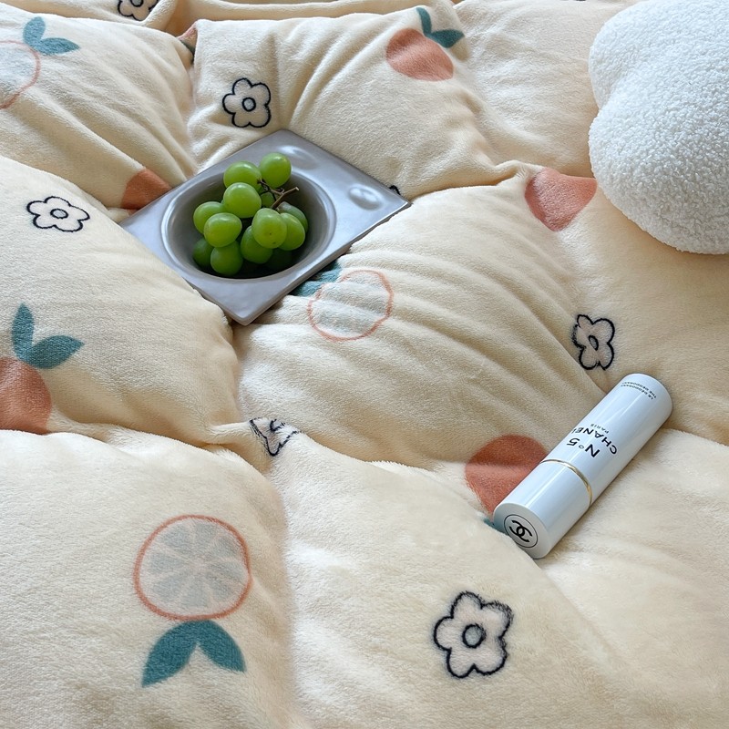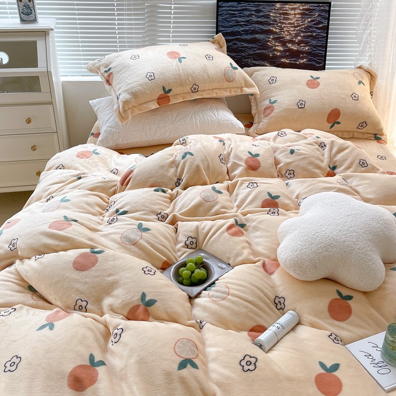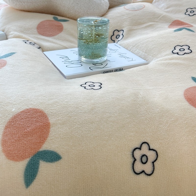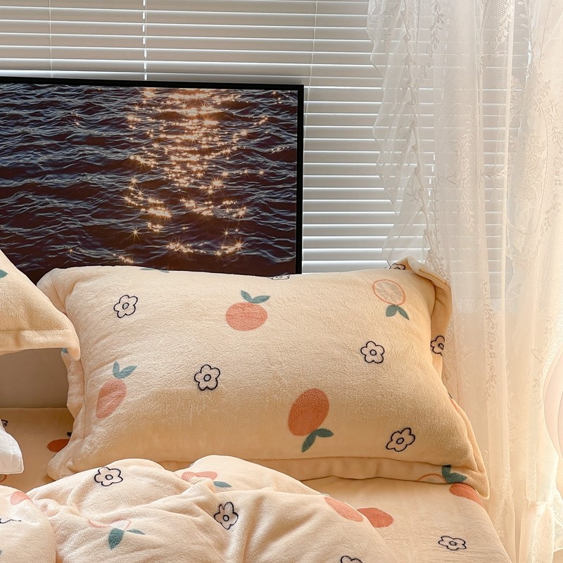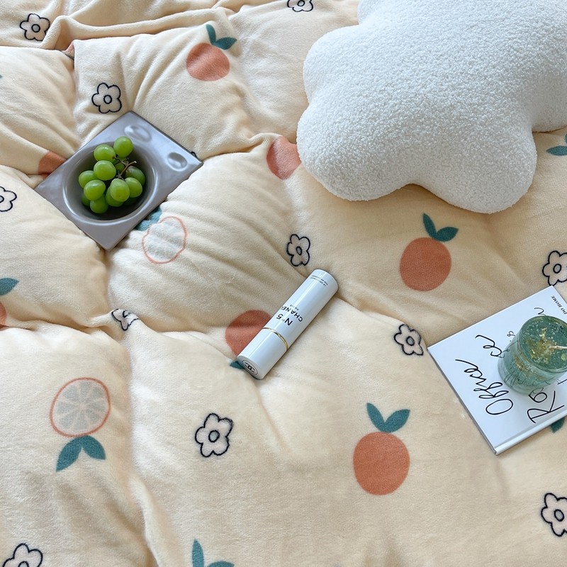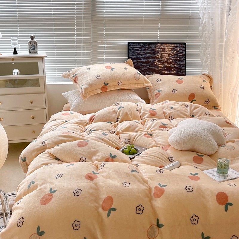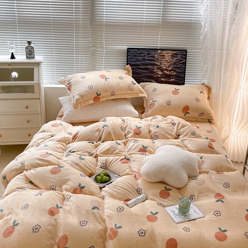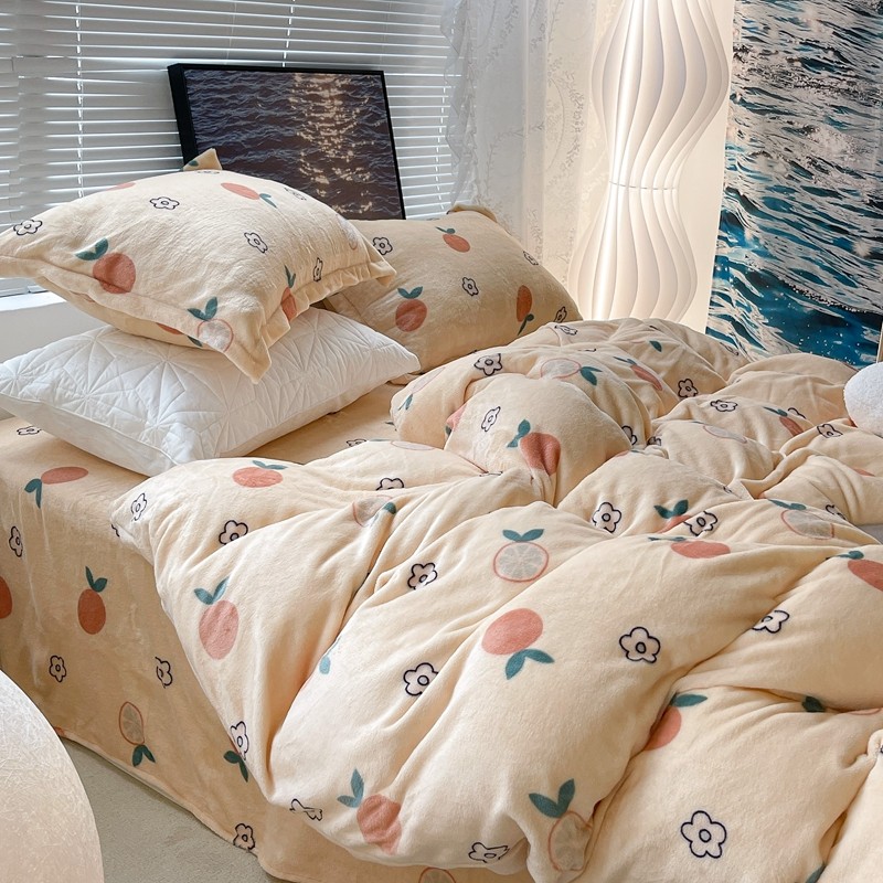 昔可家纺 2021新款牛奶绒四件套-一批 花朵橙