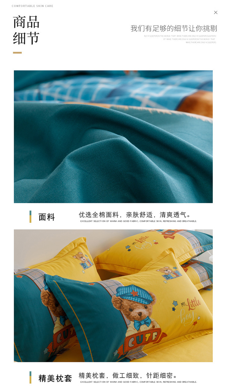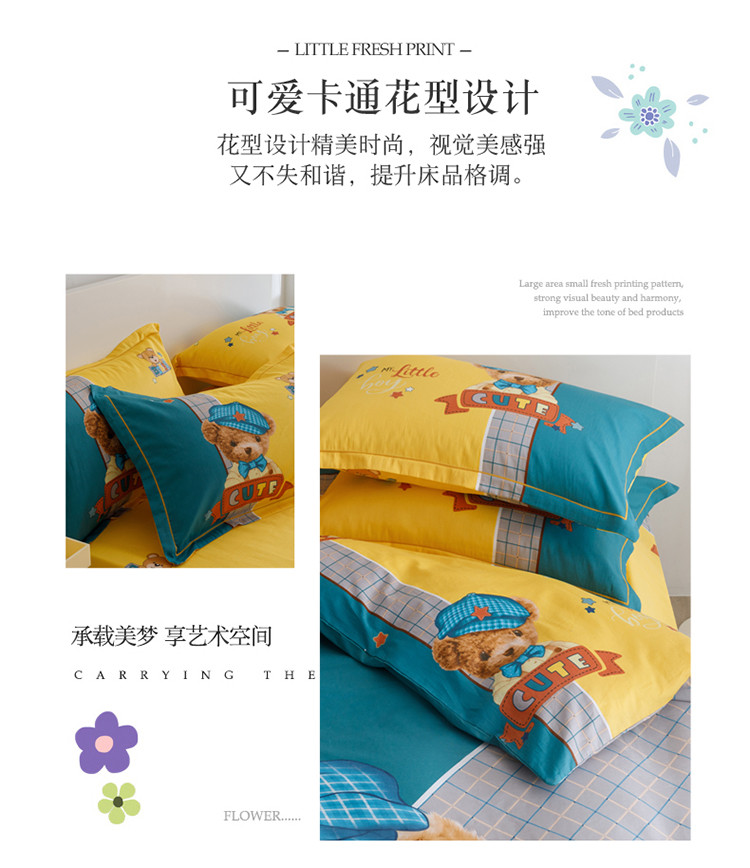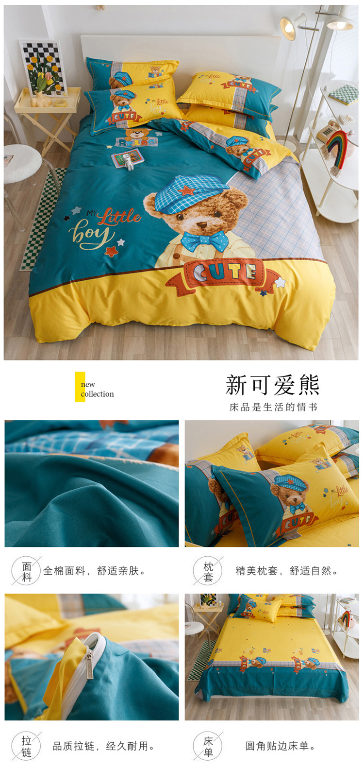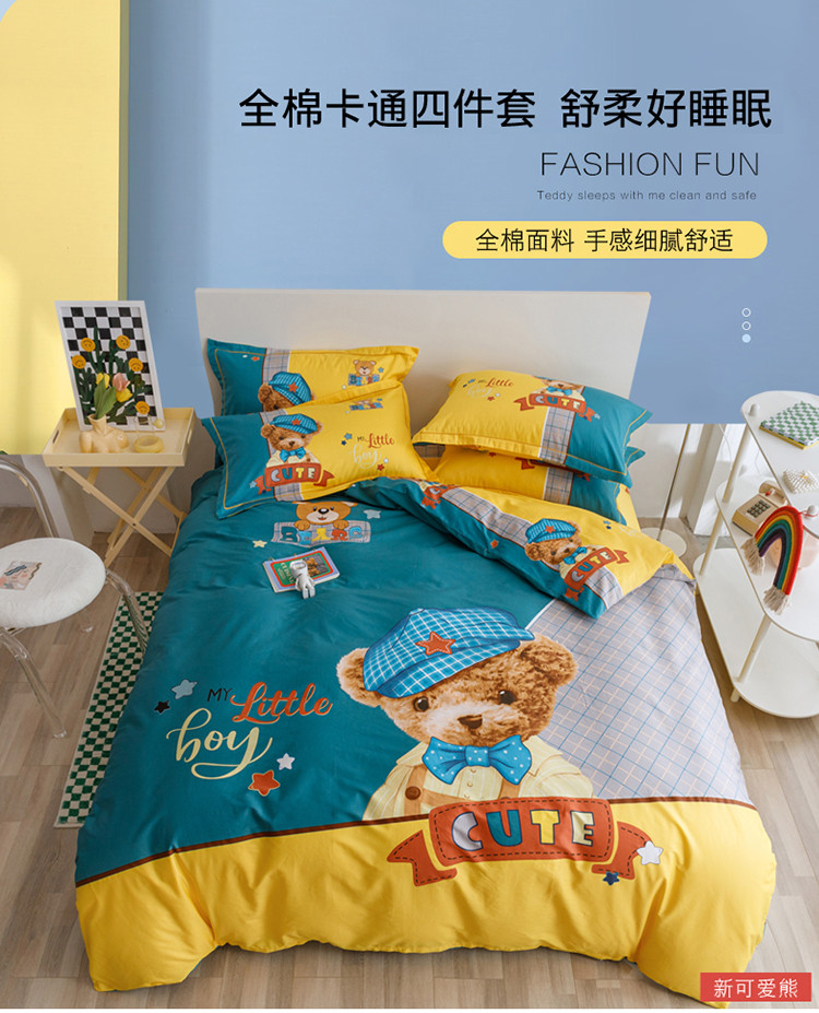当前位置: 91家纺网 > 商品网购 > 床品套件 > 四件套 > 全棉普通四件套 > 金爱家 2023新款大版纯棉卡通四件套 新可爱熊