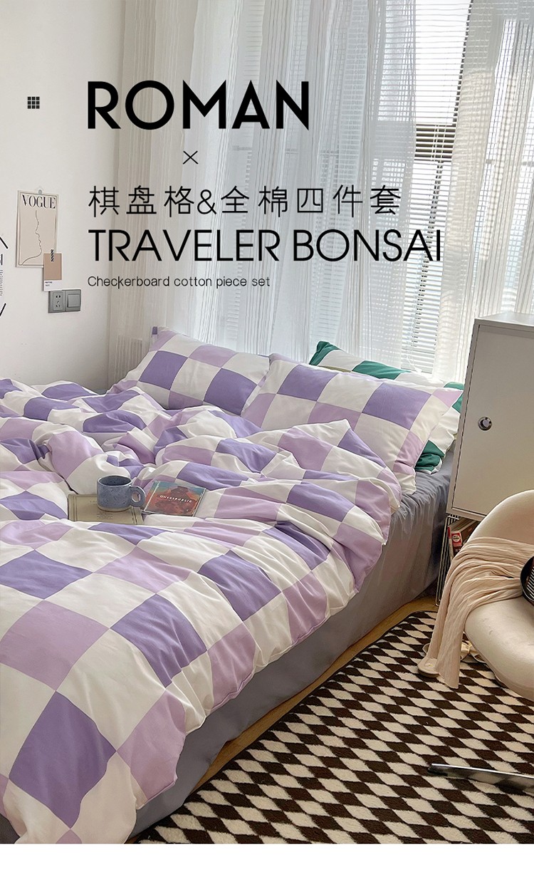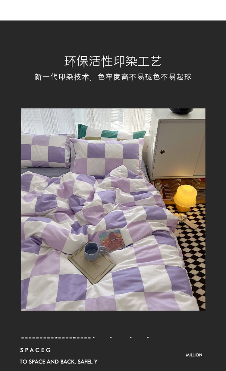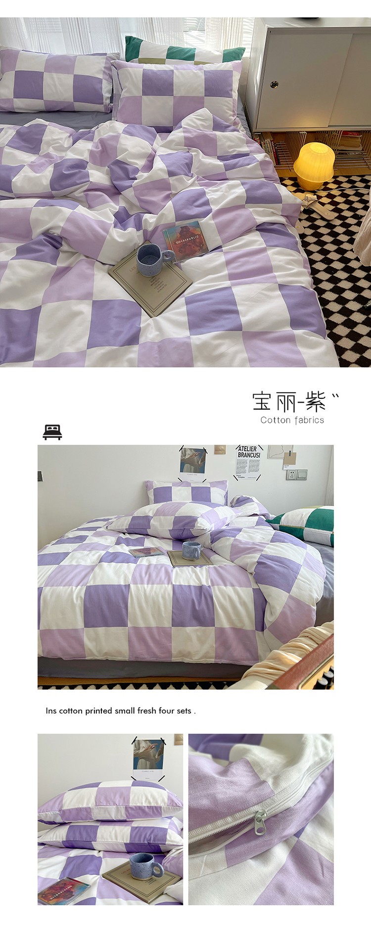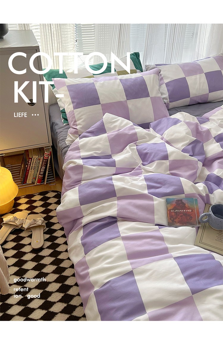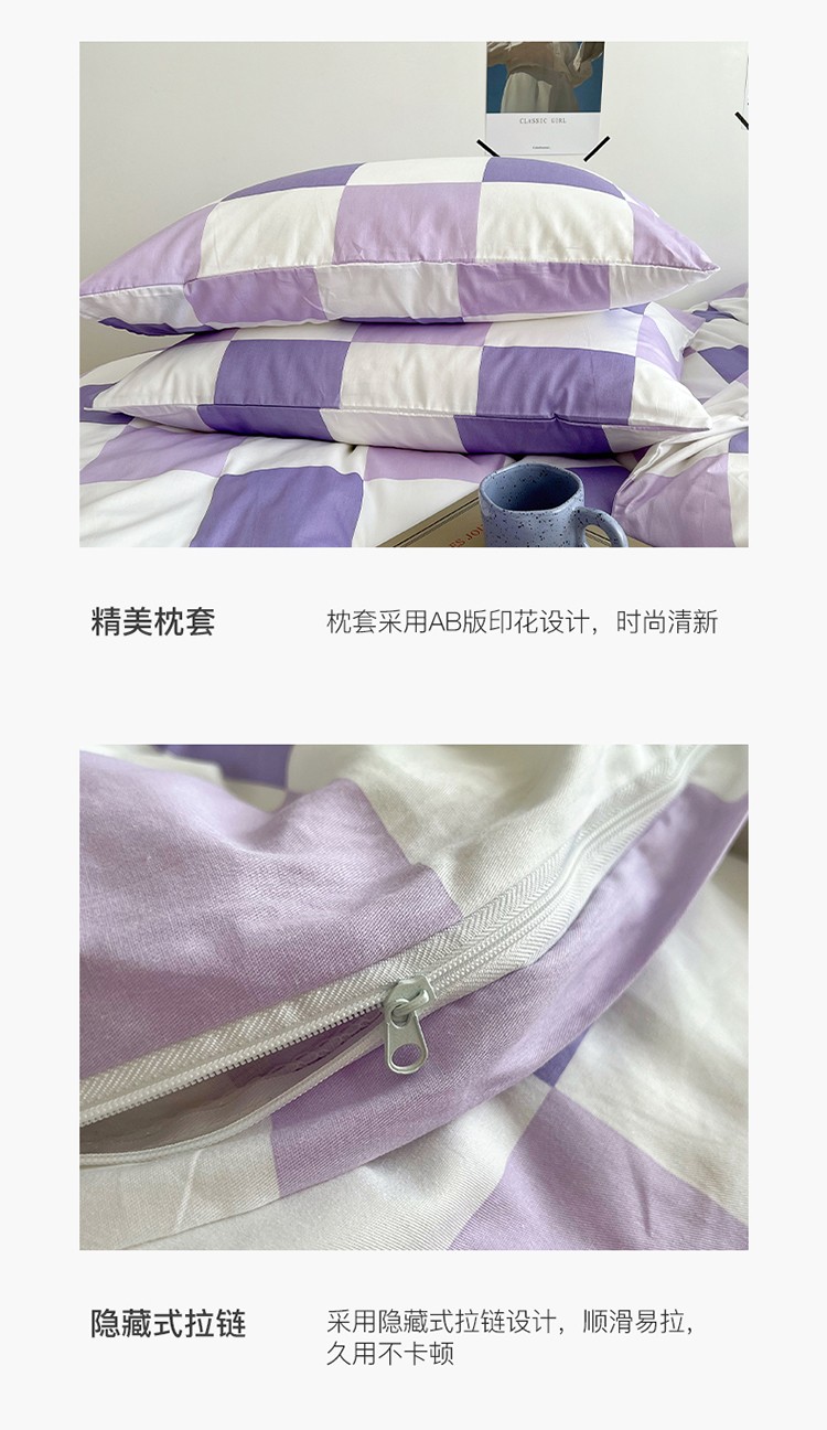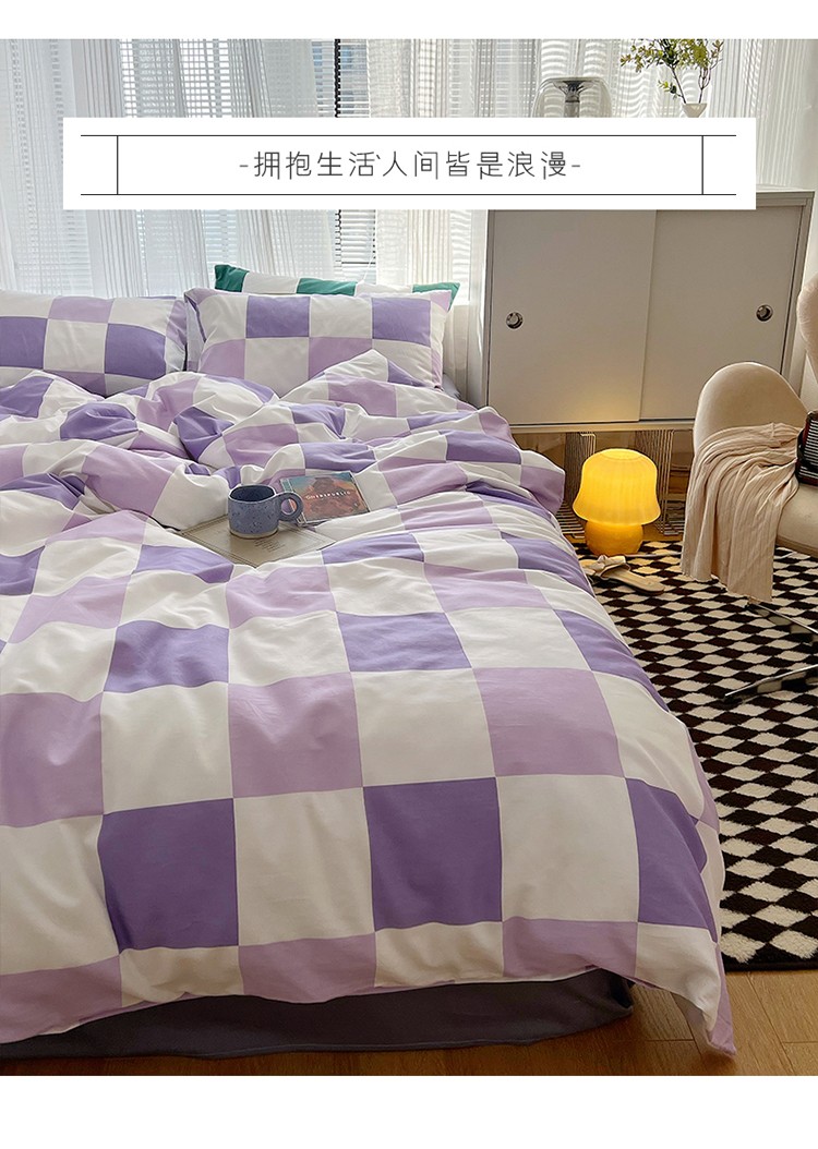XIWEN-希文家纺2022全棉棋盘格13372四件套宝丽紫