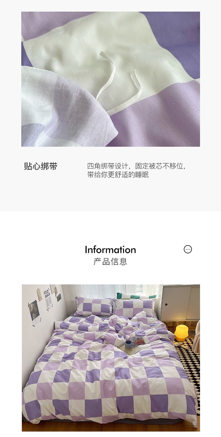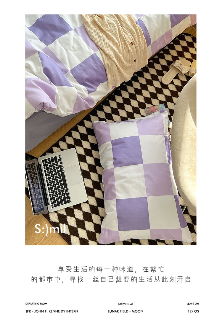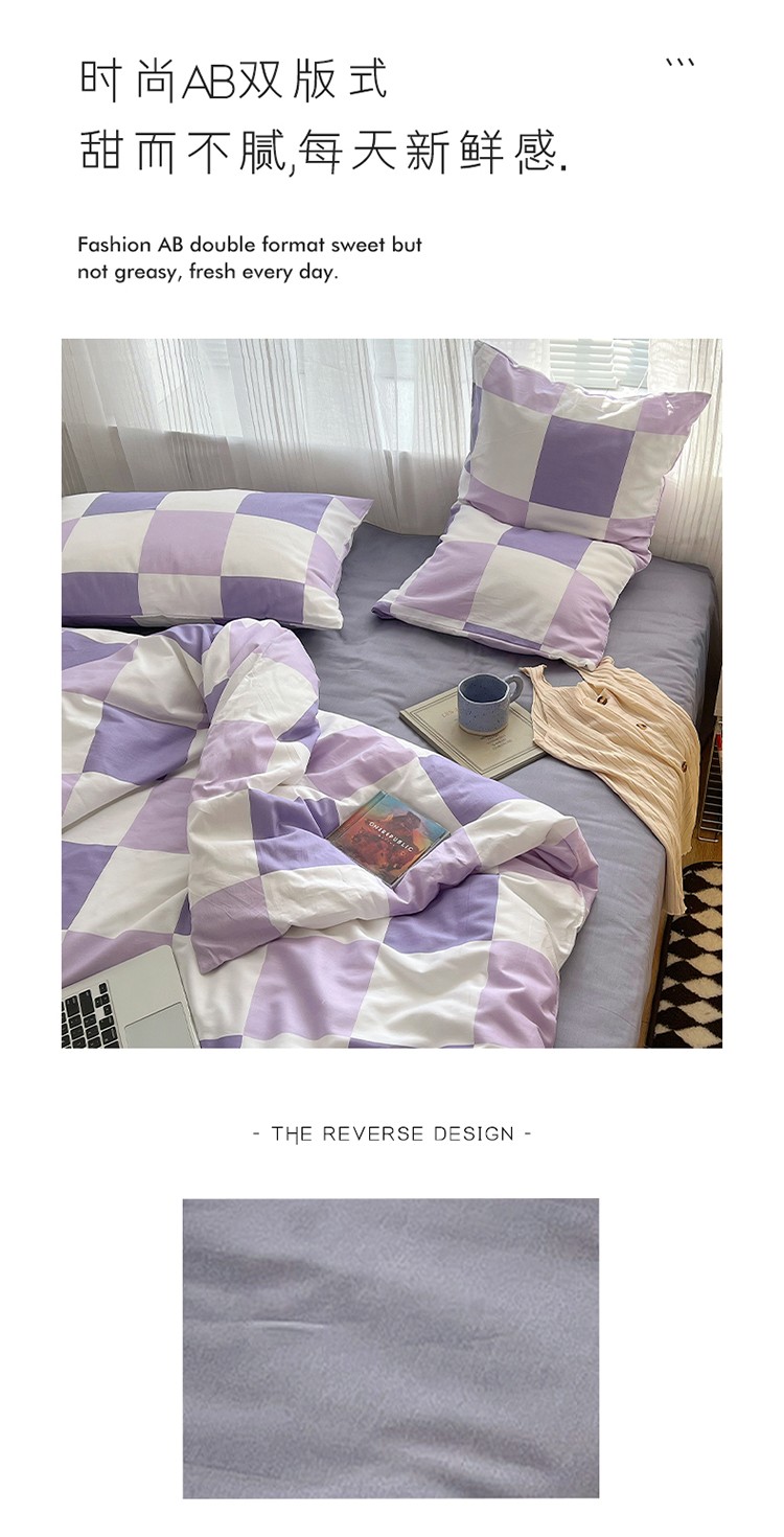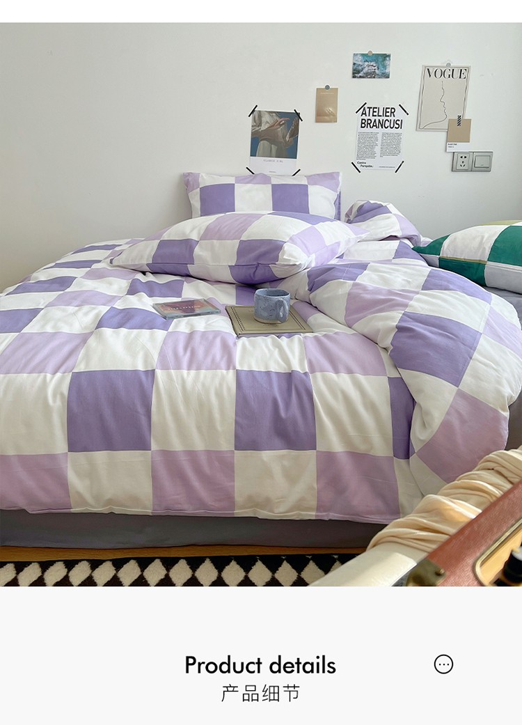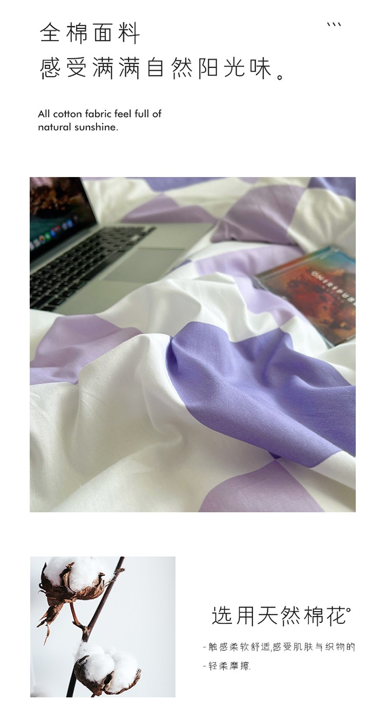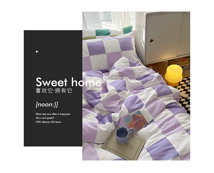 XIWEN-希文家纺2022全棉棋盘格13372四件套宝丽紫