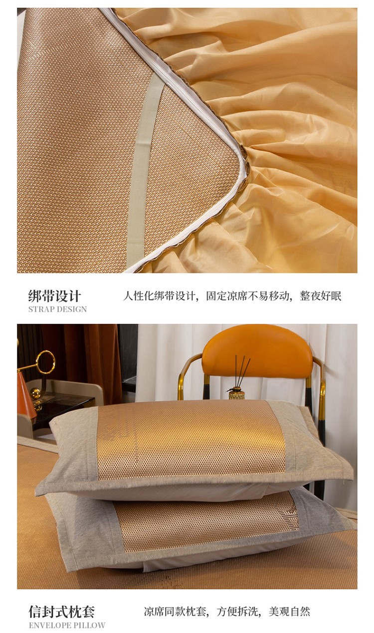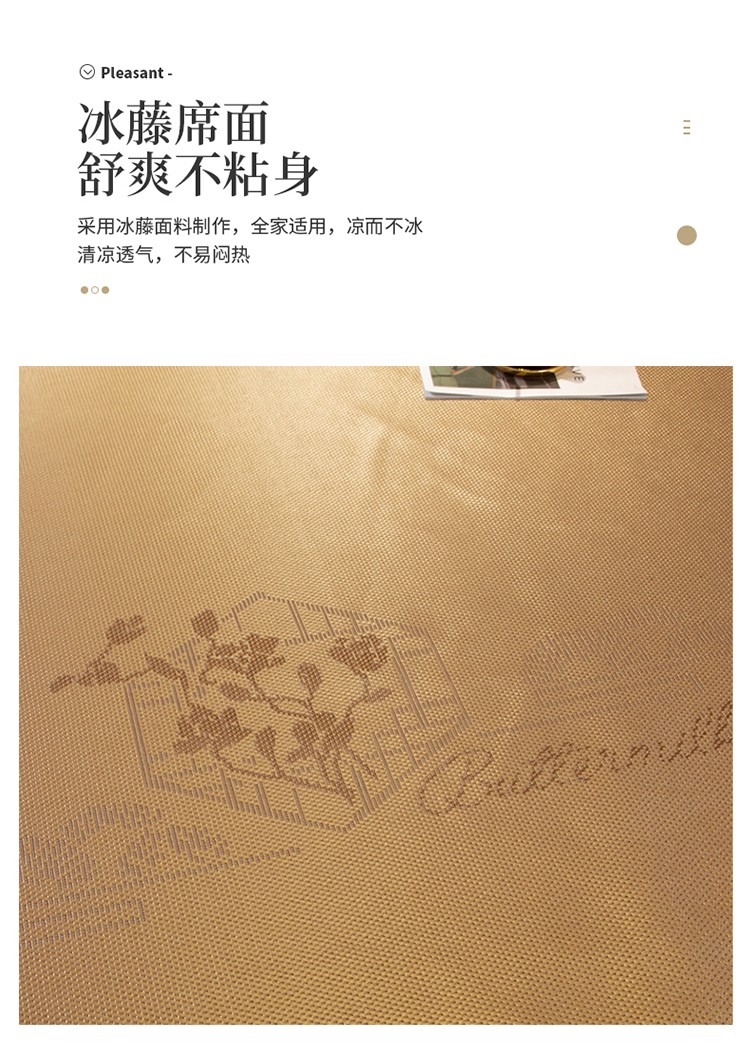(总)能好家纺 2025新款三明治冰藤席凉席小米花系列,灰色,金色,绿色