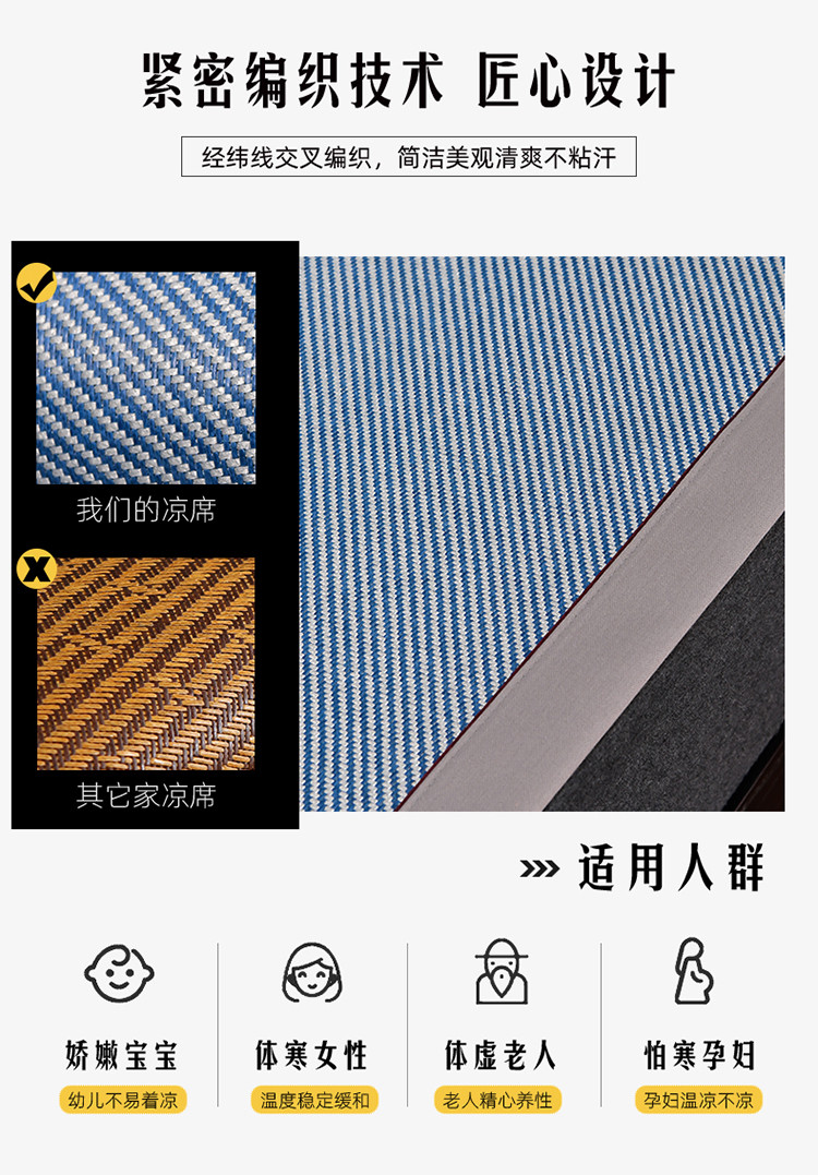 2023新款经典全藤席面艾草养生席-床笠款冰藤席冰丝席竹席空调席凉席,冰蓝,黑咖,红棕,黄藤,灰色,墨绿,浅咖,亚麻