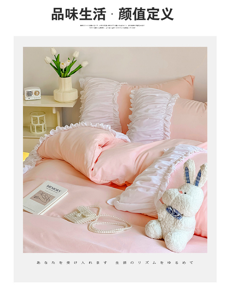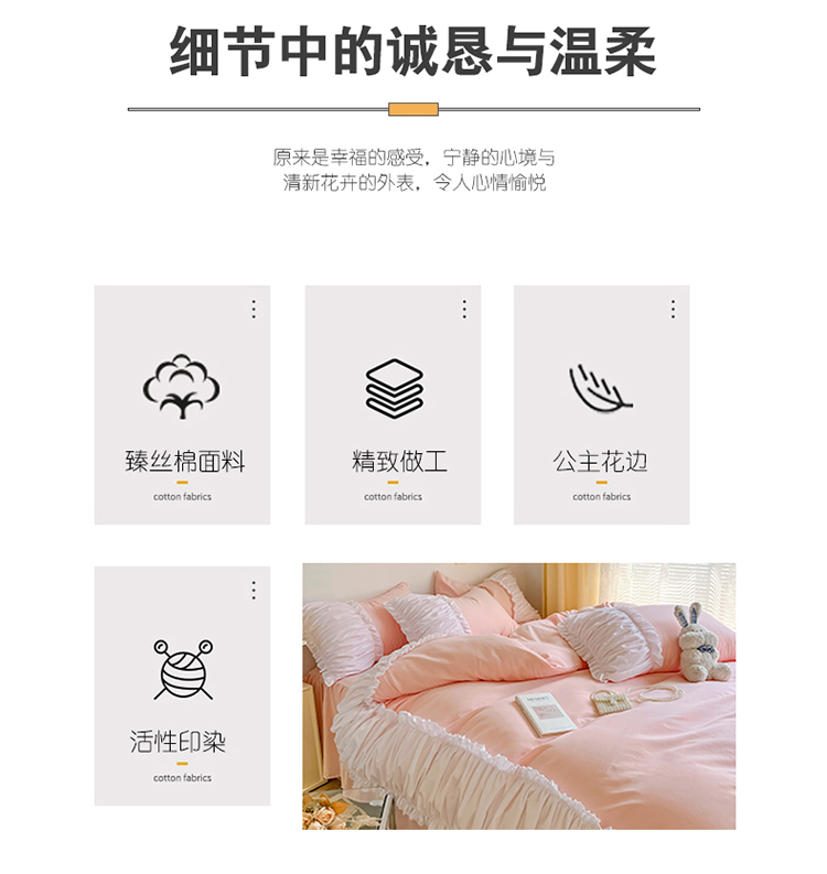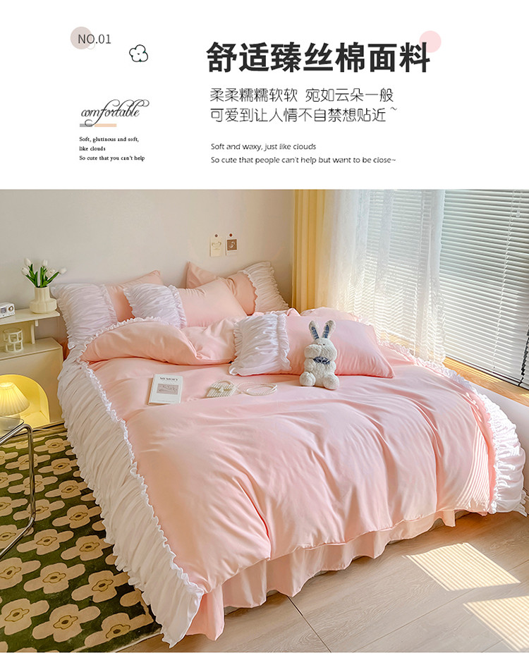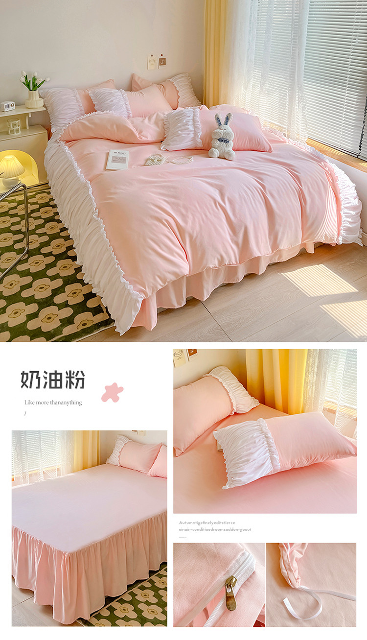 当前位置: 91家纺网 > 商品网购 > 床品套件 > 四件套 > 磨毛活性四件套 > 包小包2024新款韩版奶油ing风系列臻丝棉四件套 奶油粉