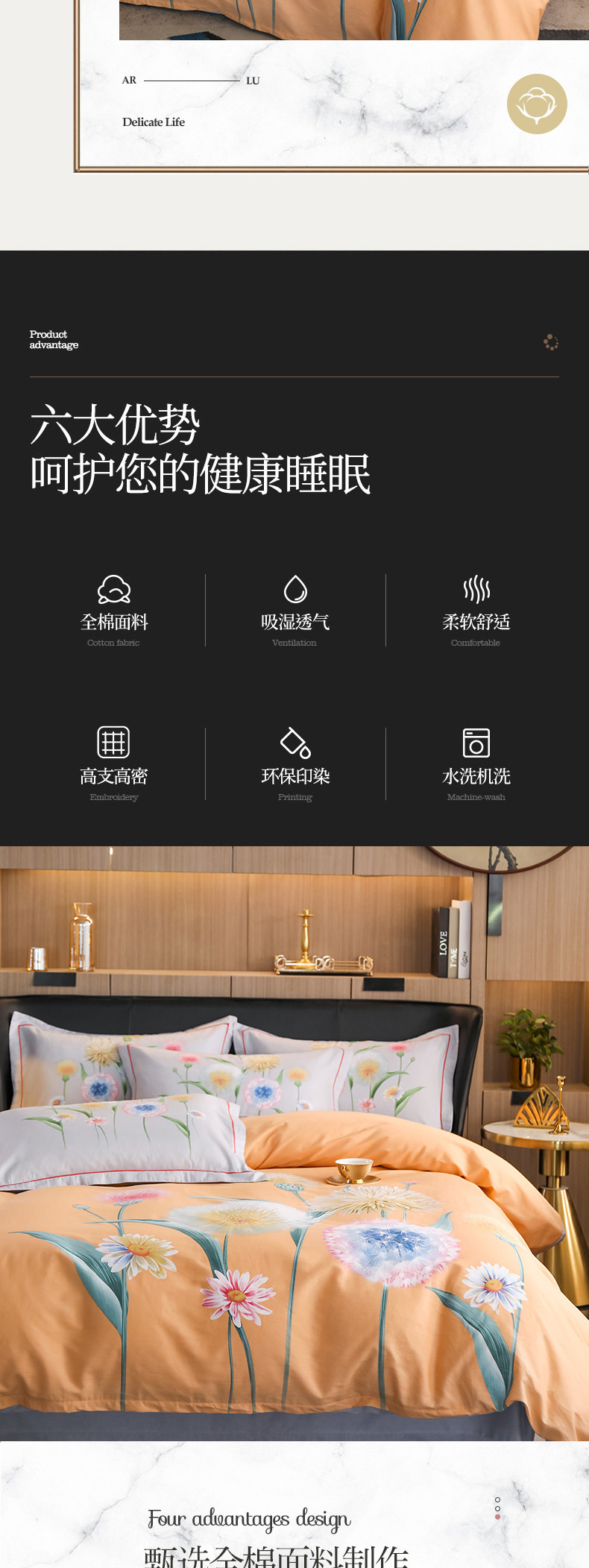 (总)雲归梦 2021新款全棉生态磨毛刺绣四件套,慕思-橙色,慕思-粉紫,慕思-灰,慕思-米黄,慕思-青绿,慕思-天蓝