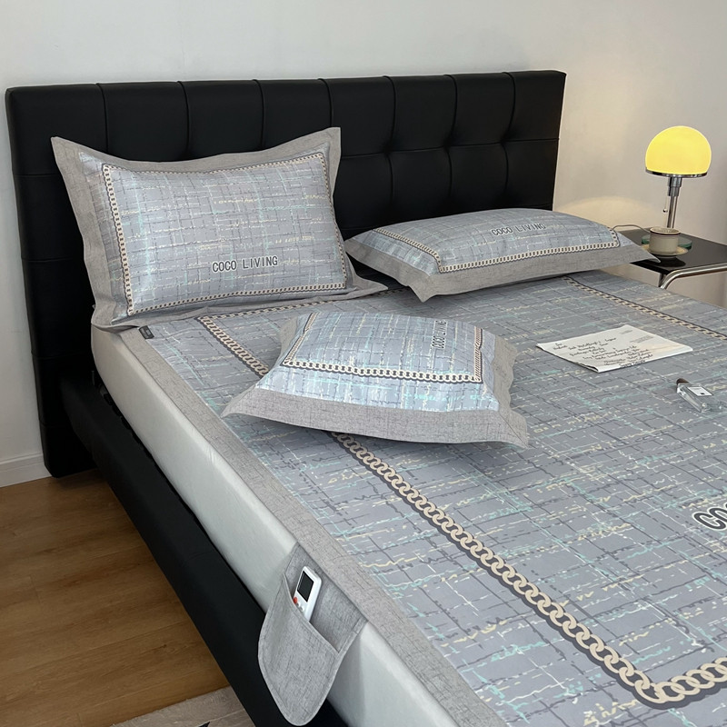 本希 2022新款数码印花水洗冰丝席床席款-小香风轻奢系列 绅士灰