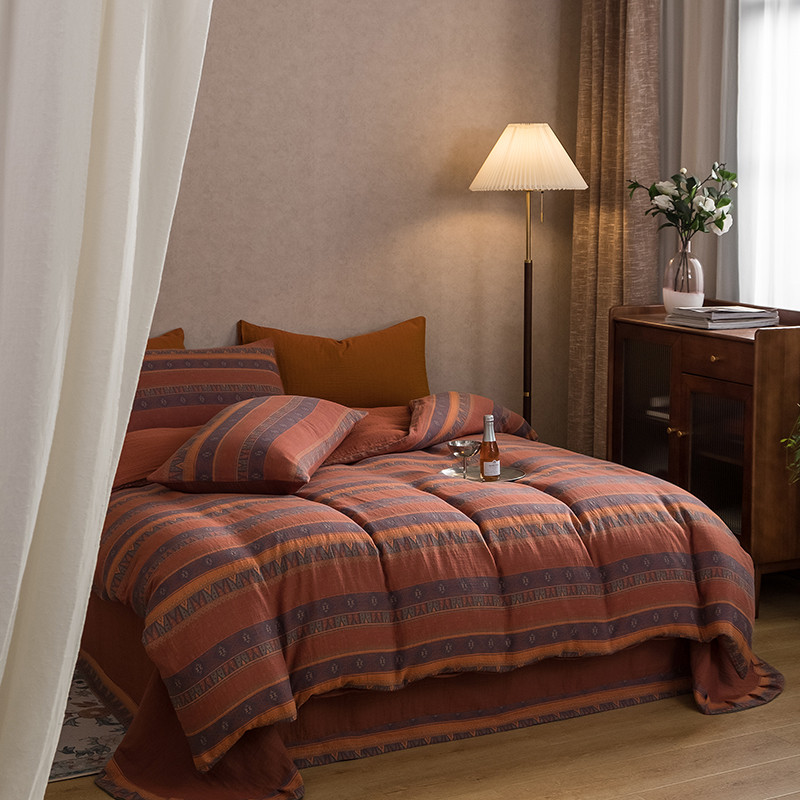 (总)黛馨 2025春夏新款全棉纯棉A类双层纱工艺款夏被夏凉被空调被四件套双花边款,白茶,半岛红茶,豆蔻,蓝风铃,梨泰院