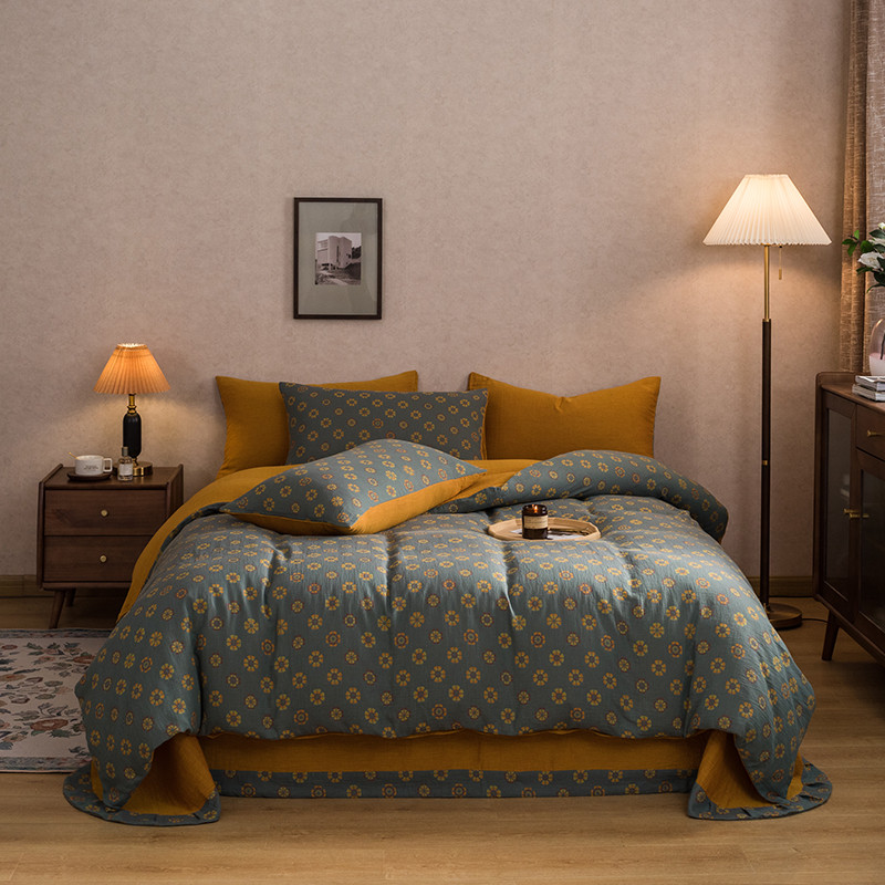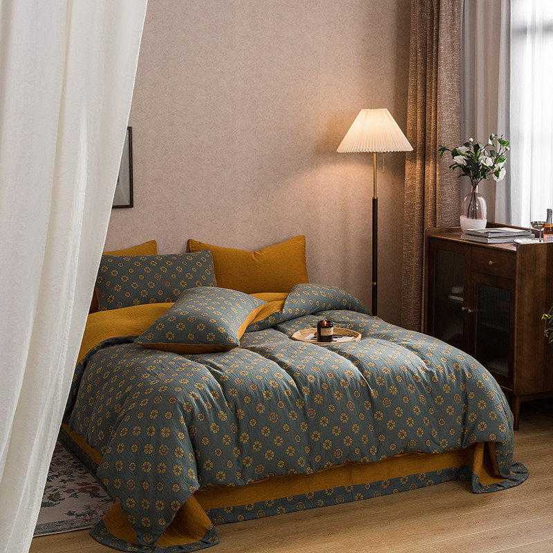 (总)黛馨 2025春夏新款全棉纯棉A类双层纱工艺款夏被夏凉被空调被四件套双花边款,白茶,半岛红茶,豆蔻,蓝风铃,梨泰院