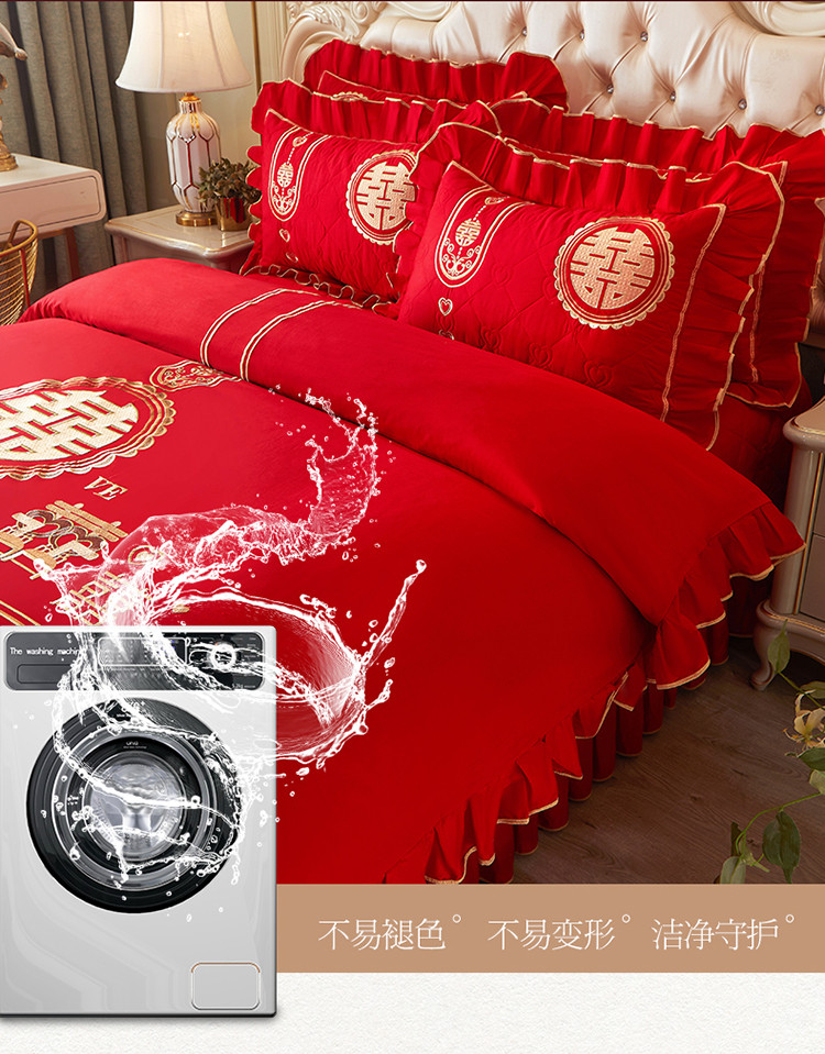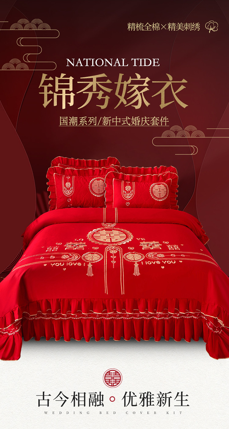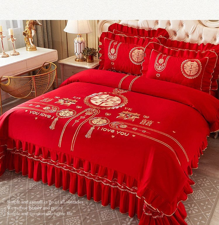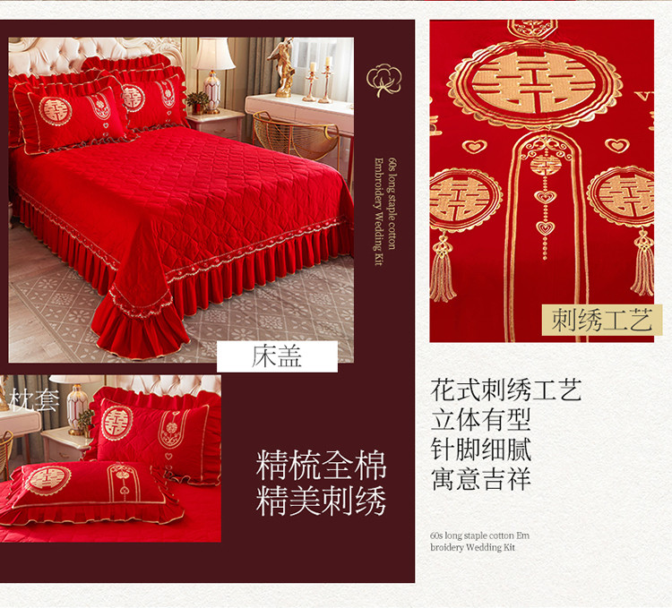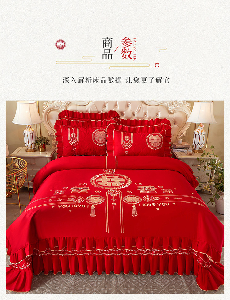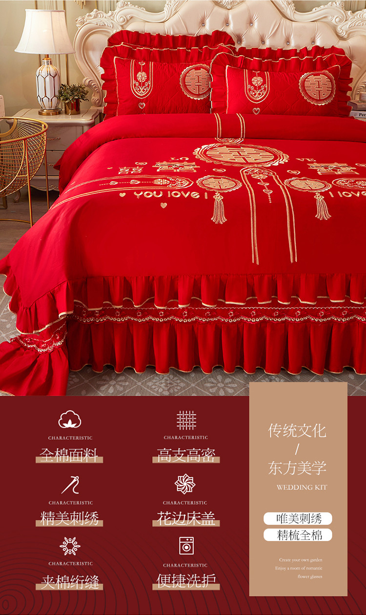 商品名称:宜凡 2022新款绣花婚庆全棉夹棉床盖款四件套 皇家情缘