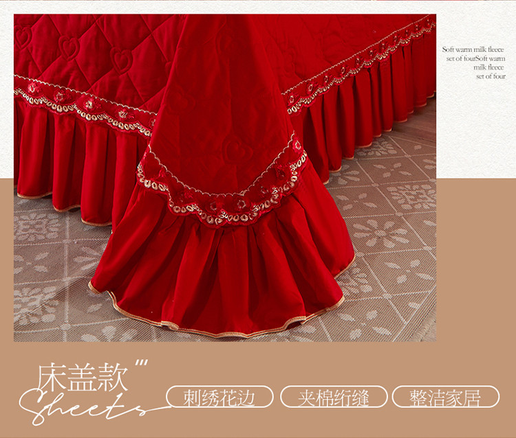 (总)宜凡家纺 2025新款兔绒提花牛奶绒夹棉床裙四件套,爱心 少女粉,爱心 粉紫,爱心 驼色,蝶舞 大红,蝶舞 米色,蝶舞 浅紫,蝶舞 玉色,简爱 苍青,简爱 豆沙紫,简爱 玉色,樱桃 苍青,樱桃 豆沙紫,樱桃 奶油白