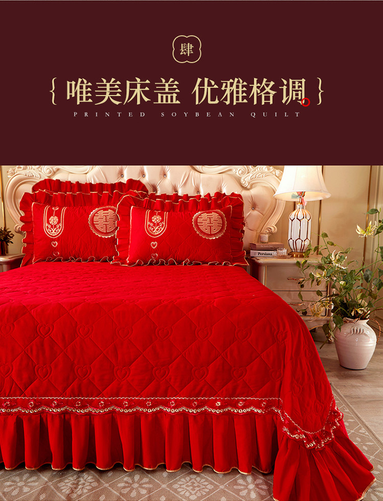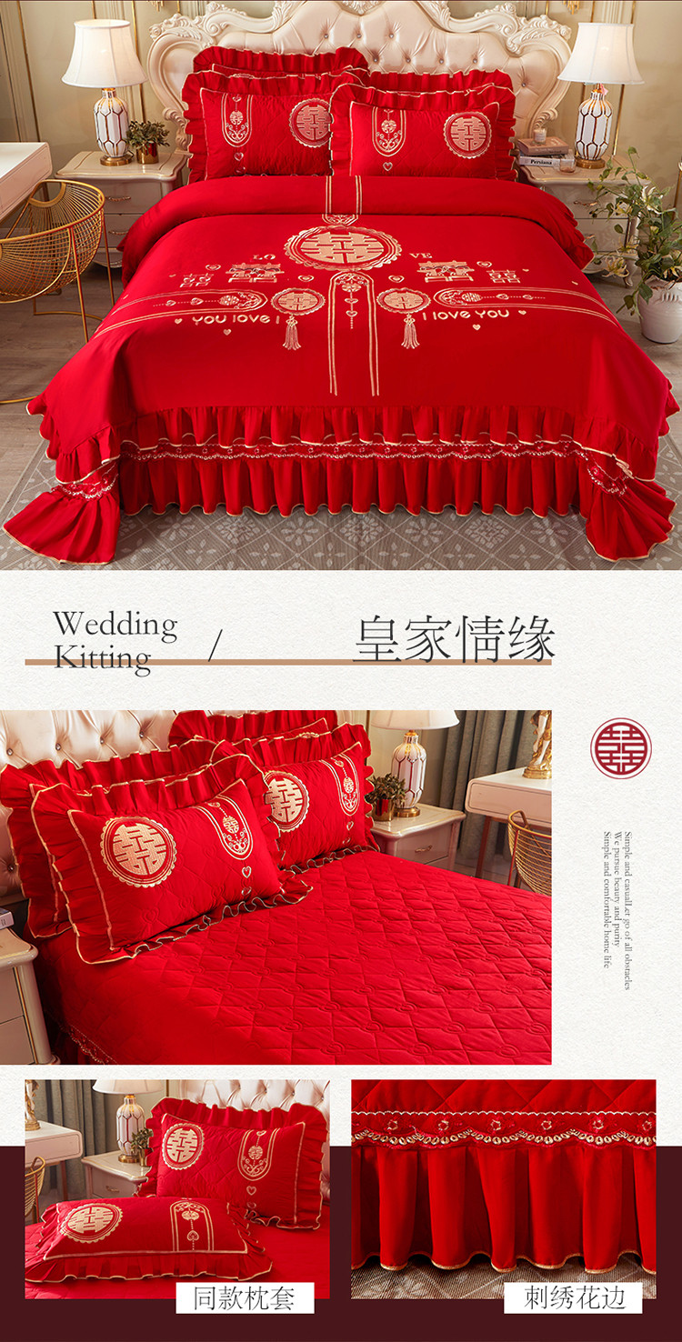 宜凡 2022新款绣花婚庆全棉夹棉床盖款四件套 皇家情缘