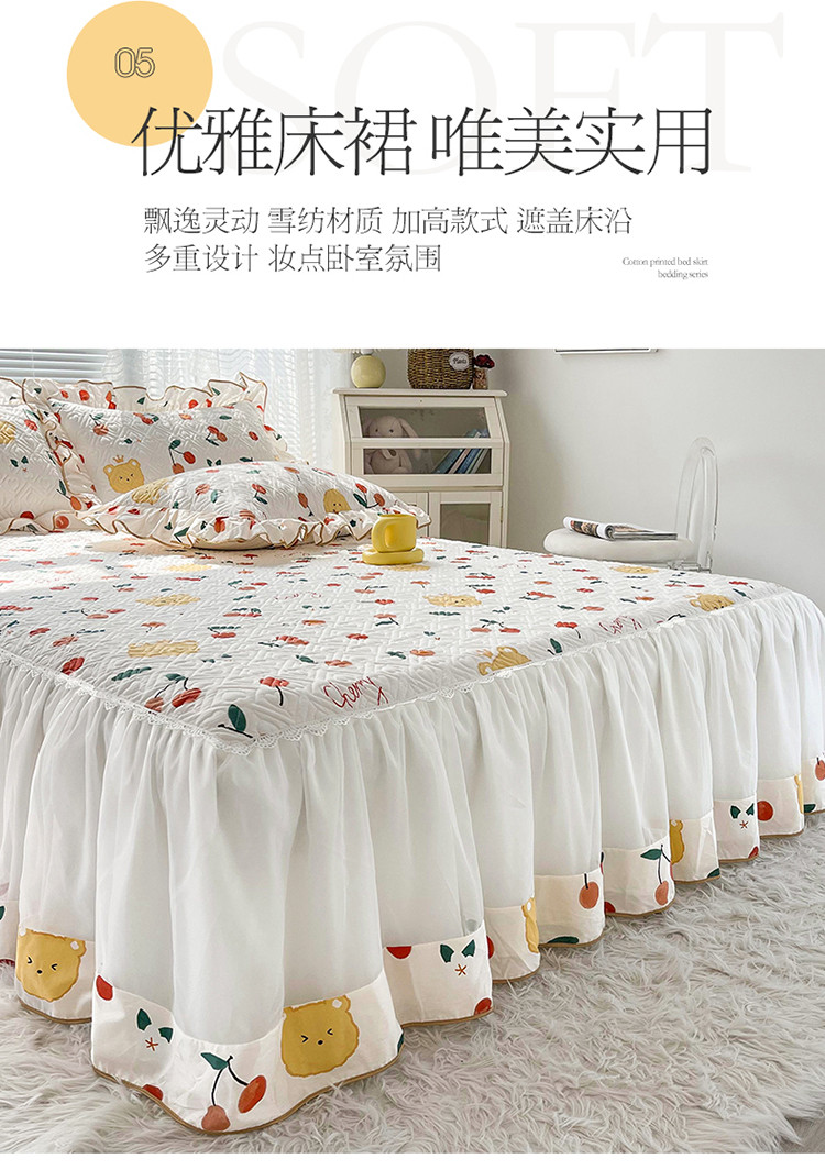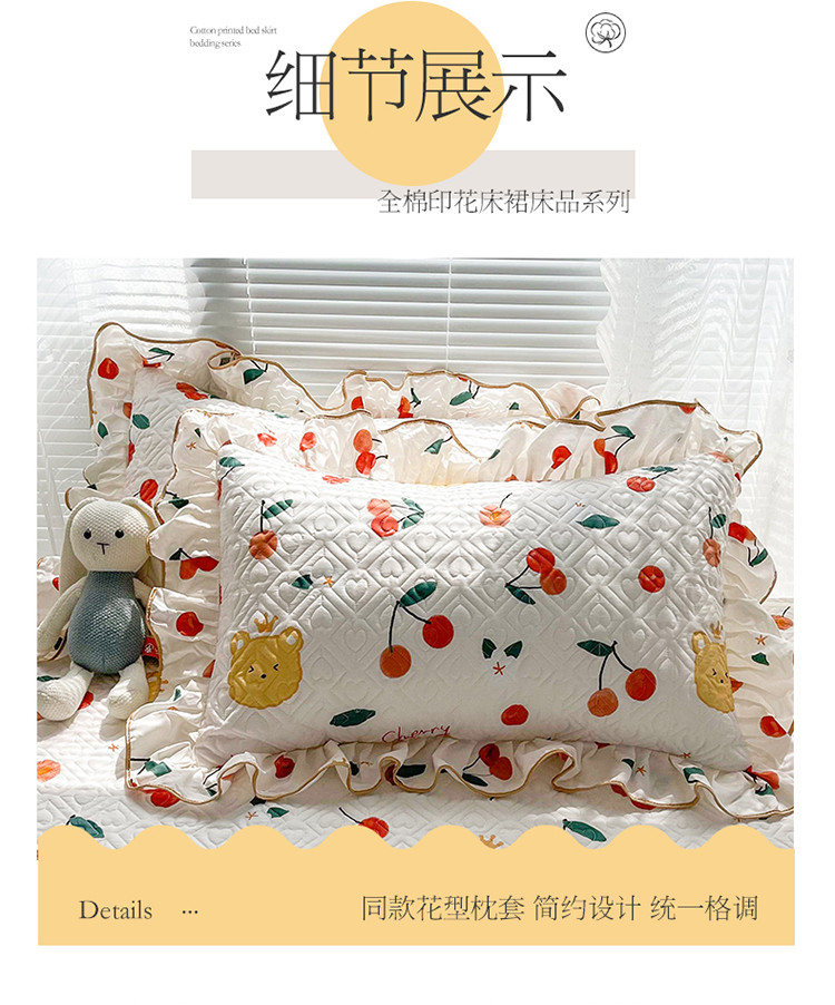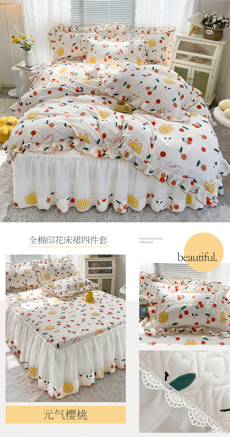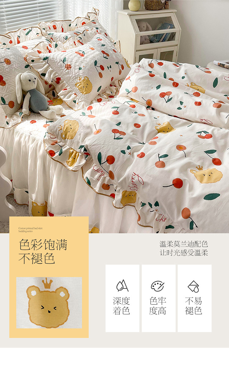 当前位置: 91家纺网 > 商品网购 > 床品套件 > 四件套 > 全棉普通四件套 > 宜凡 2022新款全棉印花夹棉双层裙边床裙款四件套 元气樱桃