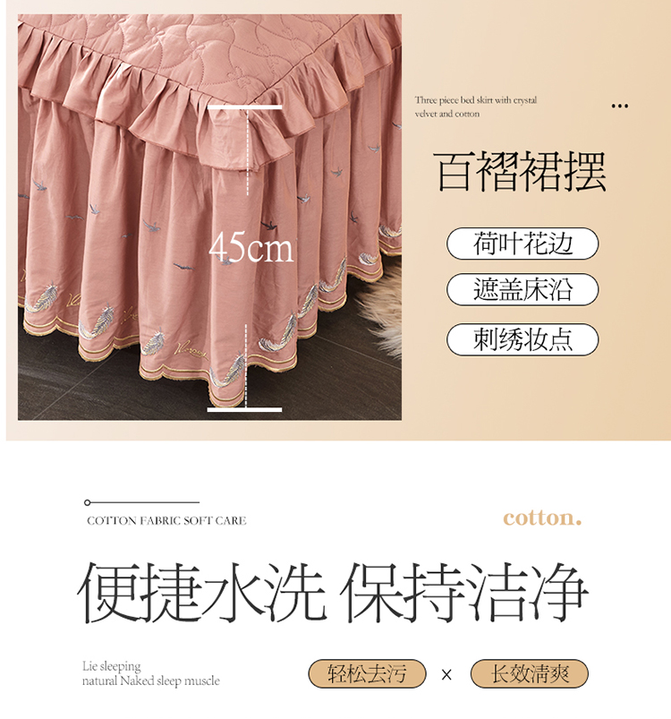商品名称:(总)宜凡 2022新款全棉刺绣夹棉床裙款三件套-芳羽