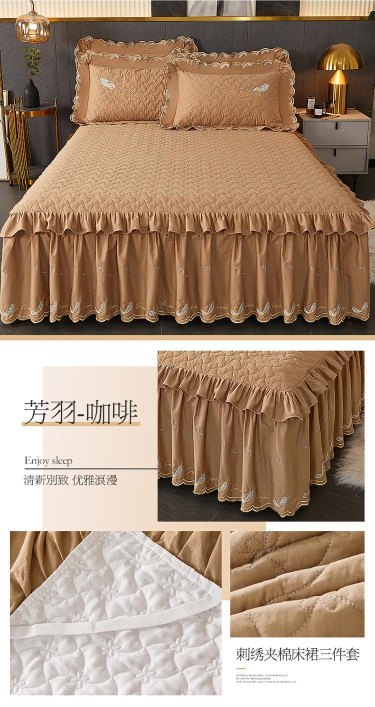 (总)宜凡 2022新款全棉刺绣夹棉床裙款三件套-芳羽