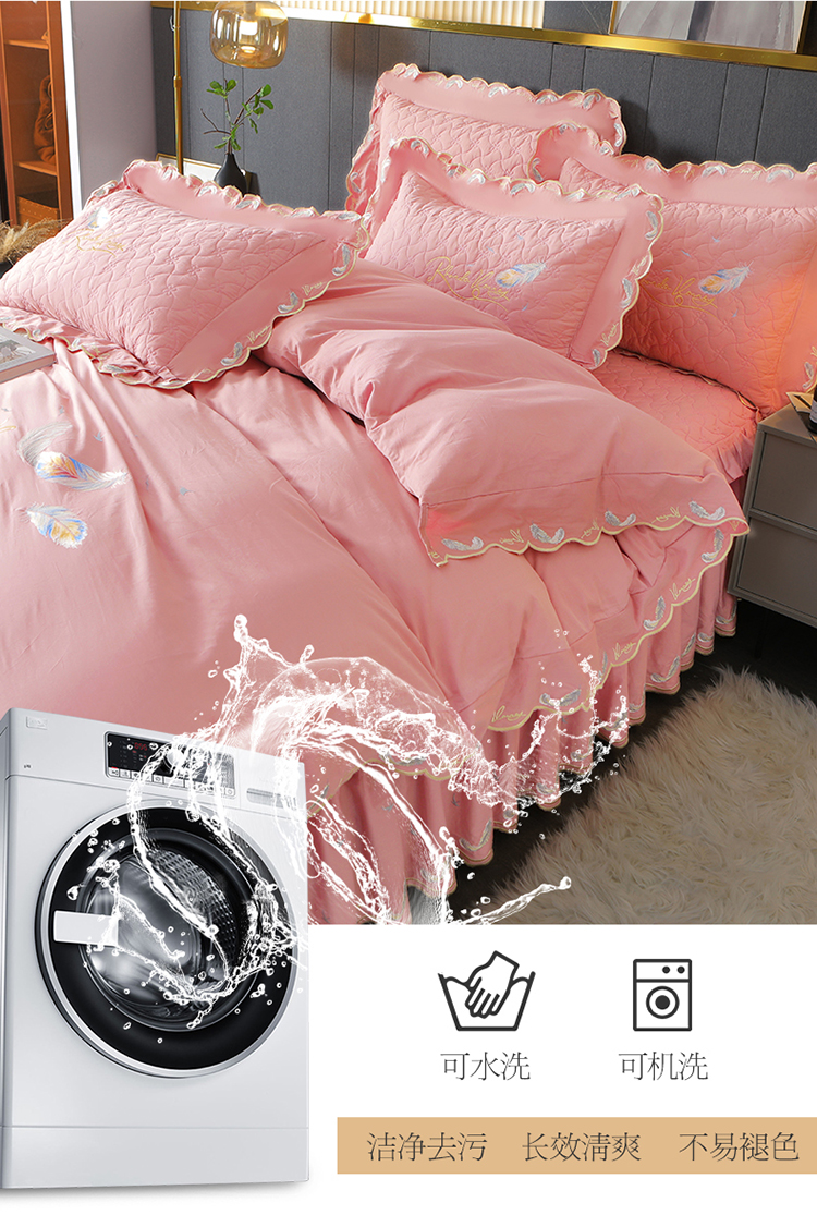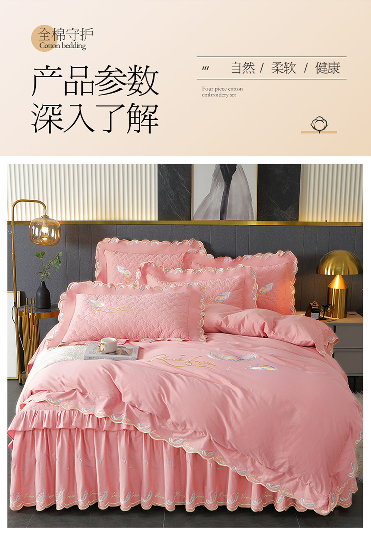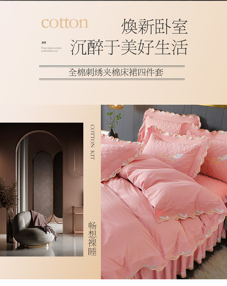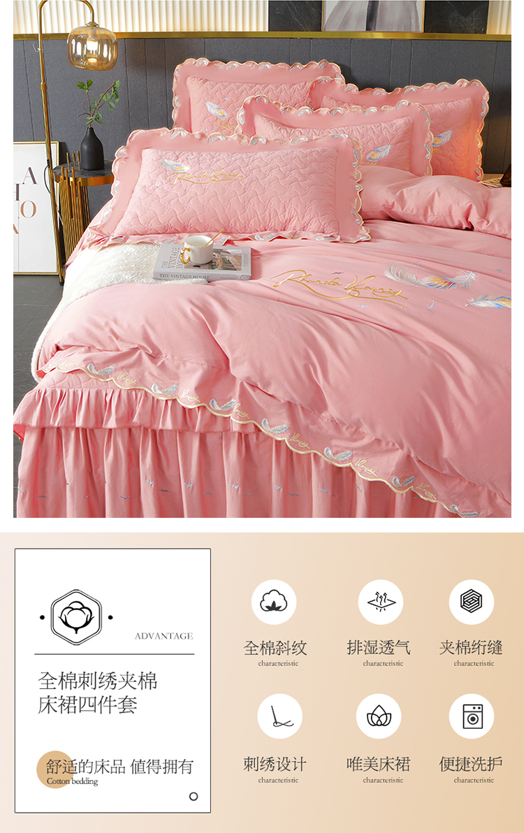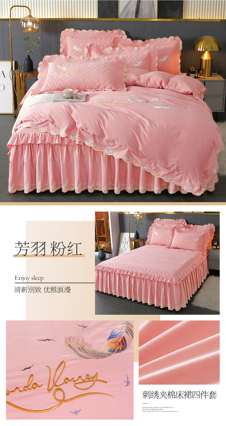 当前位置: 91家纺网 > 商品网购 > 床品套件 > 四件套 > 全棉普通四件套 > 宜凡 2022新款全棉刺绣夹棉床裙款四件套-芳羽 芳羽粉红