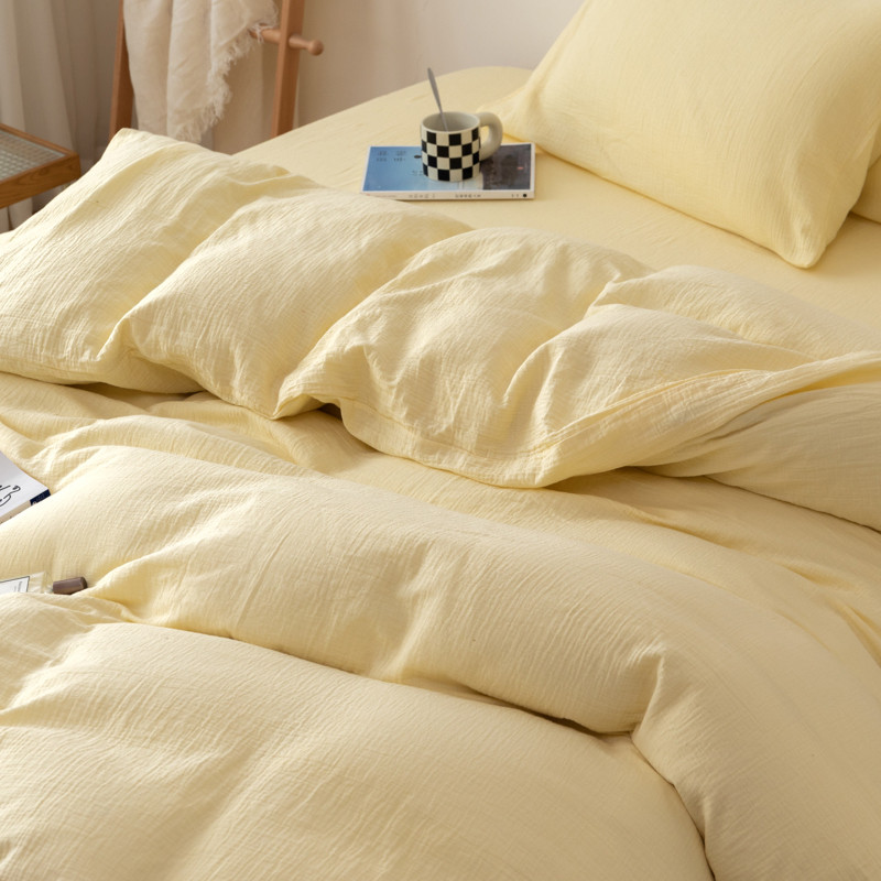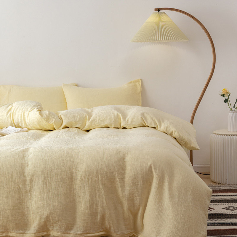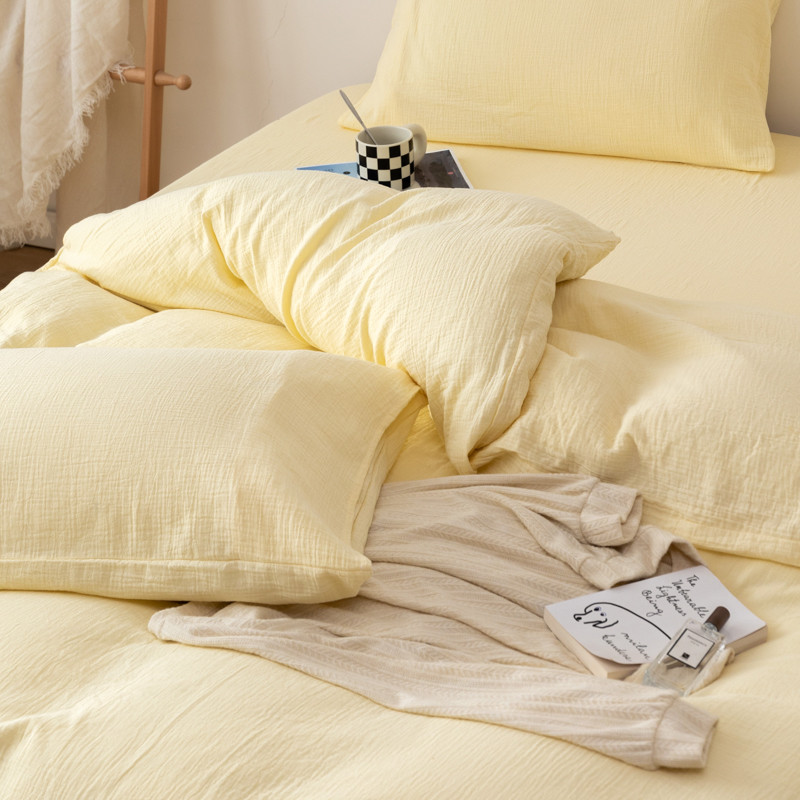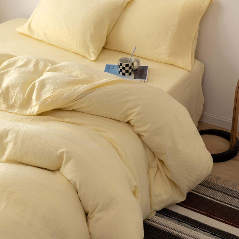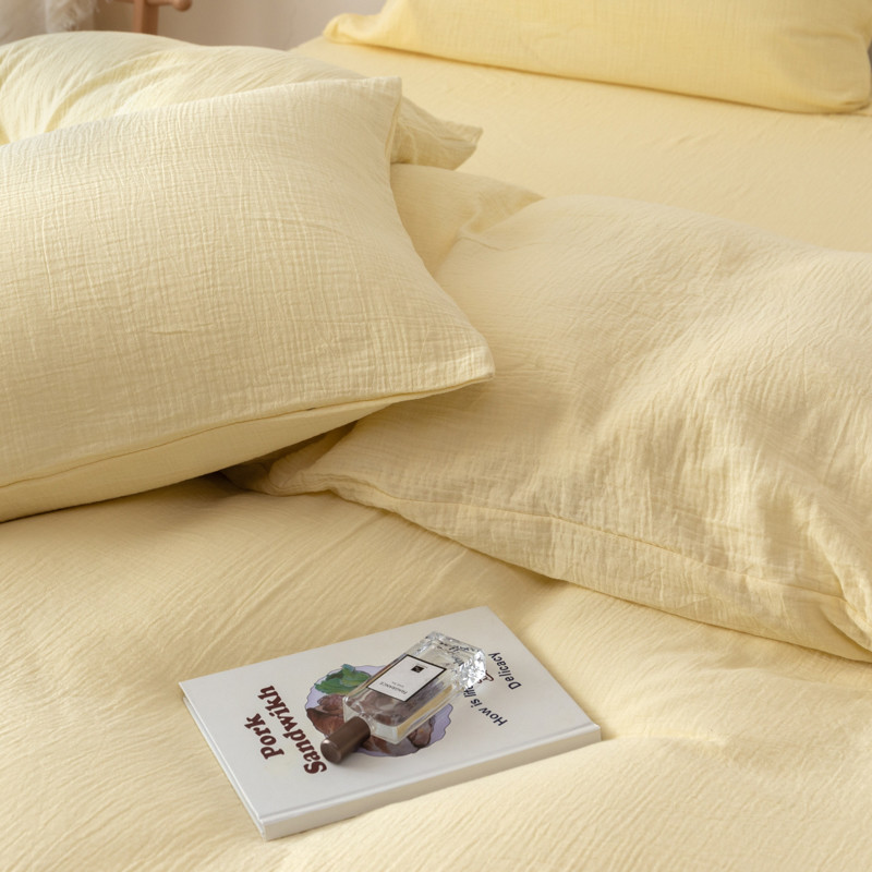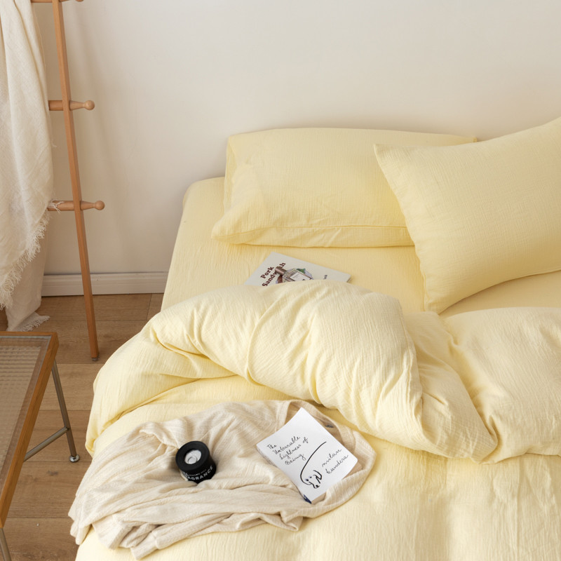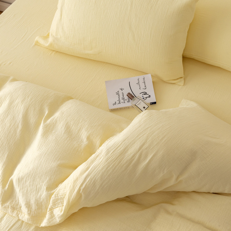 商品名称:简家居 2022新款纯色双层纱豆腐皱四件套 嫩黄