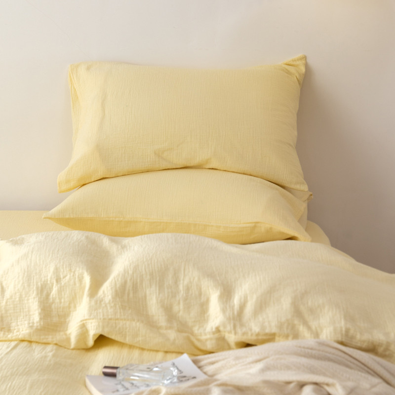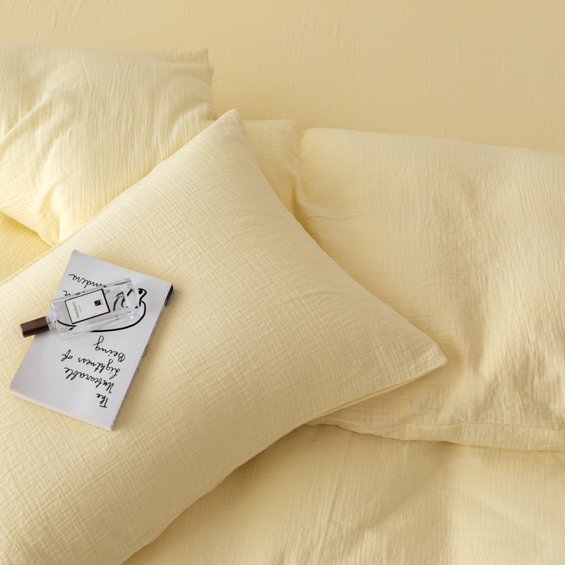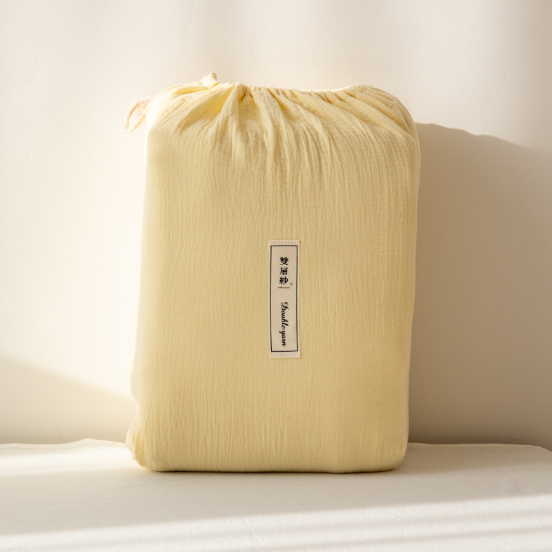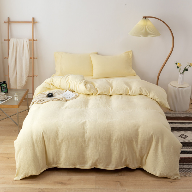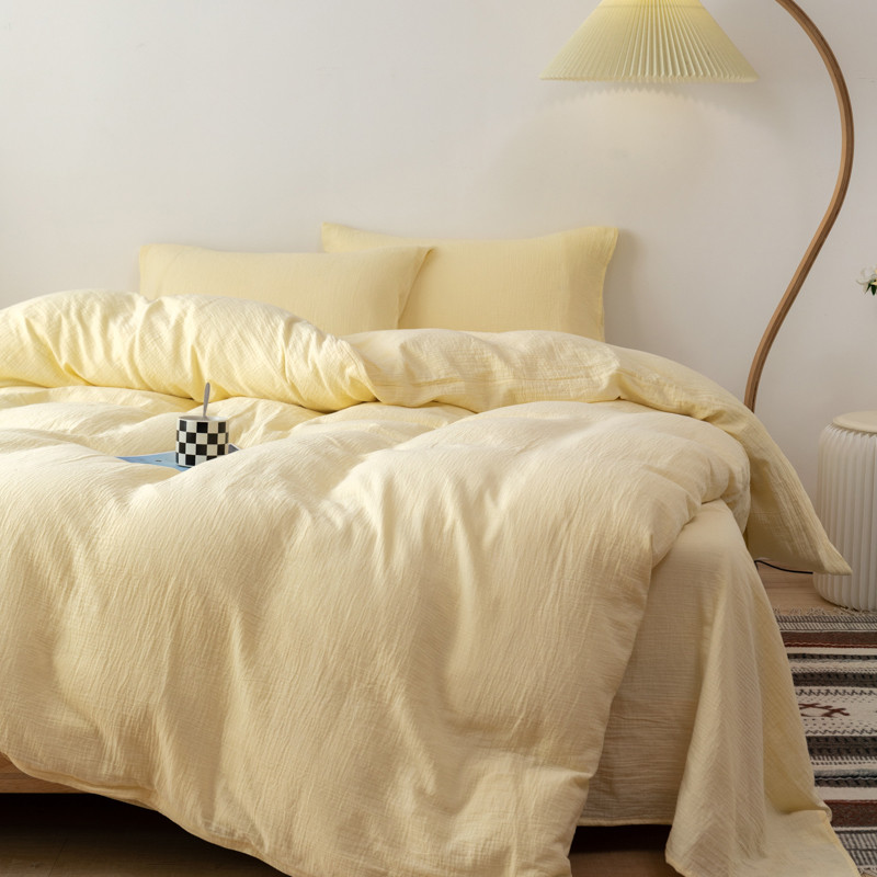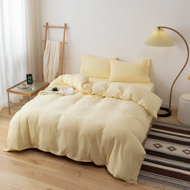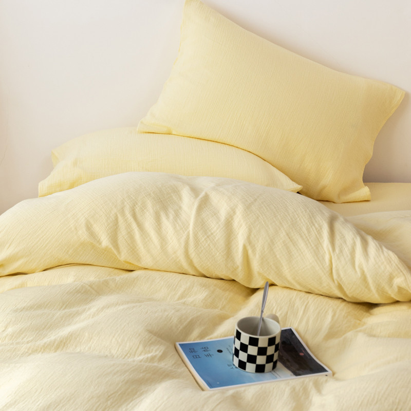 商品名称:简家居 2022新款纯色双层纱豆腐皱四件套 嫩黄