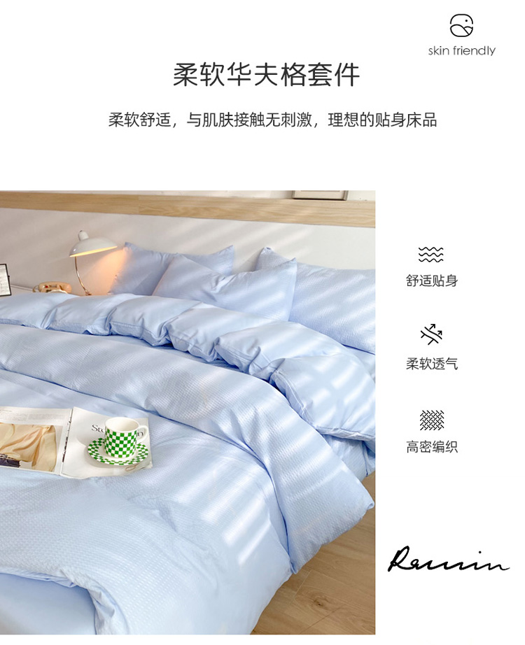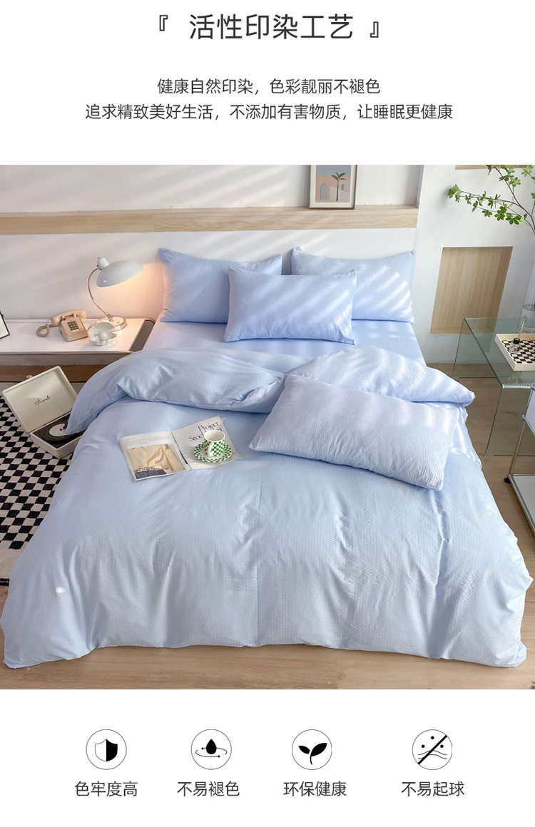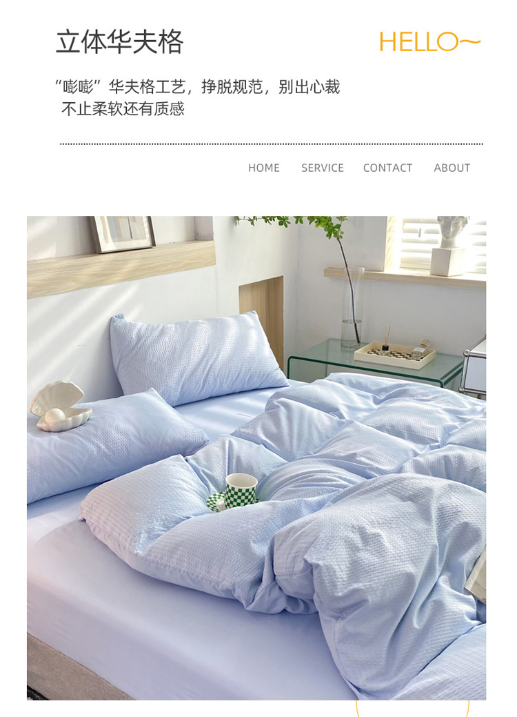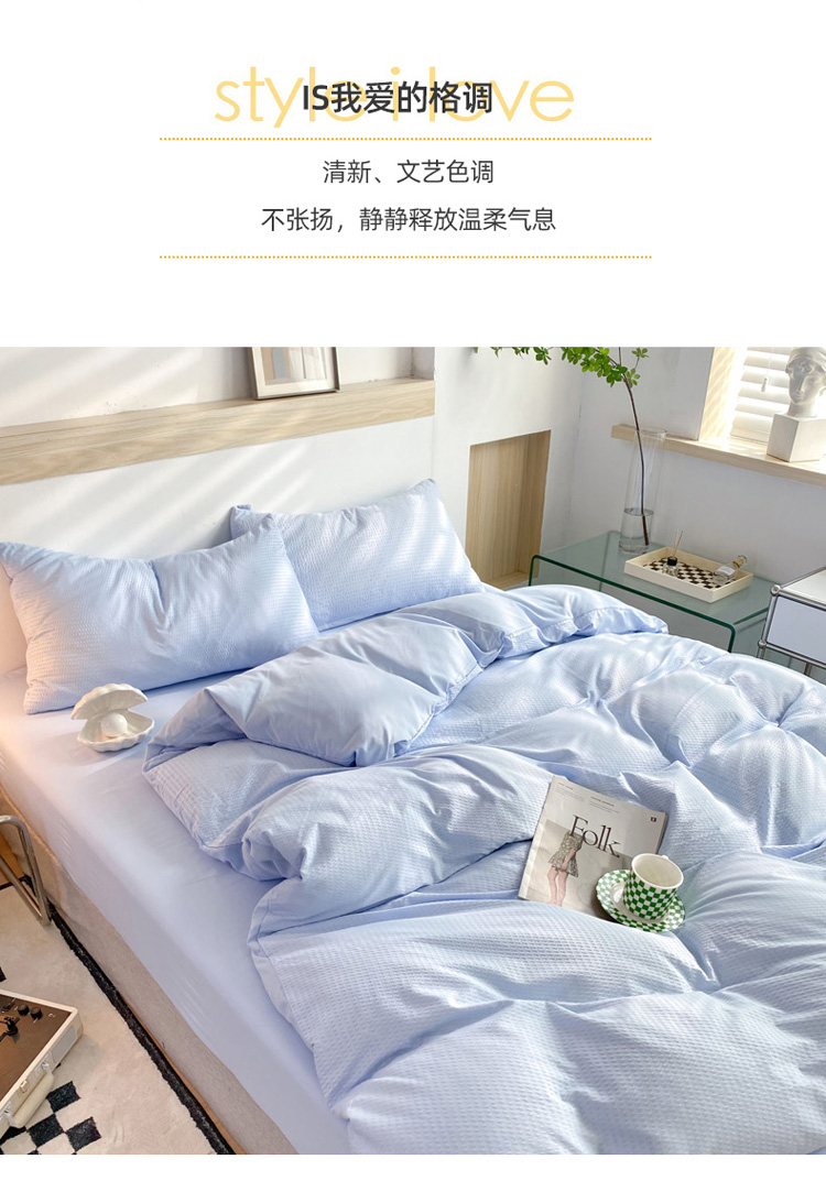 商品名称:慕澄家纺 2022新款华夫格简约款泡泡四件套 天空蓝