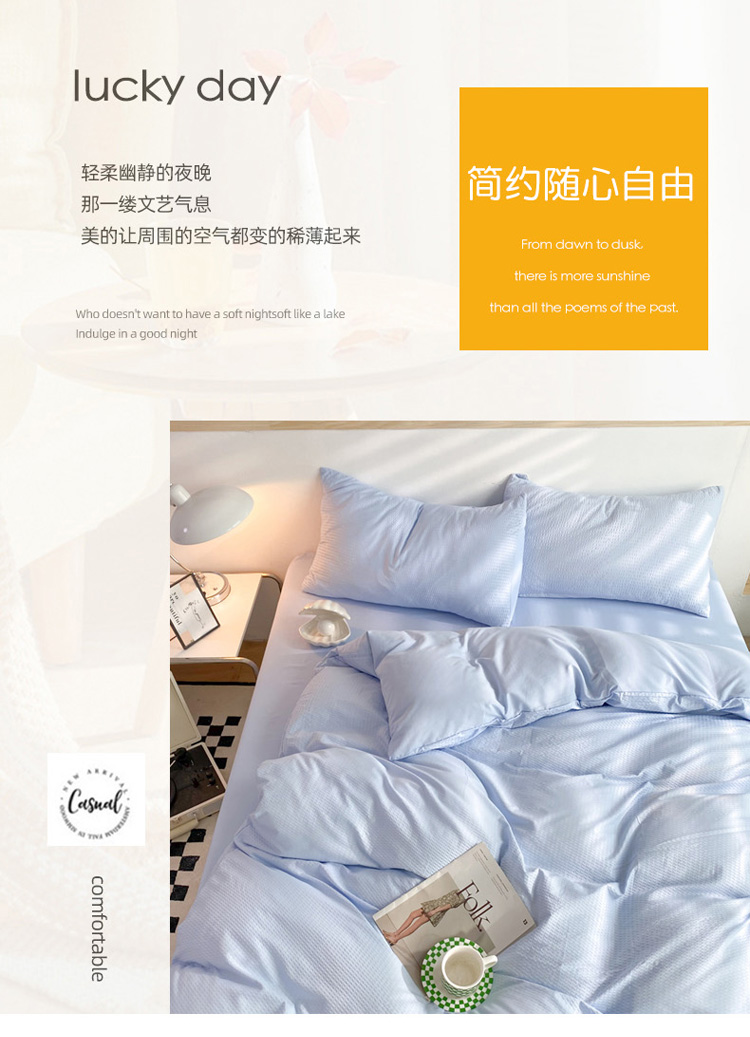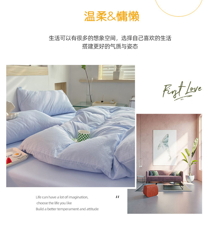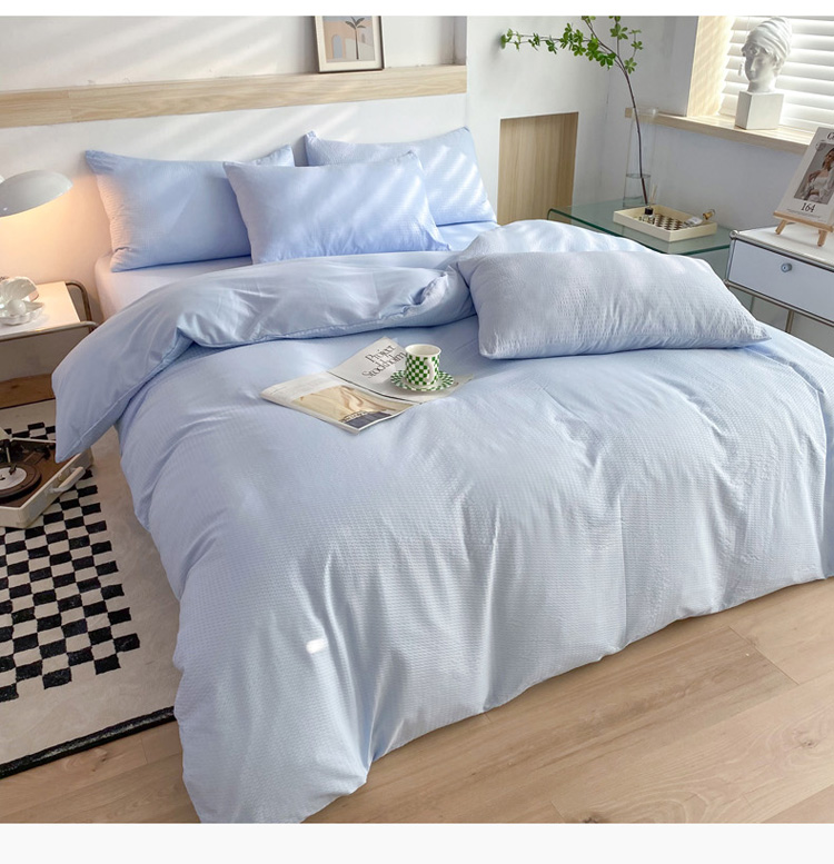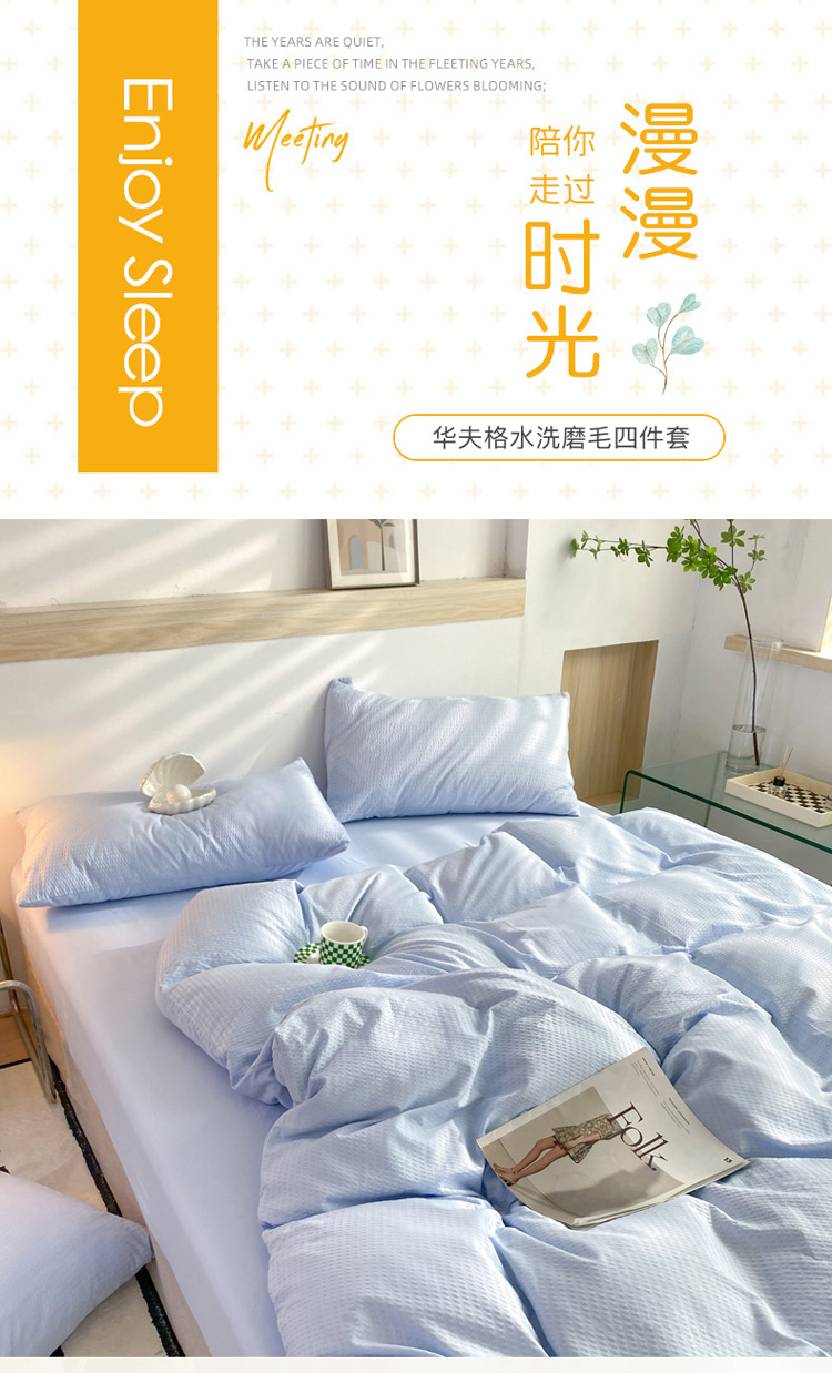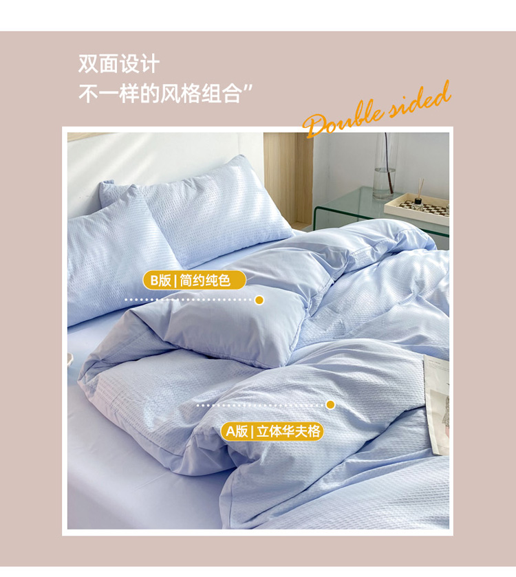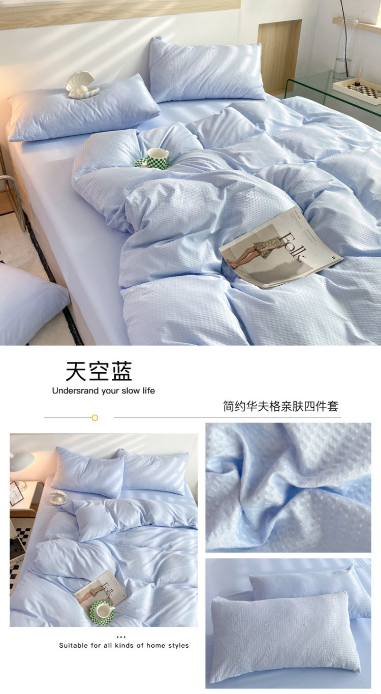 慕澄家纺 2022新款华夫格简约款泡泡四件套 天空蓝