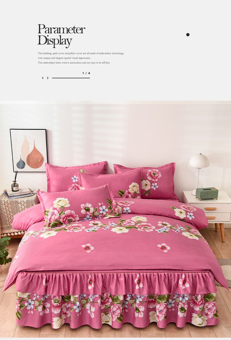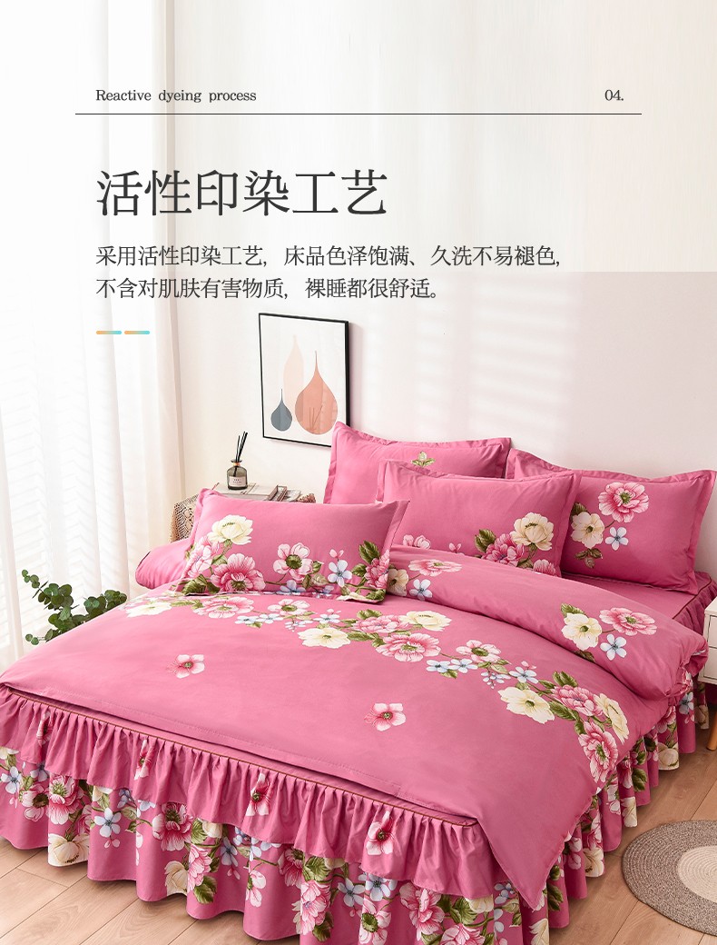 (总)代芙家纺 2025新款锦棉床盖四件套-花边款,花香-花边款-豆沙粉,花香-花边款-酒红,花香-花边款-绅士蓝,花香-花边款-雅灰