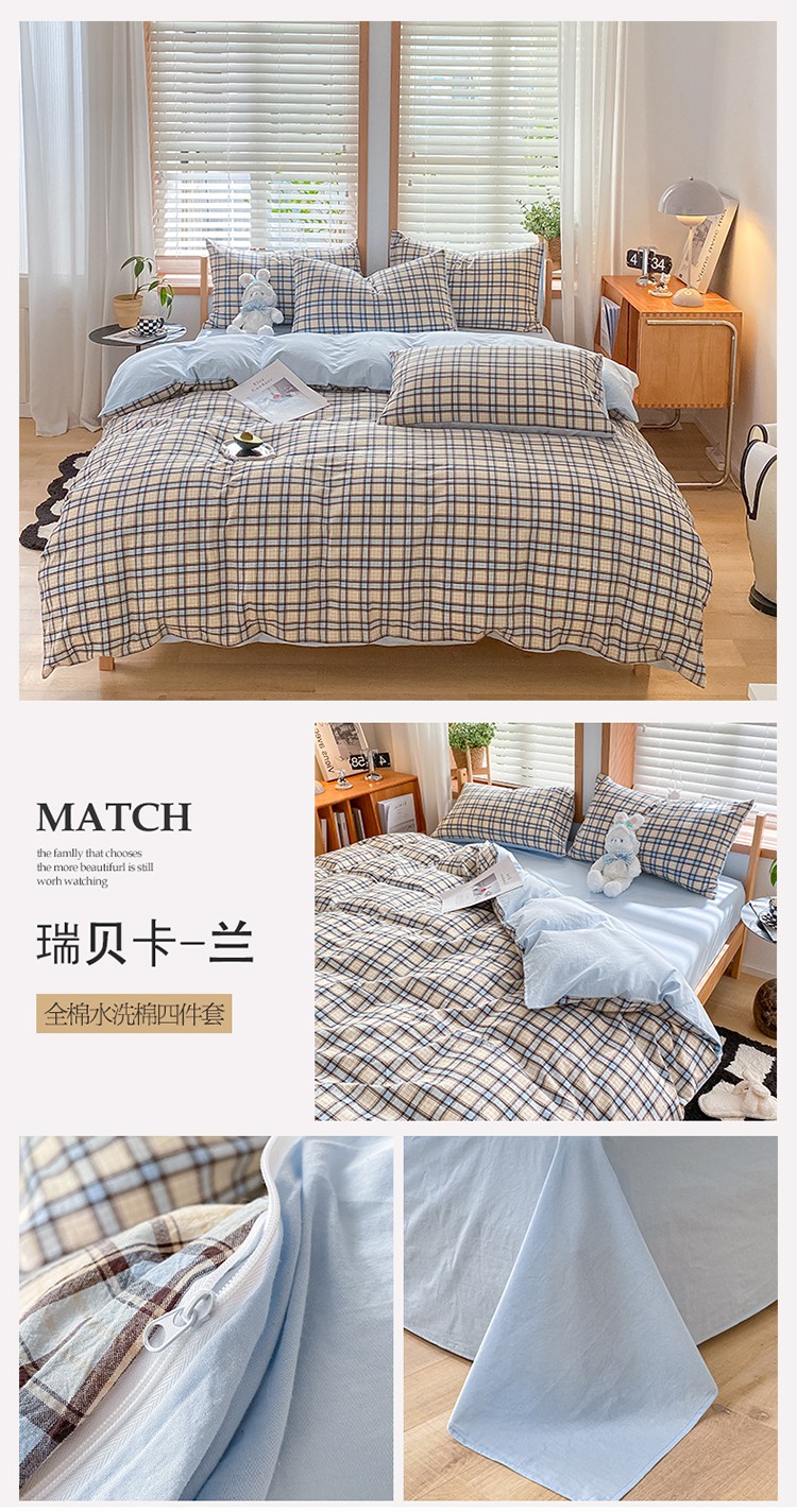 当前位置: 91家纺网 > 商品网购 > 床品套件 > 四件套 > 全棉普通四件套 > 蓝巢 2022新款全棉色织水洗棉四件套 瑞贝卡-兰