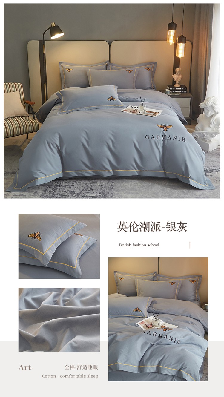 (总)启航家居2025新款全棉磨毛宽边刺绣四件套英伦潮派系列