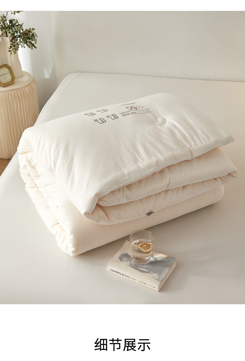(总)A+爱家 2025新款彩丝提花双宫桑蚕丝被芯桑蚕丝空调被,白色