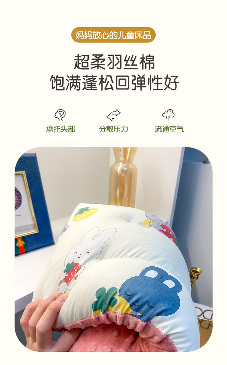 宝晶枕芯 2022新款全棉儿童枕头可水洗儿童枕 白兔兔