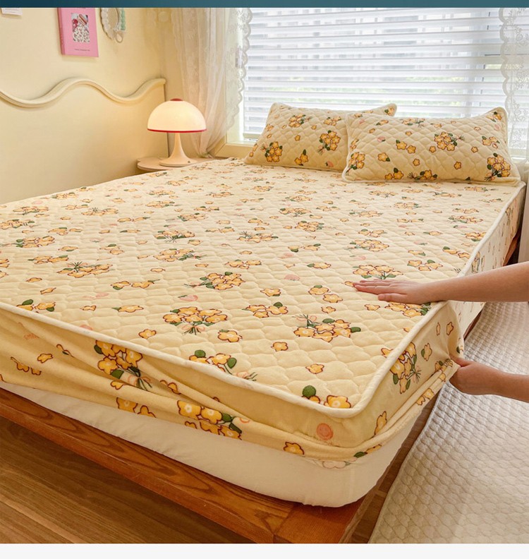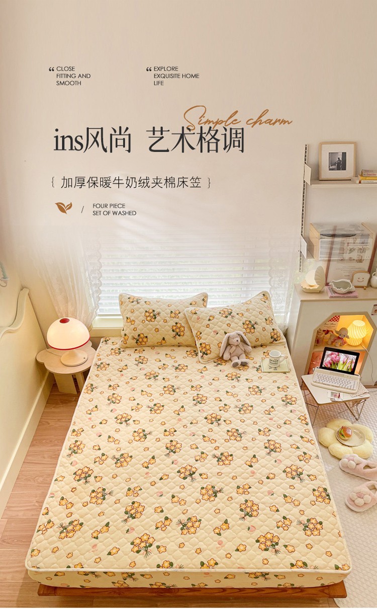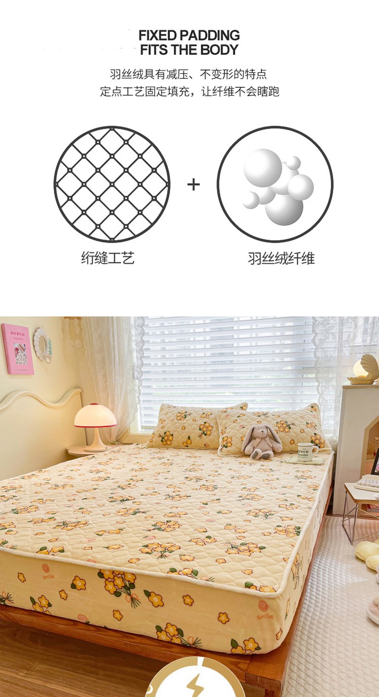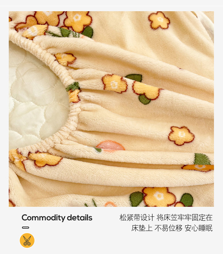 • 91家纺网 家纺一手货源 找家纺 沐慕 2022牛奶绒夹棉床笠 花儿朵朵