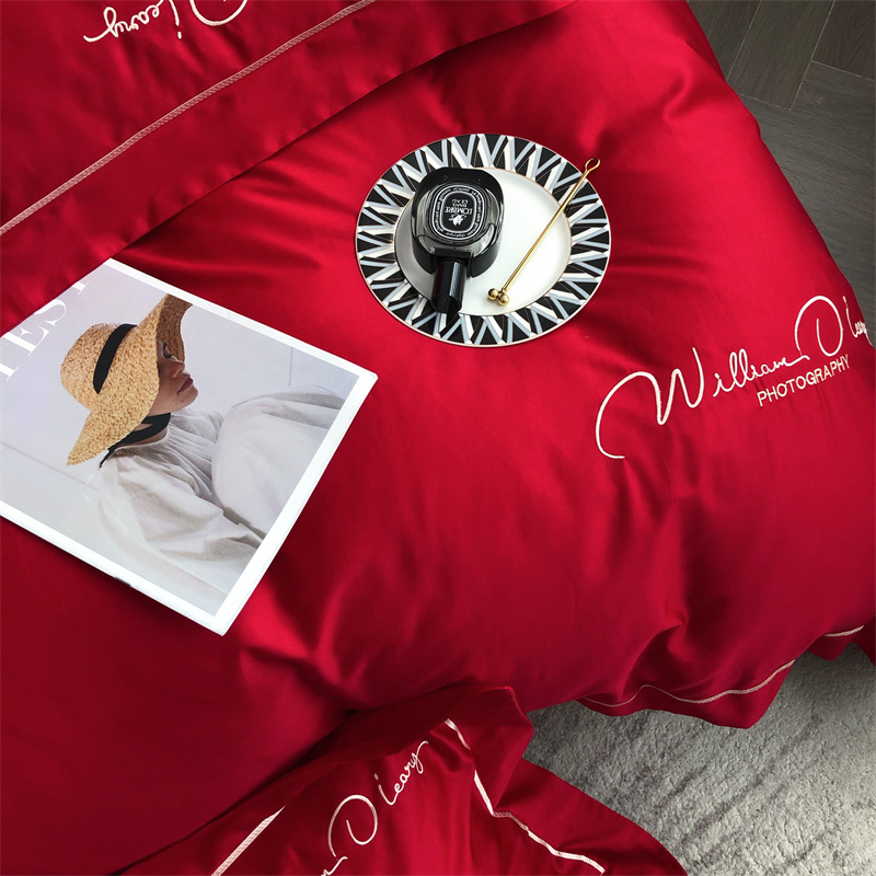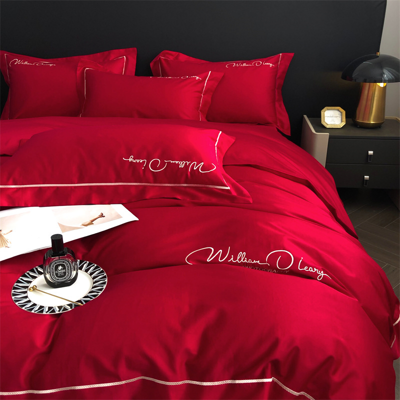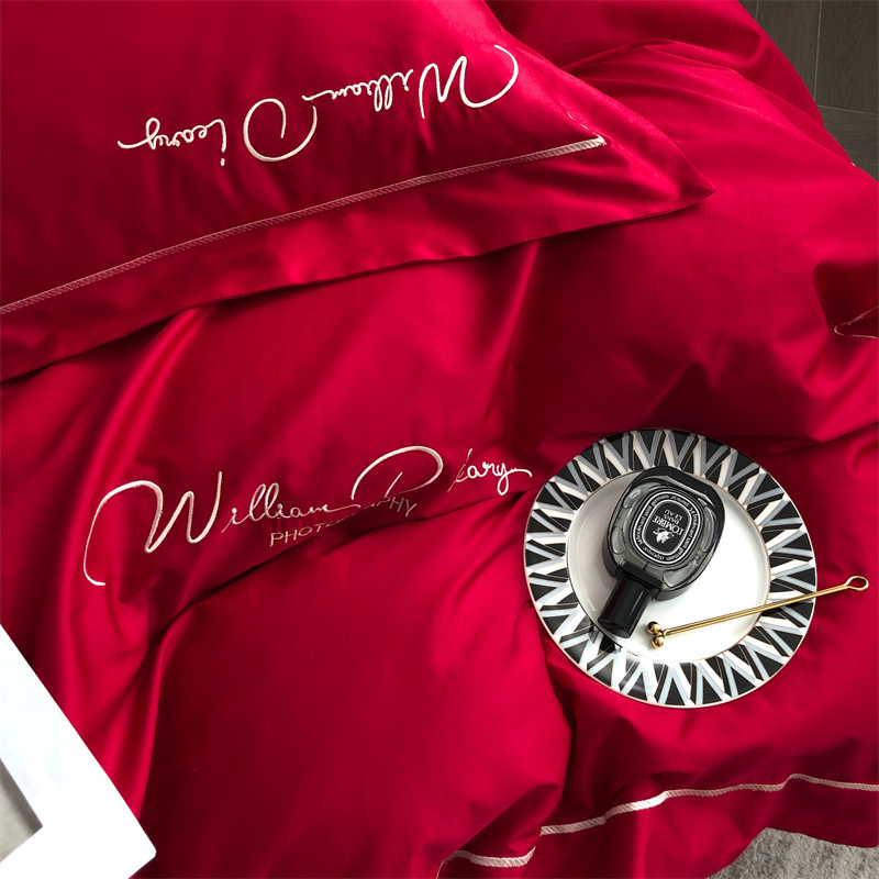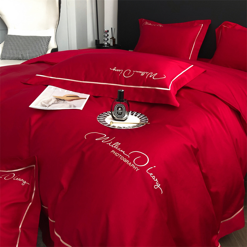 商品名称:玖玖爱 2022新款100支纯色贡缎四件套 艾丽大红