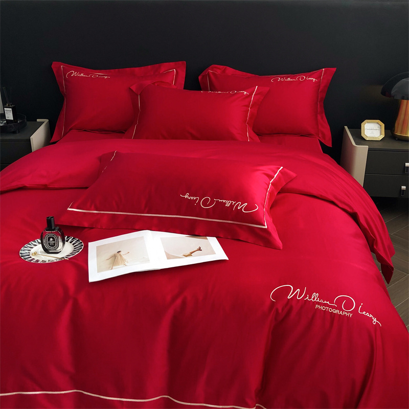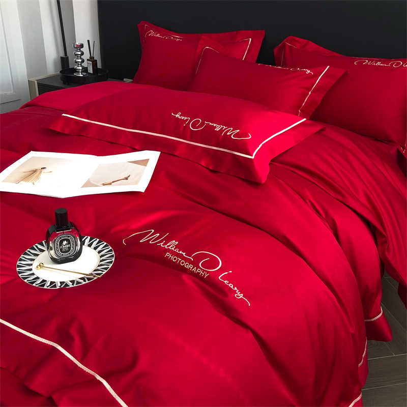 玖玖爱 2022新款100支纯色贡缎四件套 艾丽大红