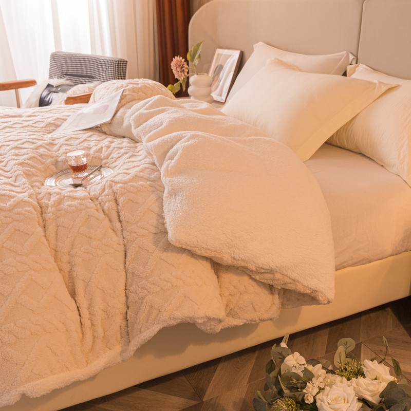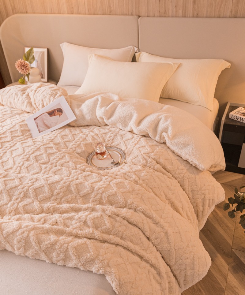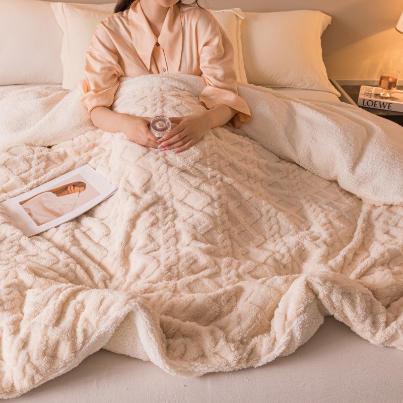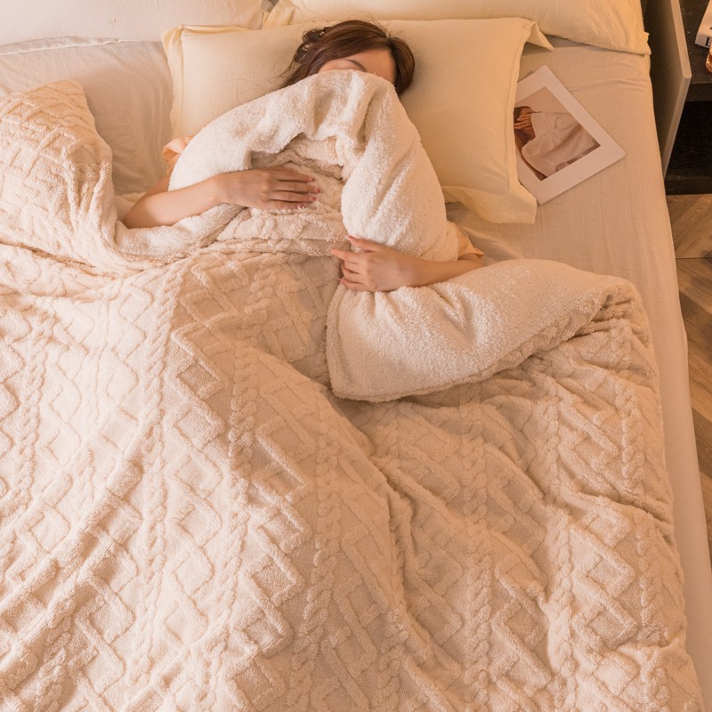 简爱-2025舒棉绒羊羔绒单被套多功能毯 菱形茉格-浅米