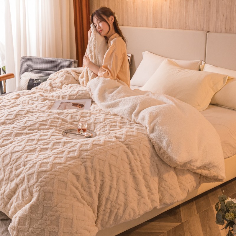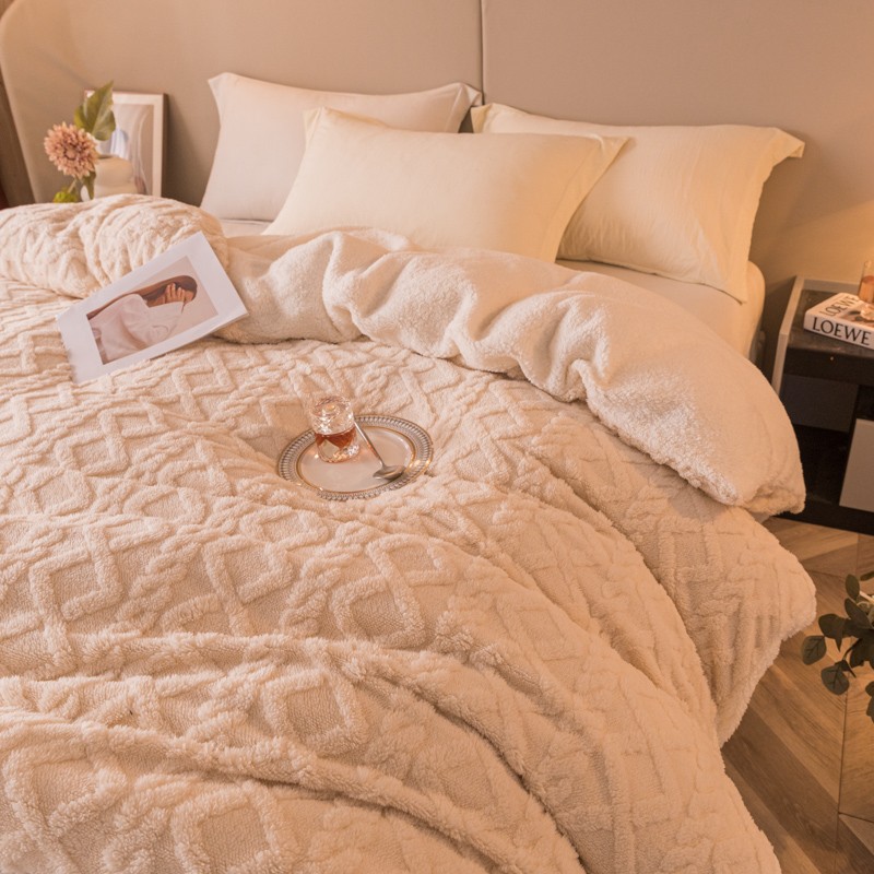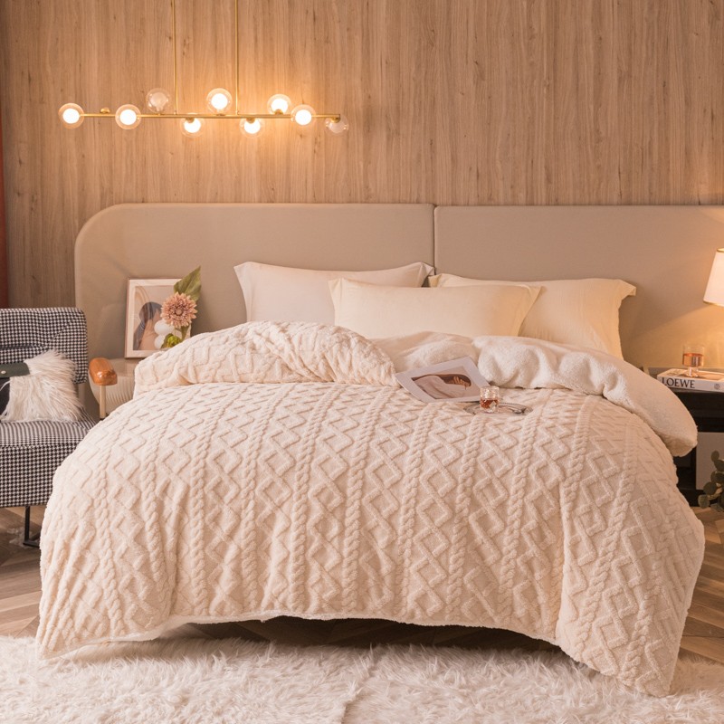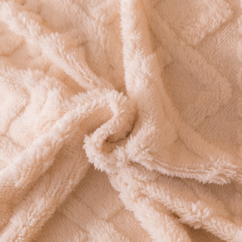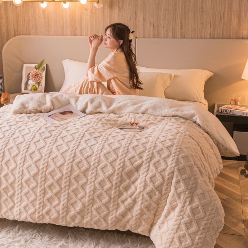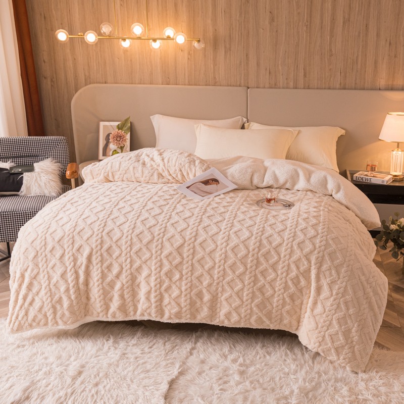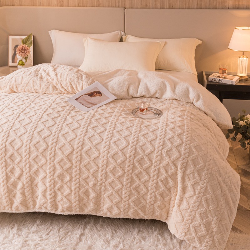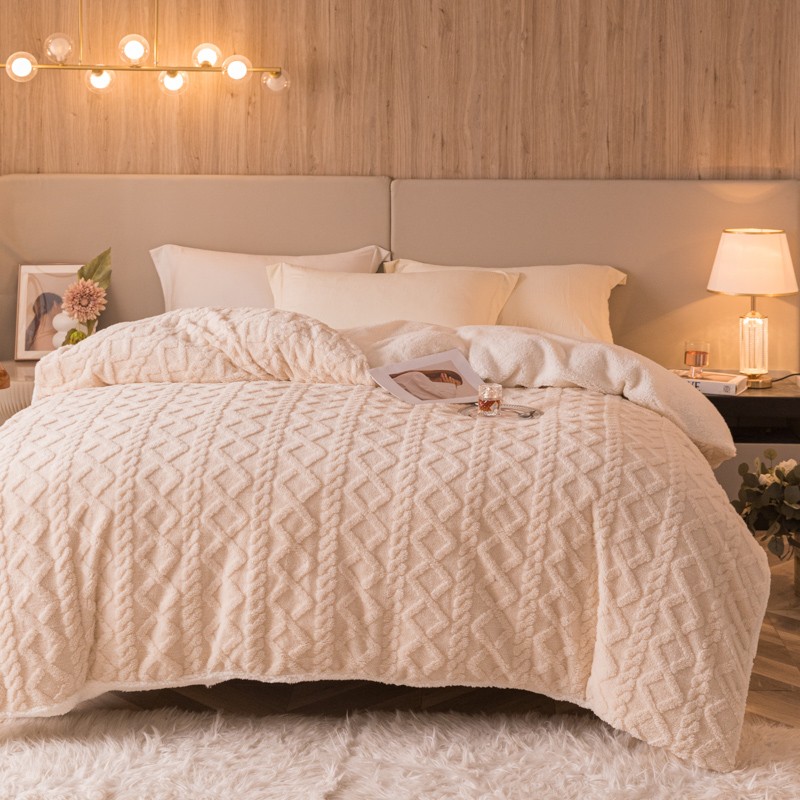 商品名称:简爱-2025舒棉绒羊羔绒单被套多功能毯 菱形茉格-浅米