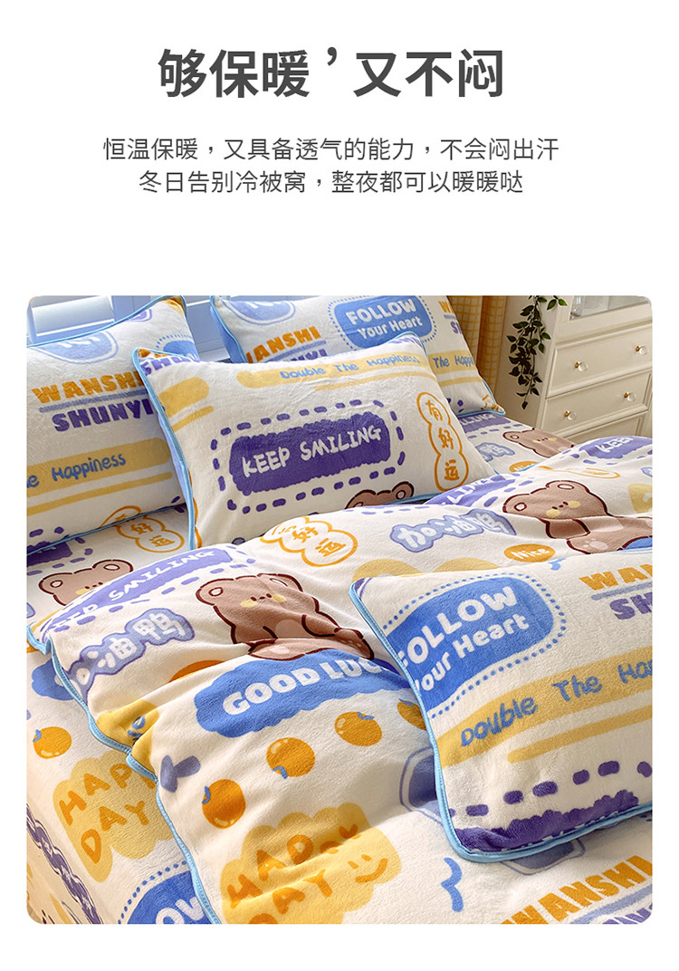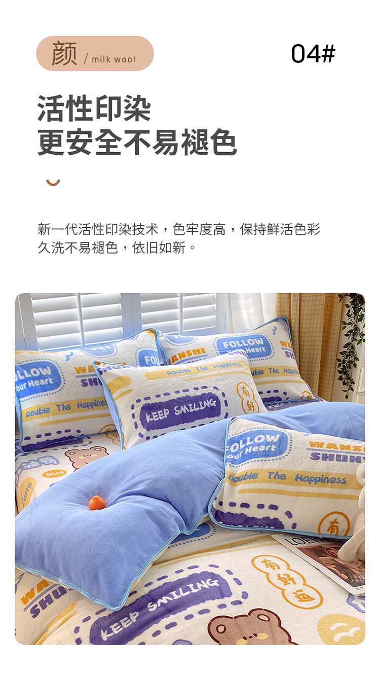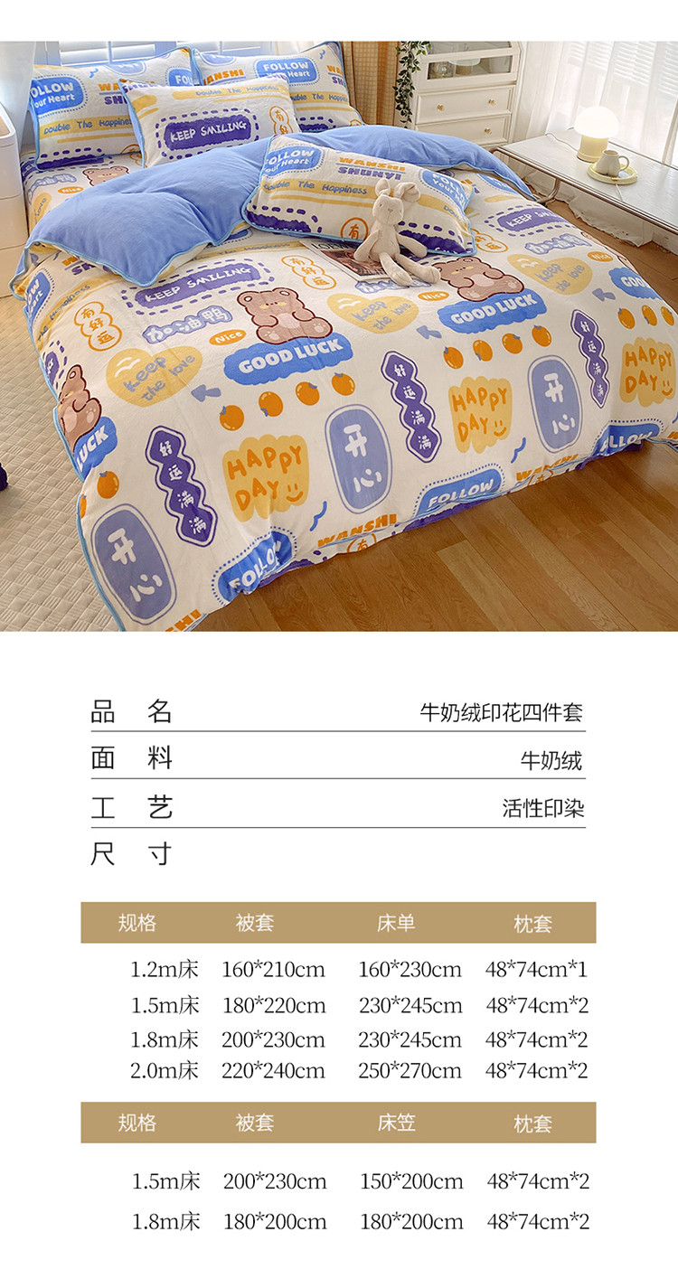 商品名称:金鑫汇 2022新款牛奶绒四件套系列-单床笠 绅士熊-兰